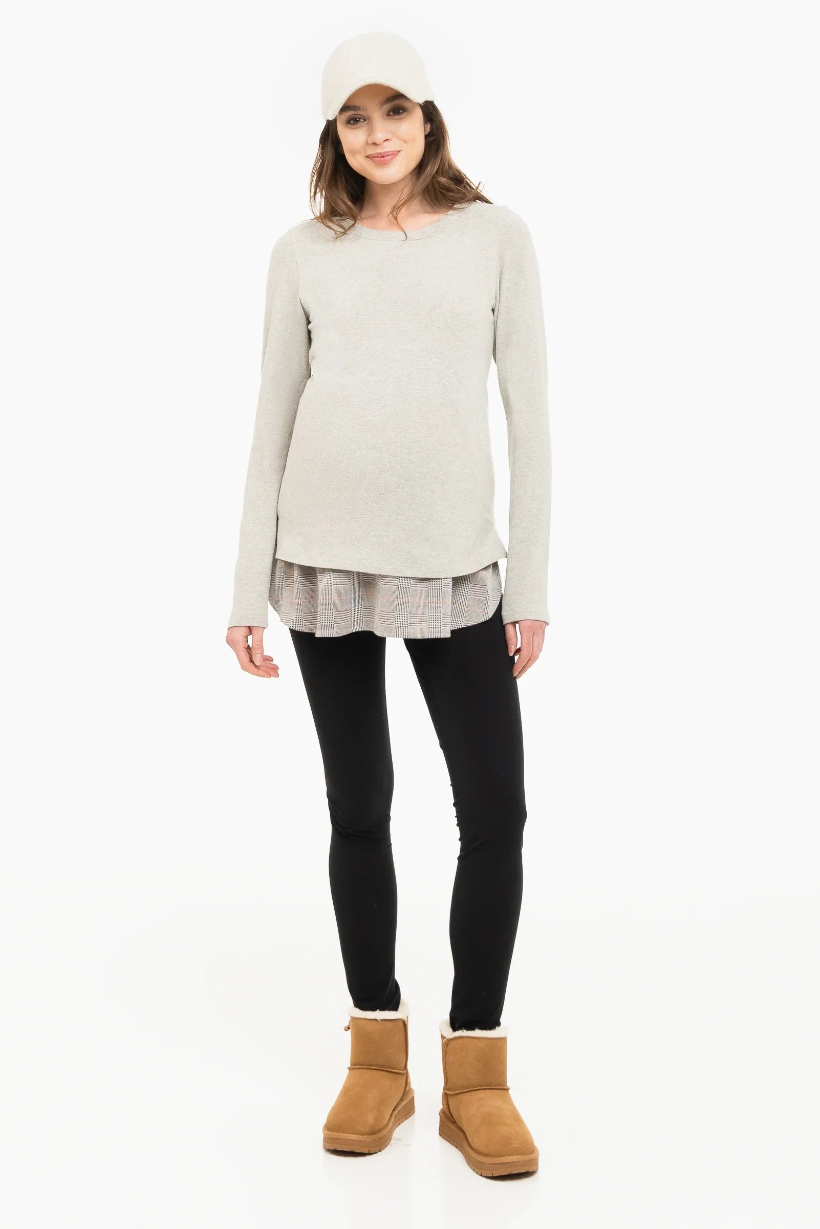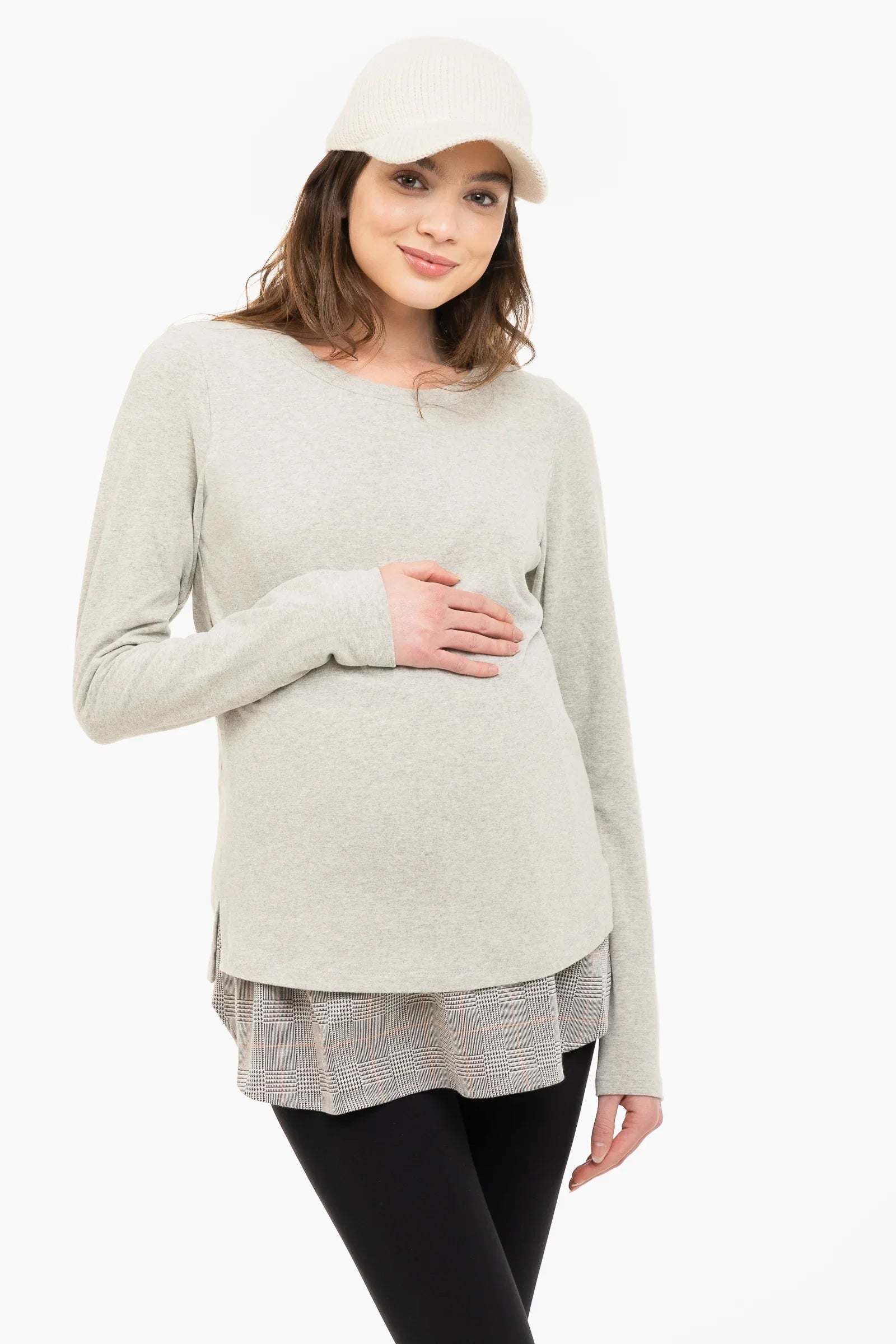 Szary bawełniany sweter ciążowy i do karmienia