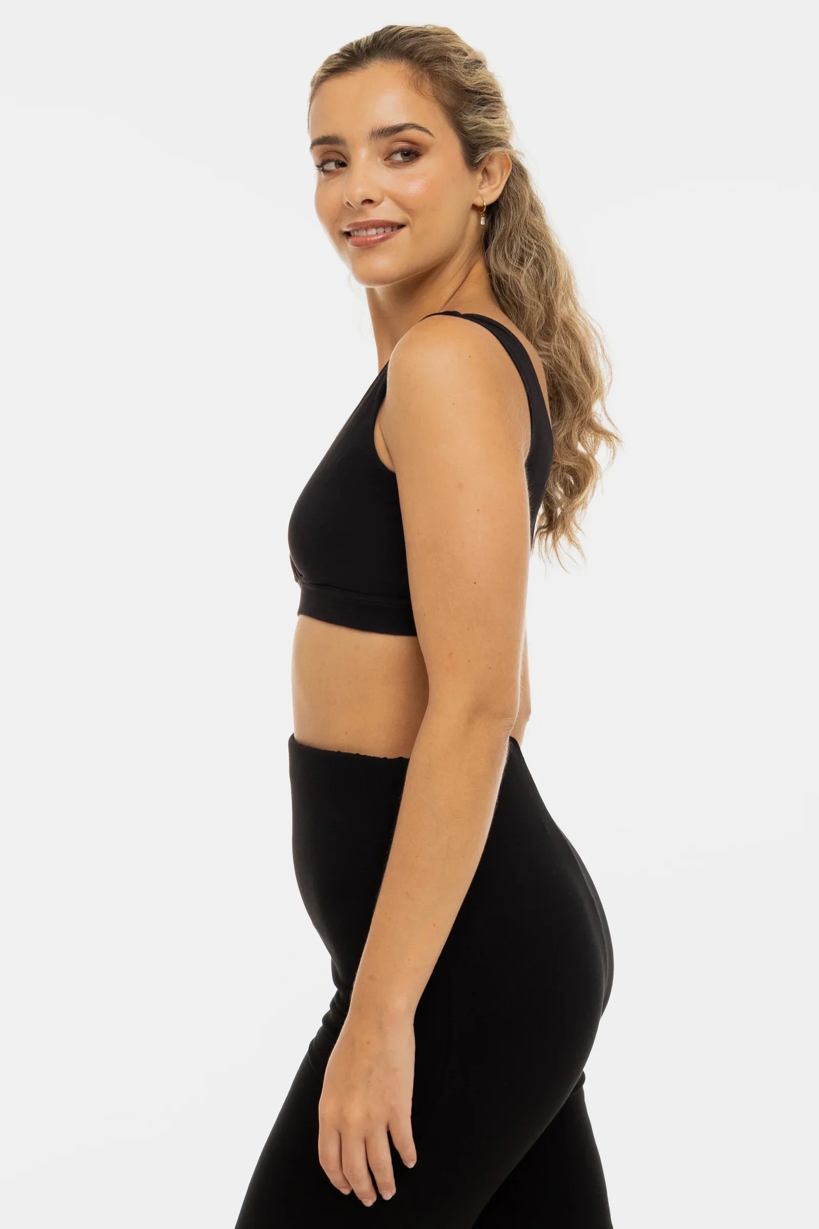 - Szeroka elastyczna taśma pod biustem zapewnia dodatkowe podparcie.