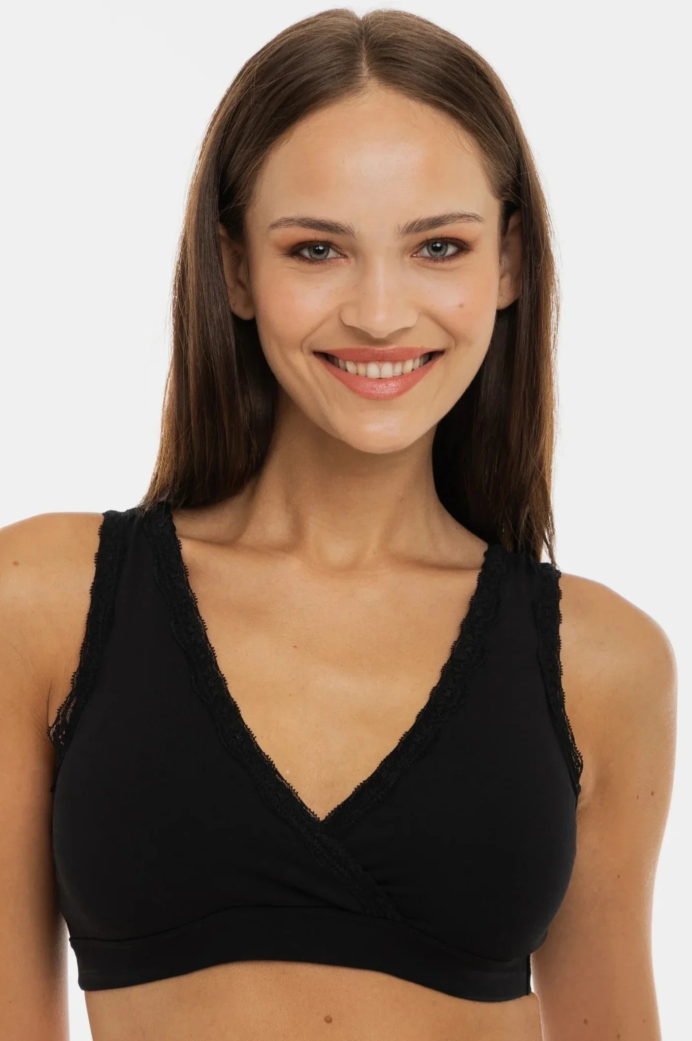 Bawełniany biustonosz ciążowy i do karmienia z koronką – czarny
