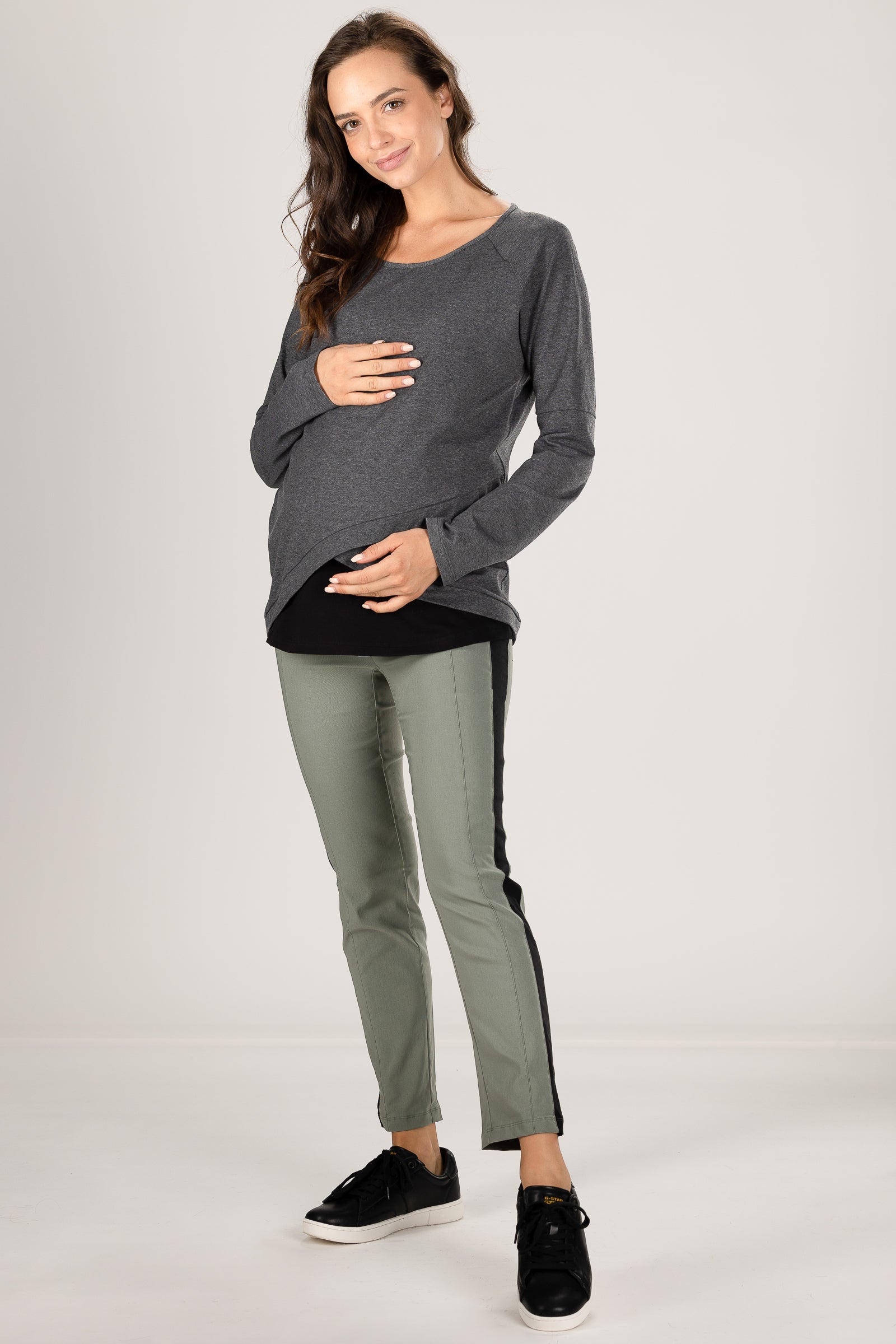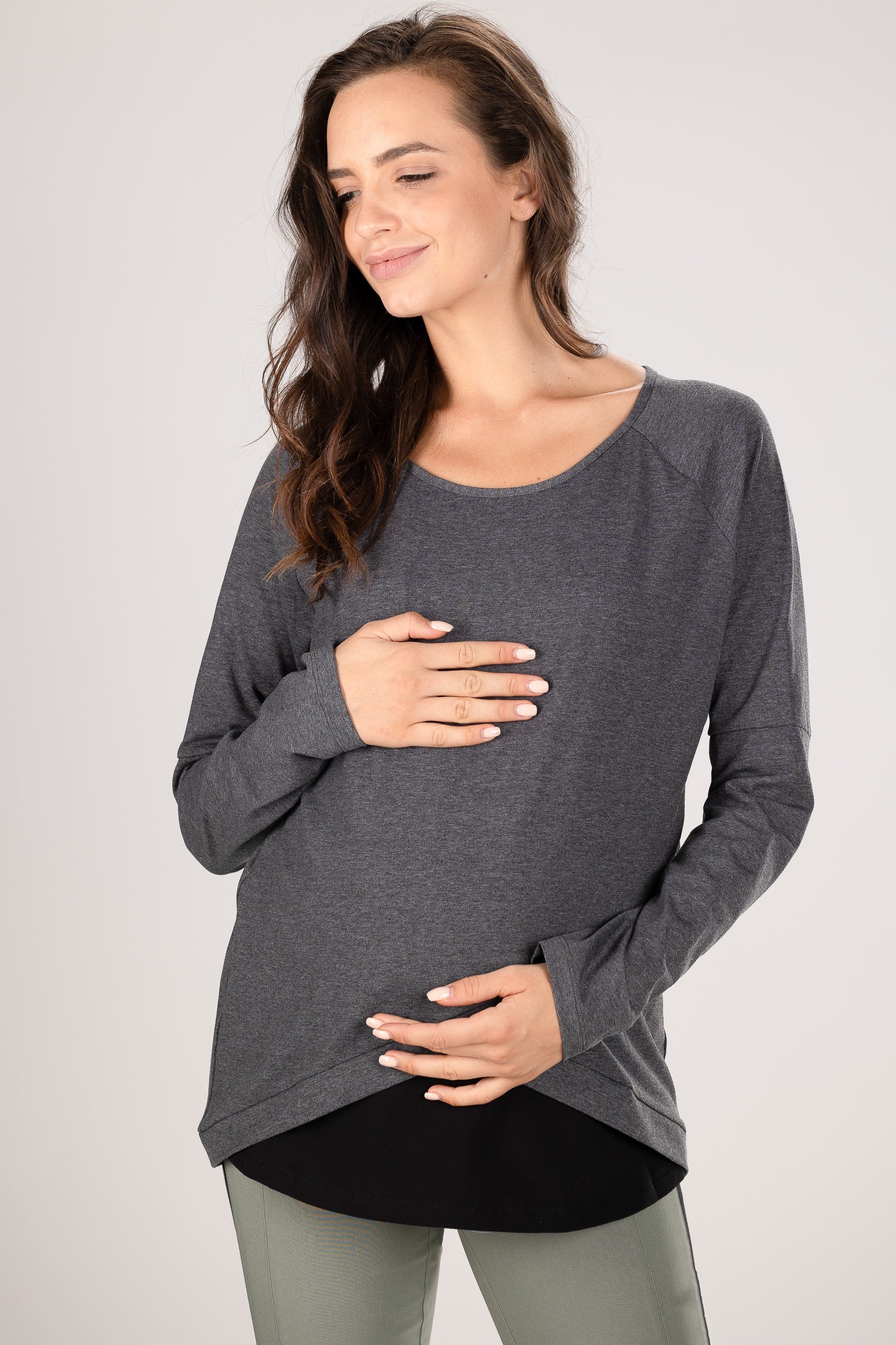 Bawełniana bluzka ciążowa i do karmienia – ciemnoszara