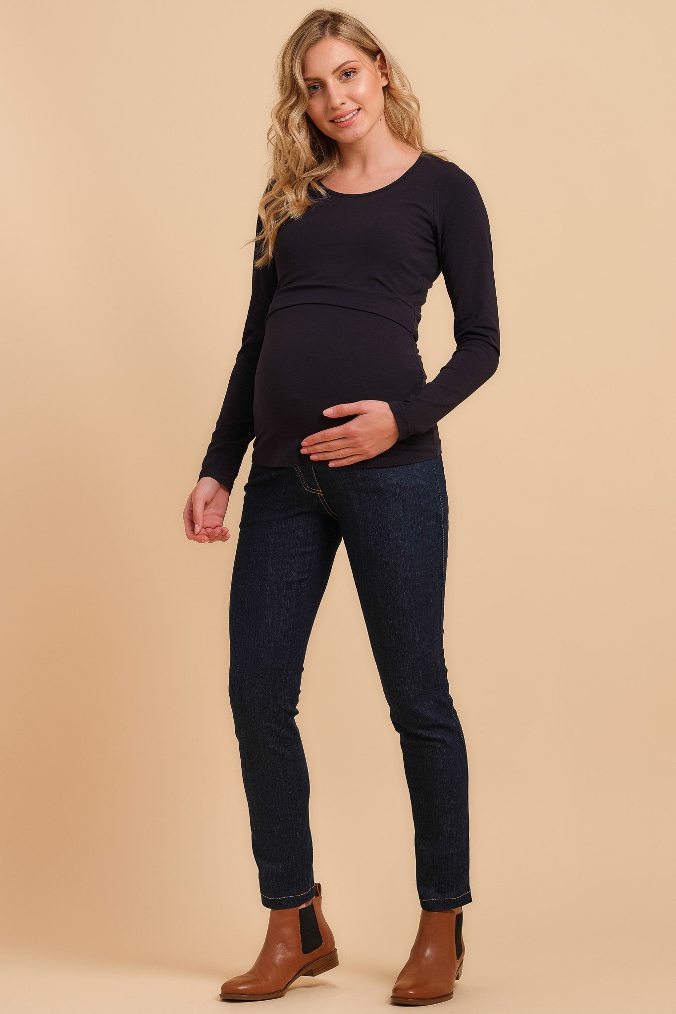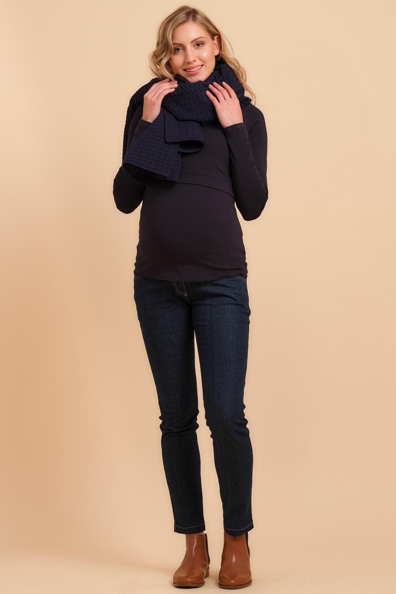 Bawełniana bluzka ciążowa i do karmienia w kolorze granatowym
