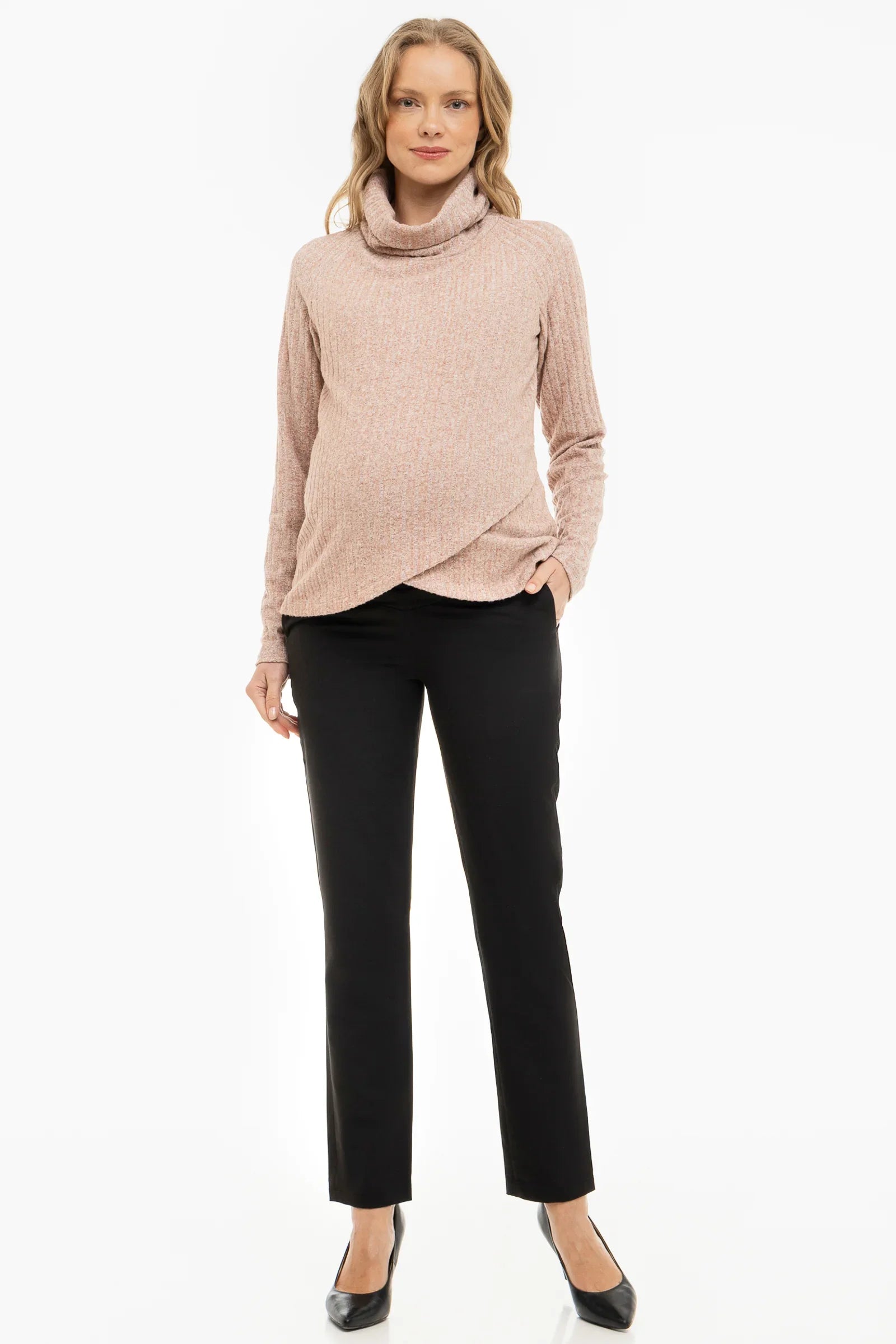 - Sweter ciążowy z prążkowanego dzianiny w kolorze beżowym