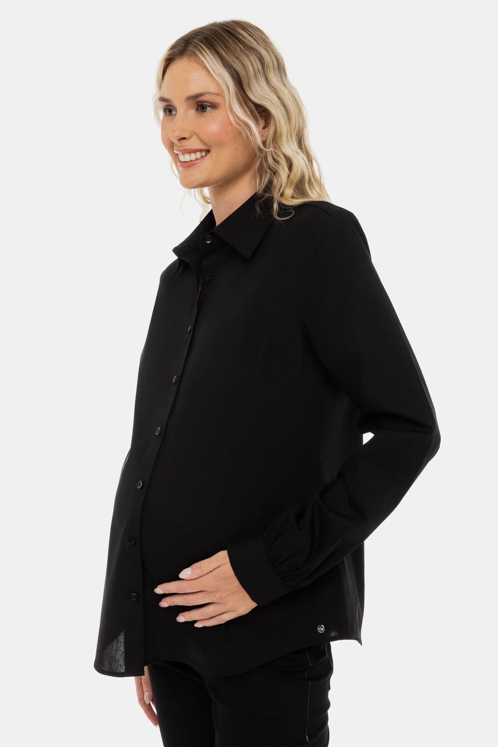 Bawełniana koszula 2 w 1 ciążowa i do karmienia – czarna