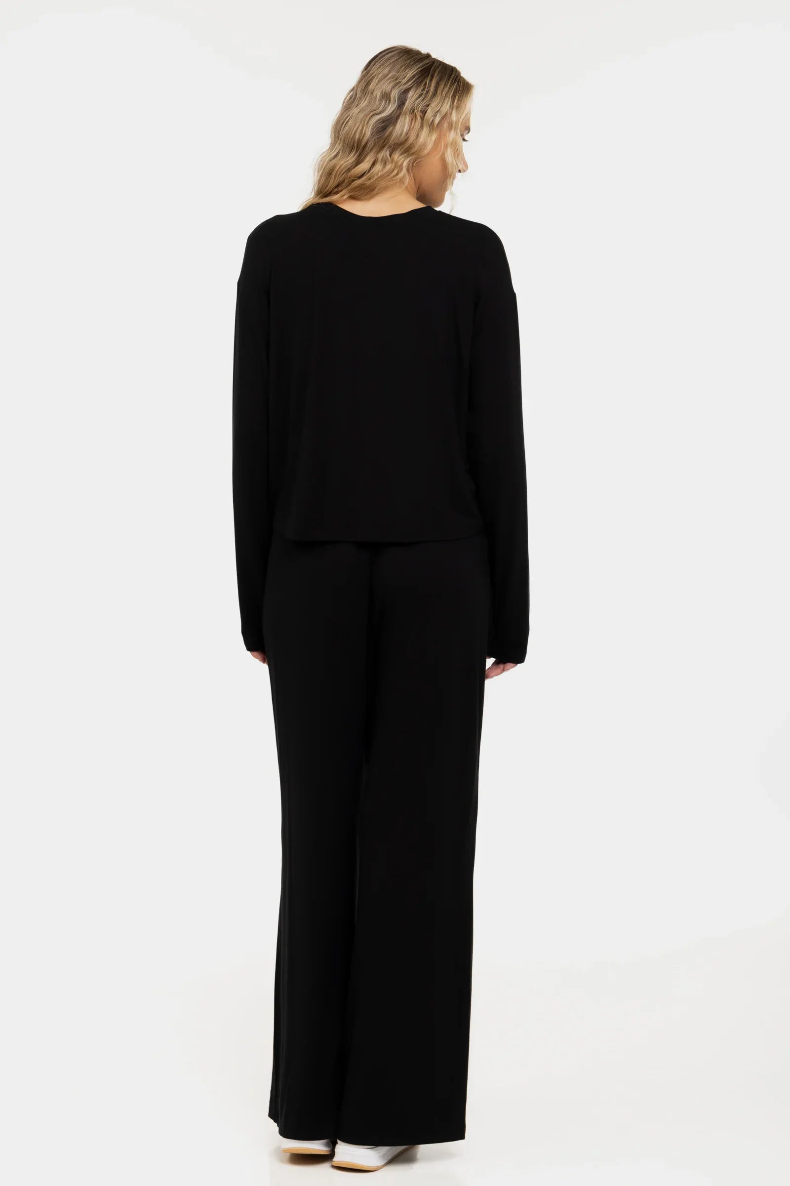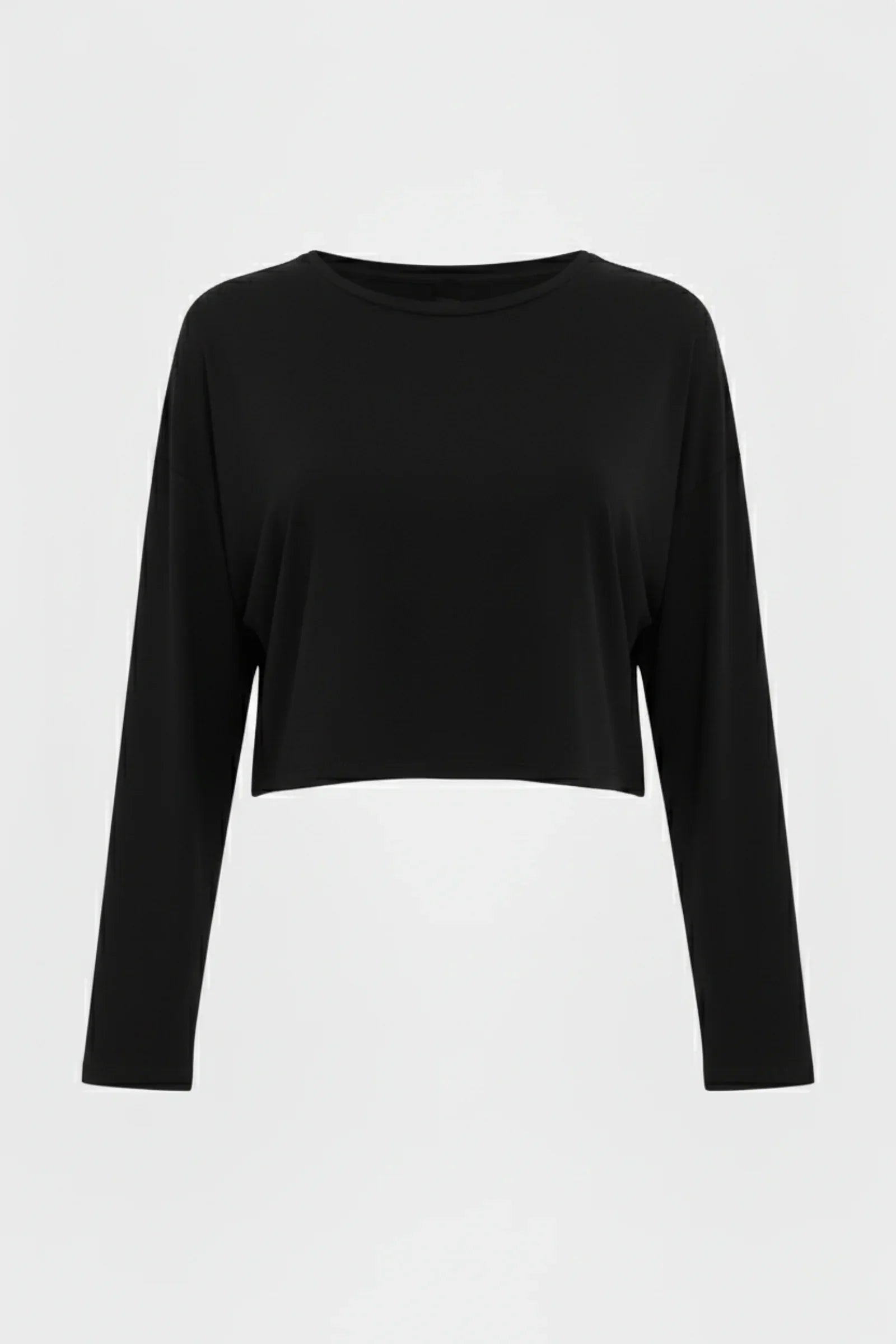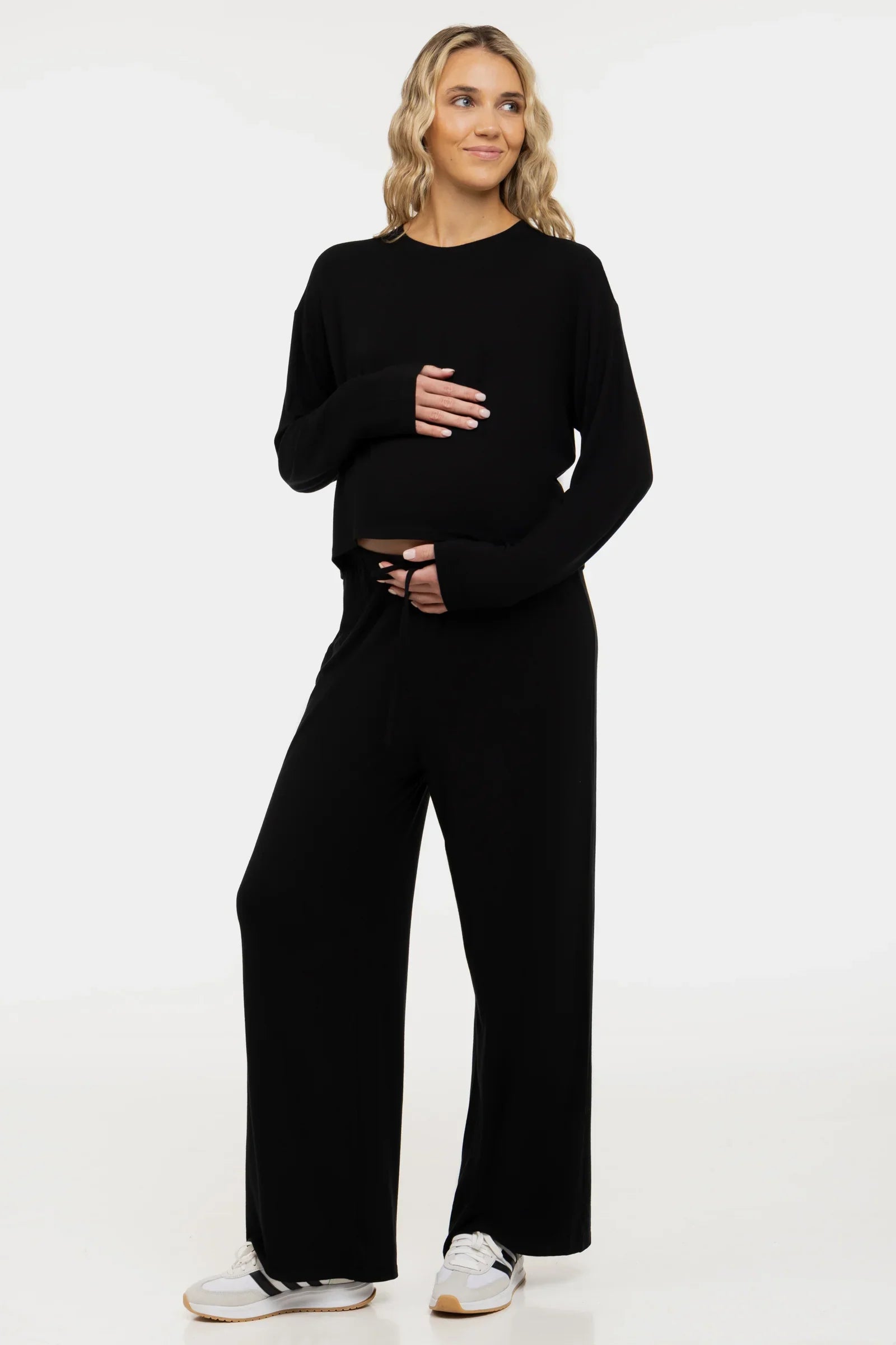 Miękki crop top ciążowy z długim rękawem z modalu – czarny