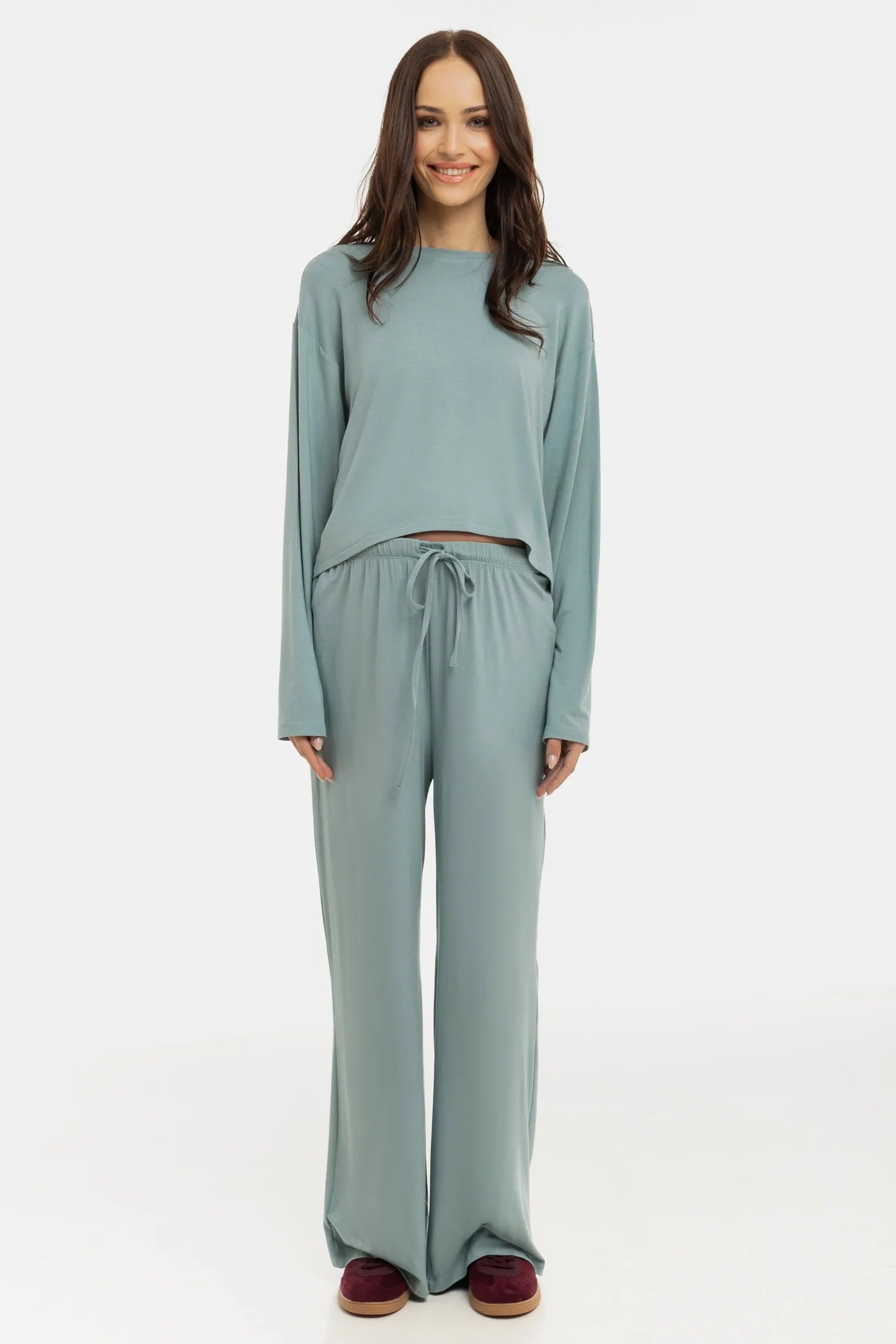 Miękki crop top ciążowy z długim rękawem z modalu – szałwia