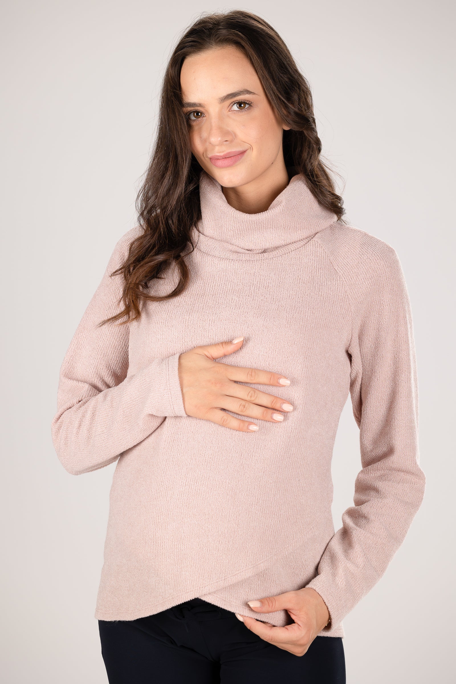 Różowy sweter dzianinowy ciążowy i do karmienia