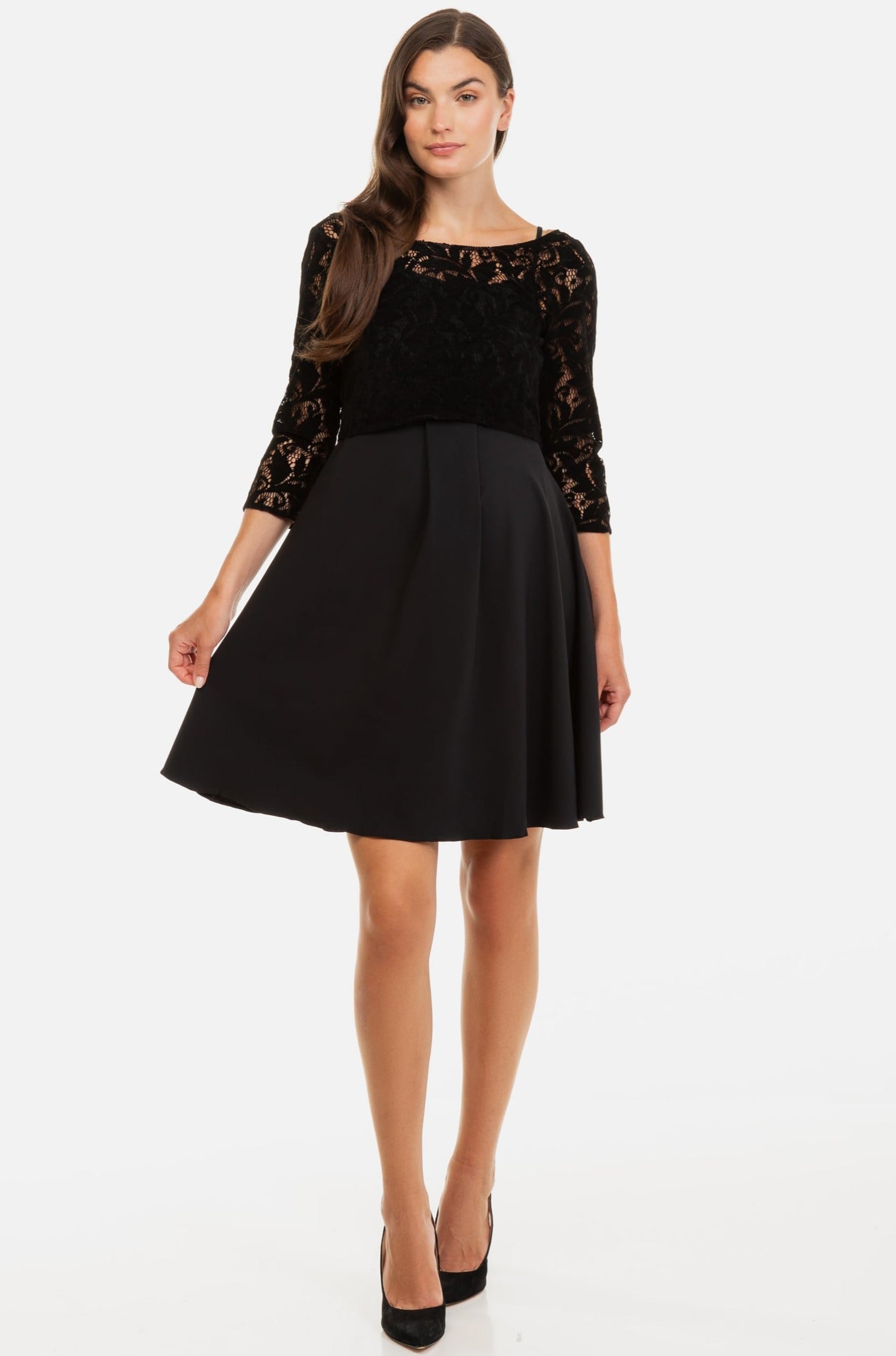 Czarna sukienka ciążowa i do karmienia z koronkową górą