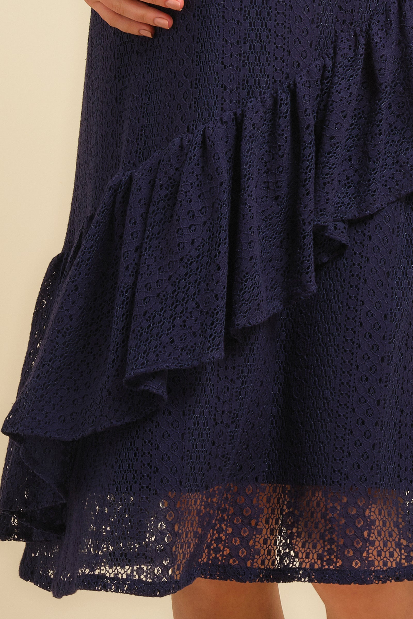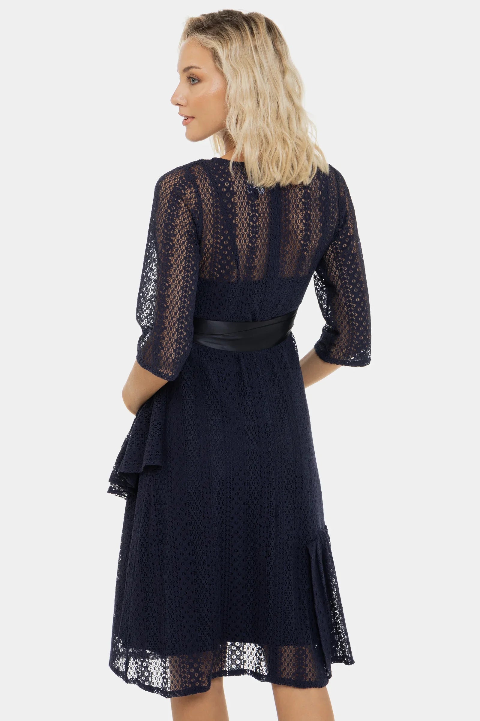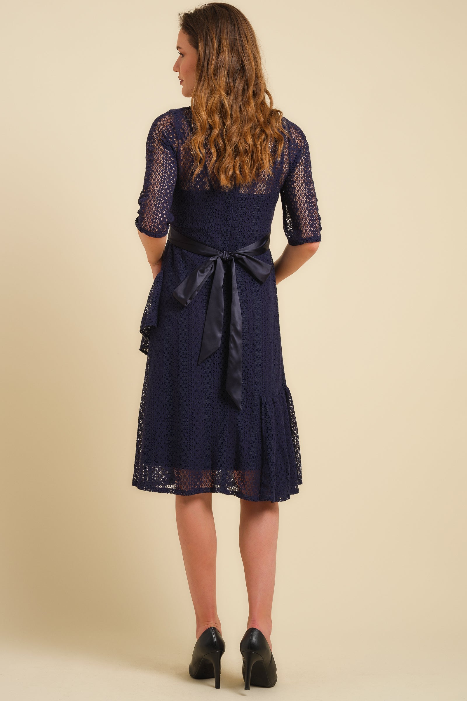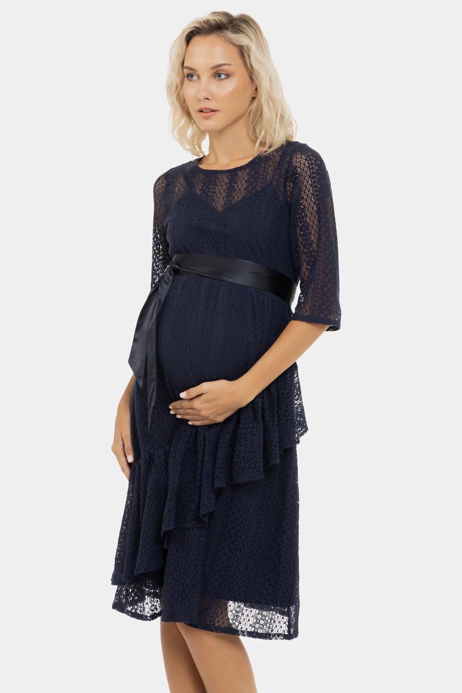 Elegancka długa koronkowa sukienka ciążowa - granatowa