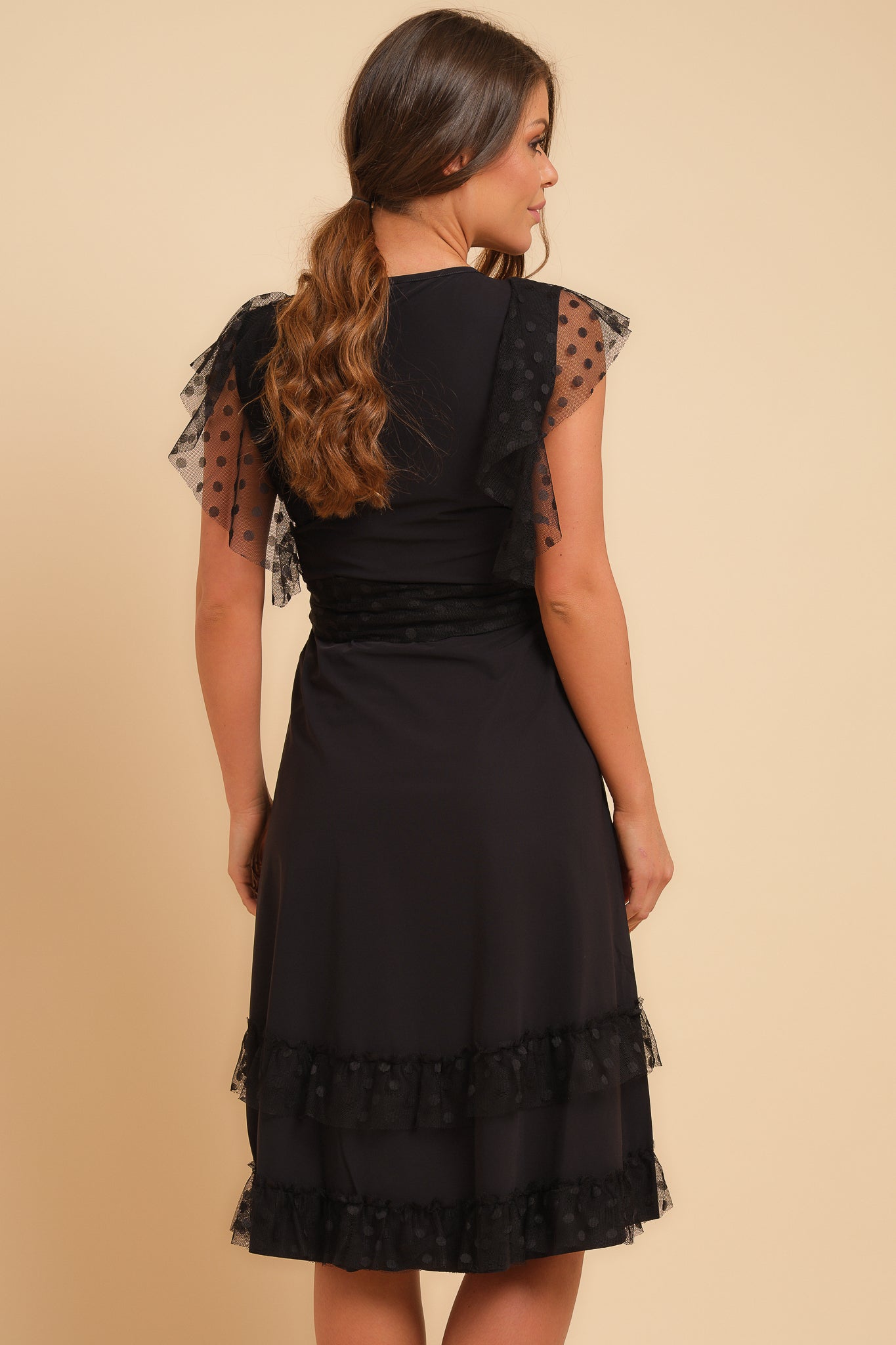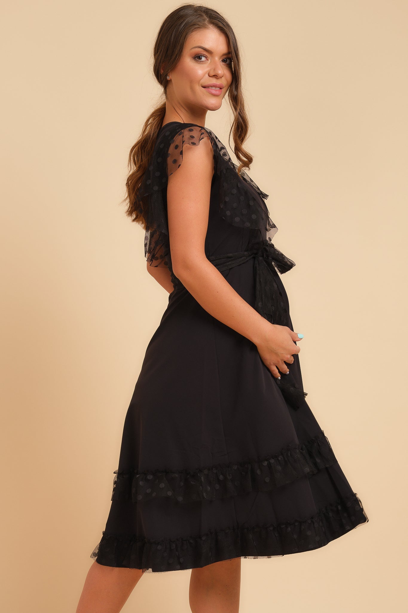 Elegancka czarna sukienka ciążowa i do karmienia w kropki