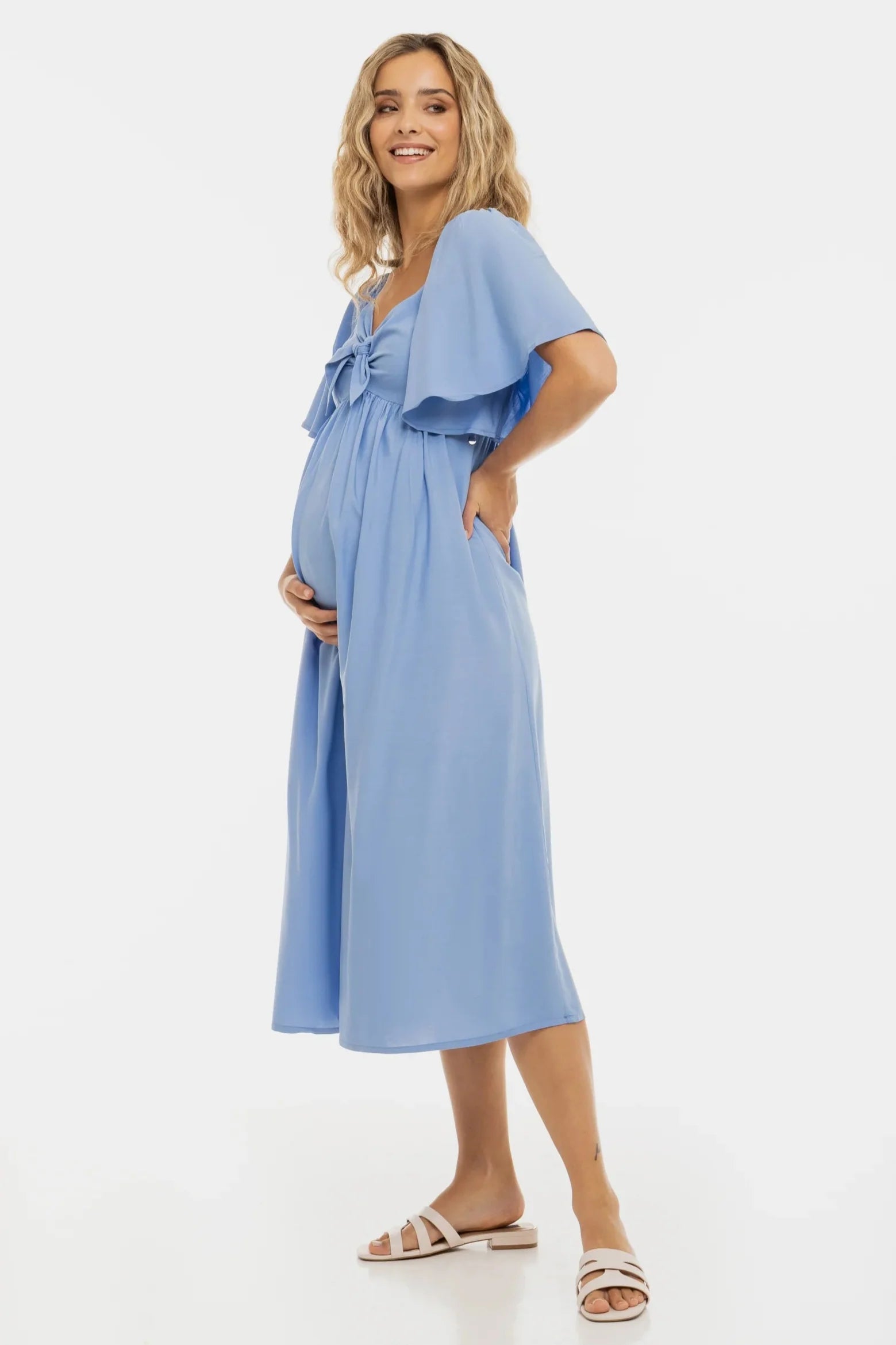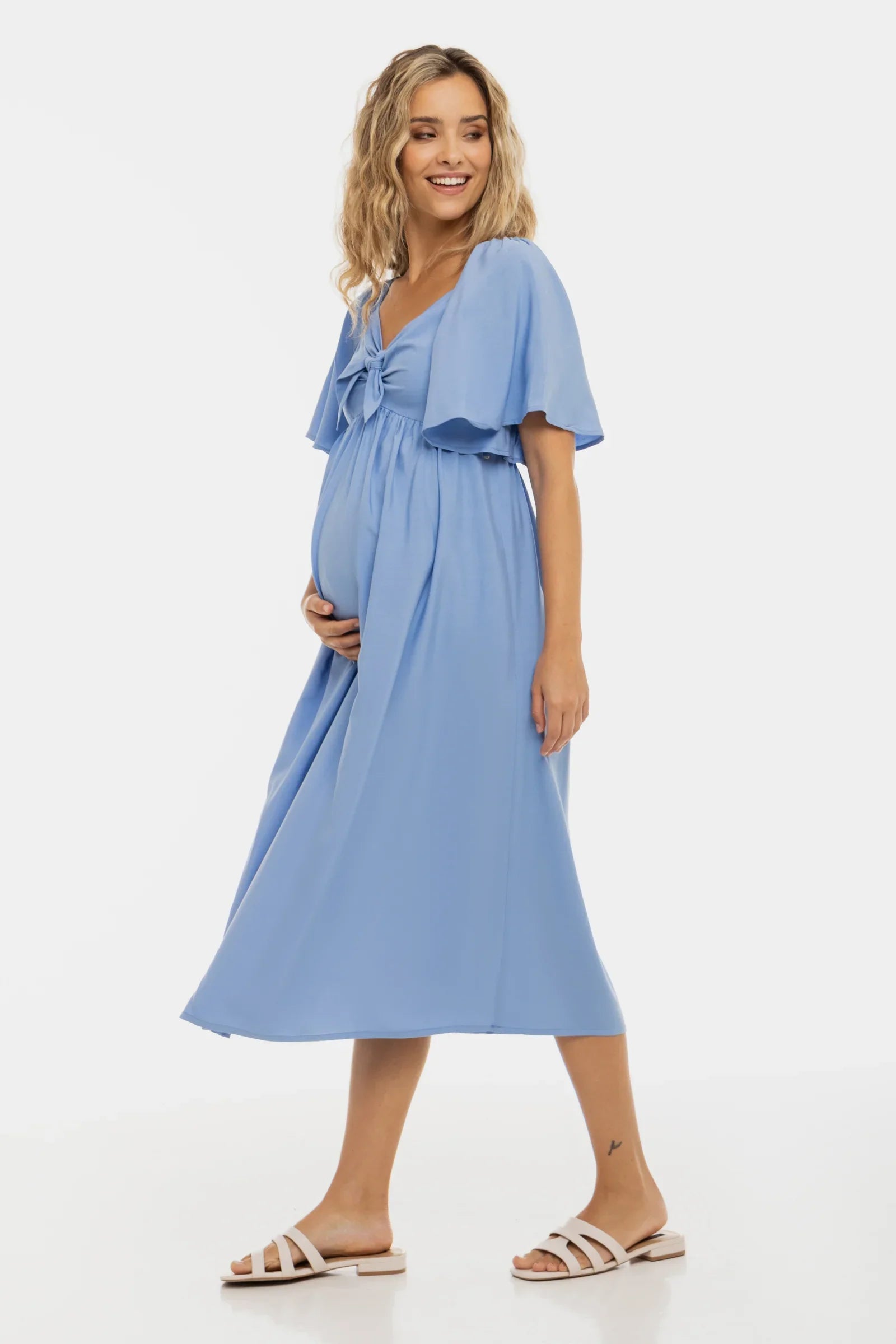 Letnia sukienka ciążowa z marszczeniem z tyłu - niebieska