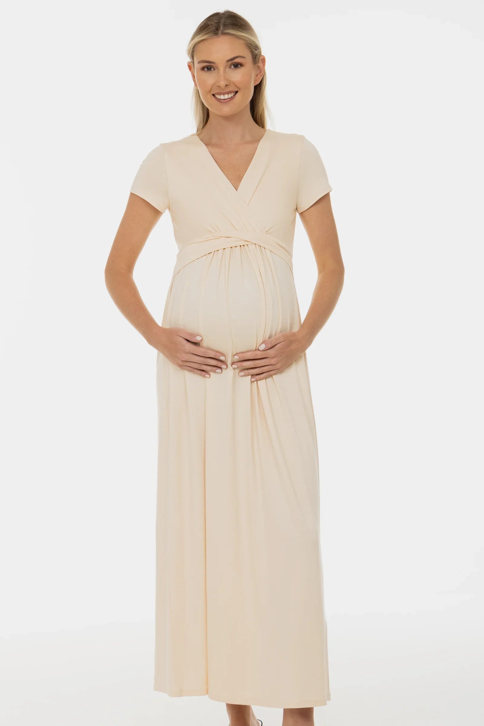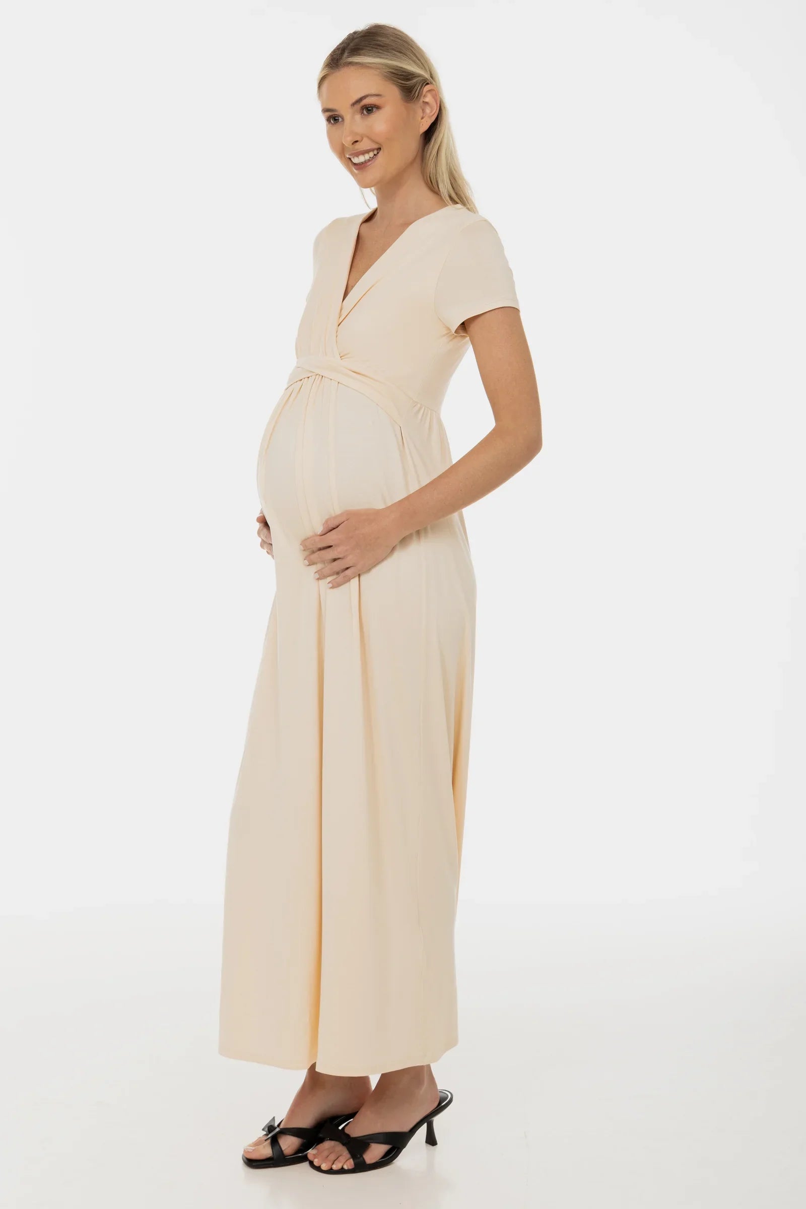Sukienka ciążowa i do karmienia z ozdobnym paskiem – szampański