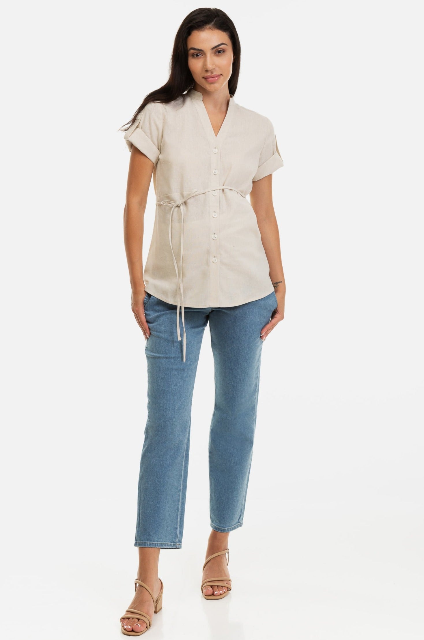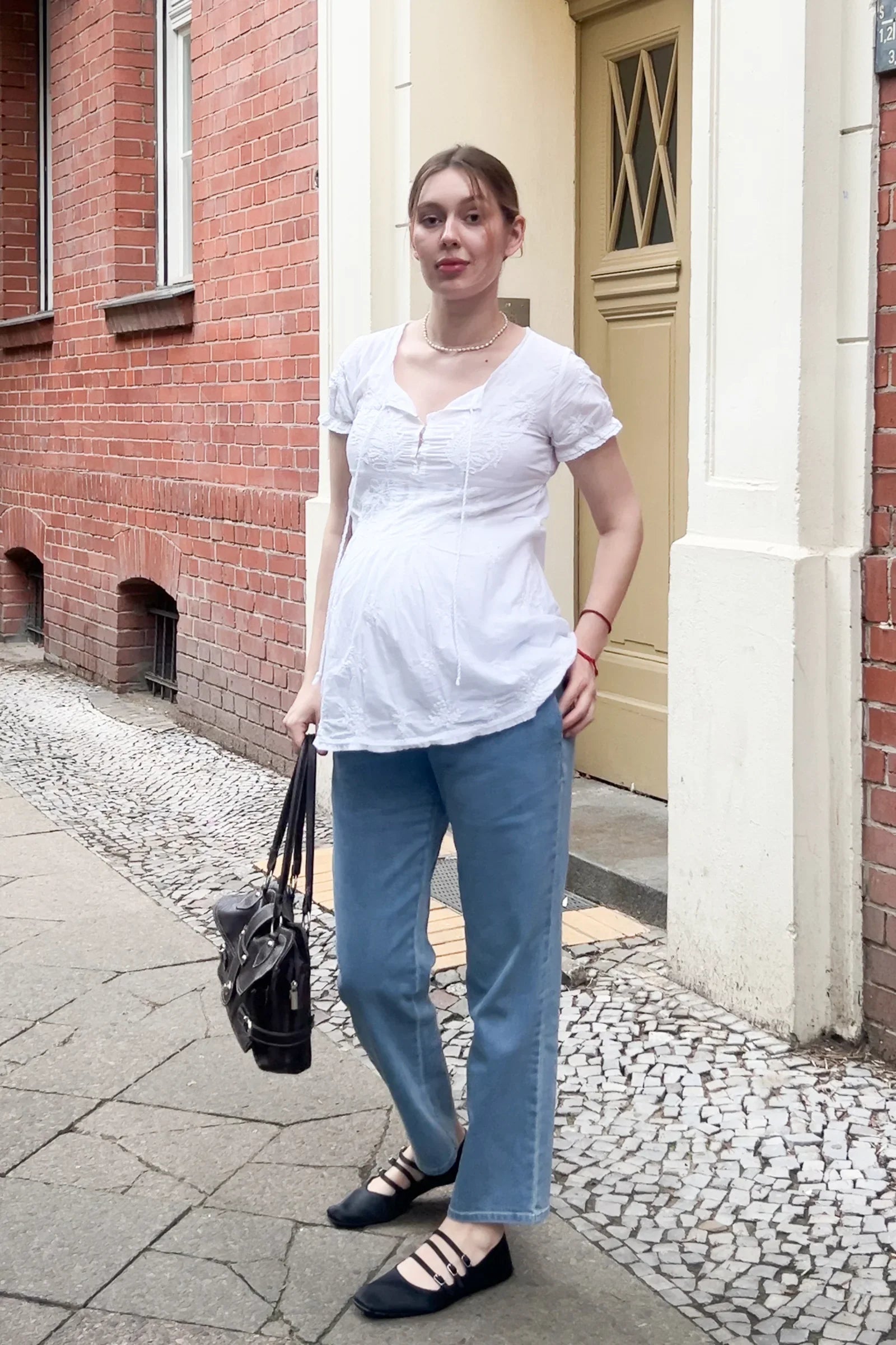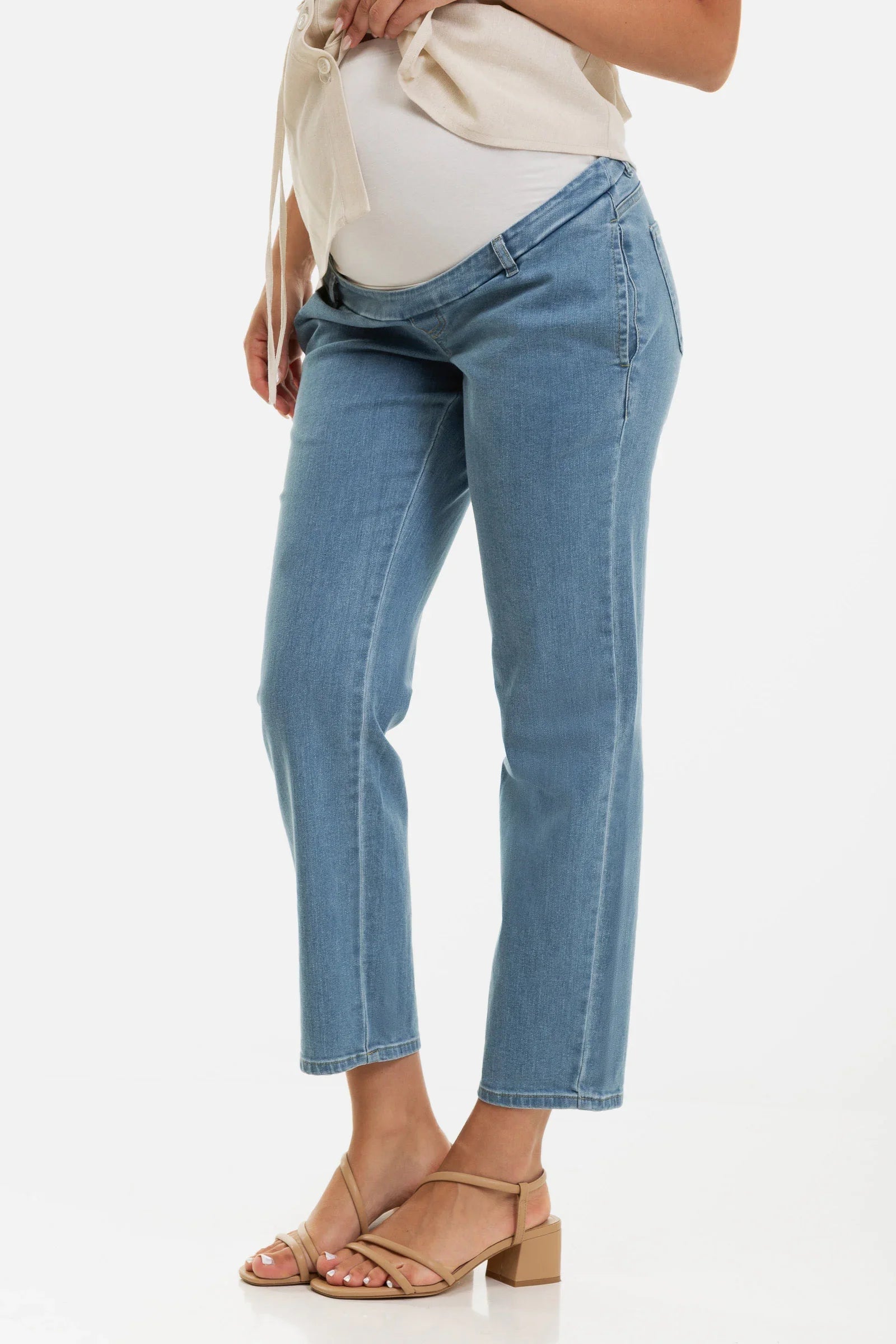 Dzięki specjalnie zaprojektowanemu krojowi, górna część dżinsów pasuje równie dobrze na każdym etapie ciąży.