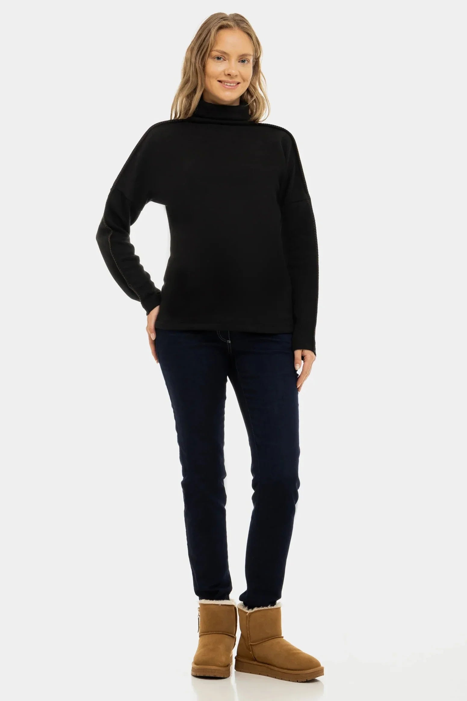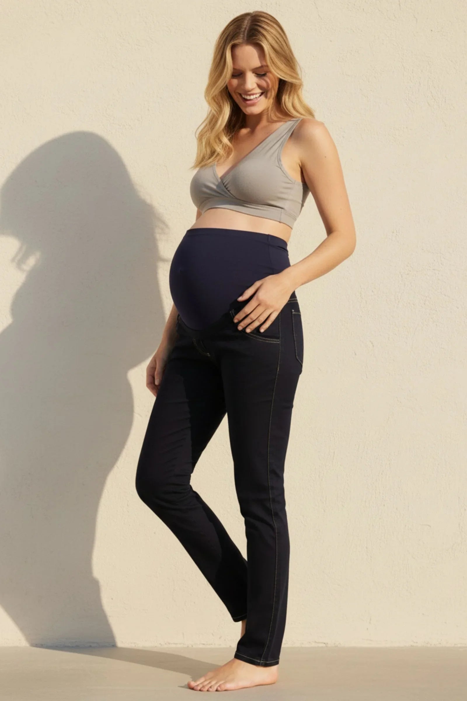- Krój jeansów został specjalnie zaprojektowany, aby zapewnić maksymalny komfort przez całą ciążę