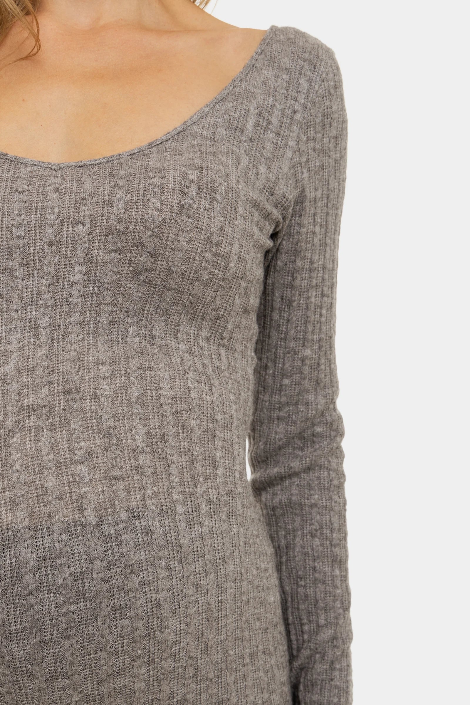 - Sukienka wykonana z miękkiej dzianiny w kolorze brązowym