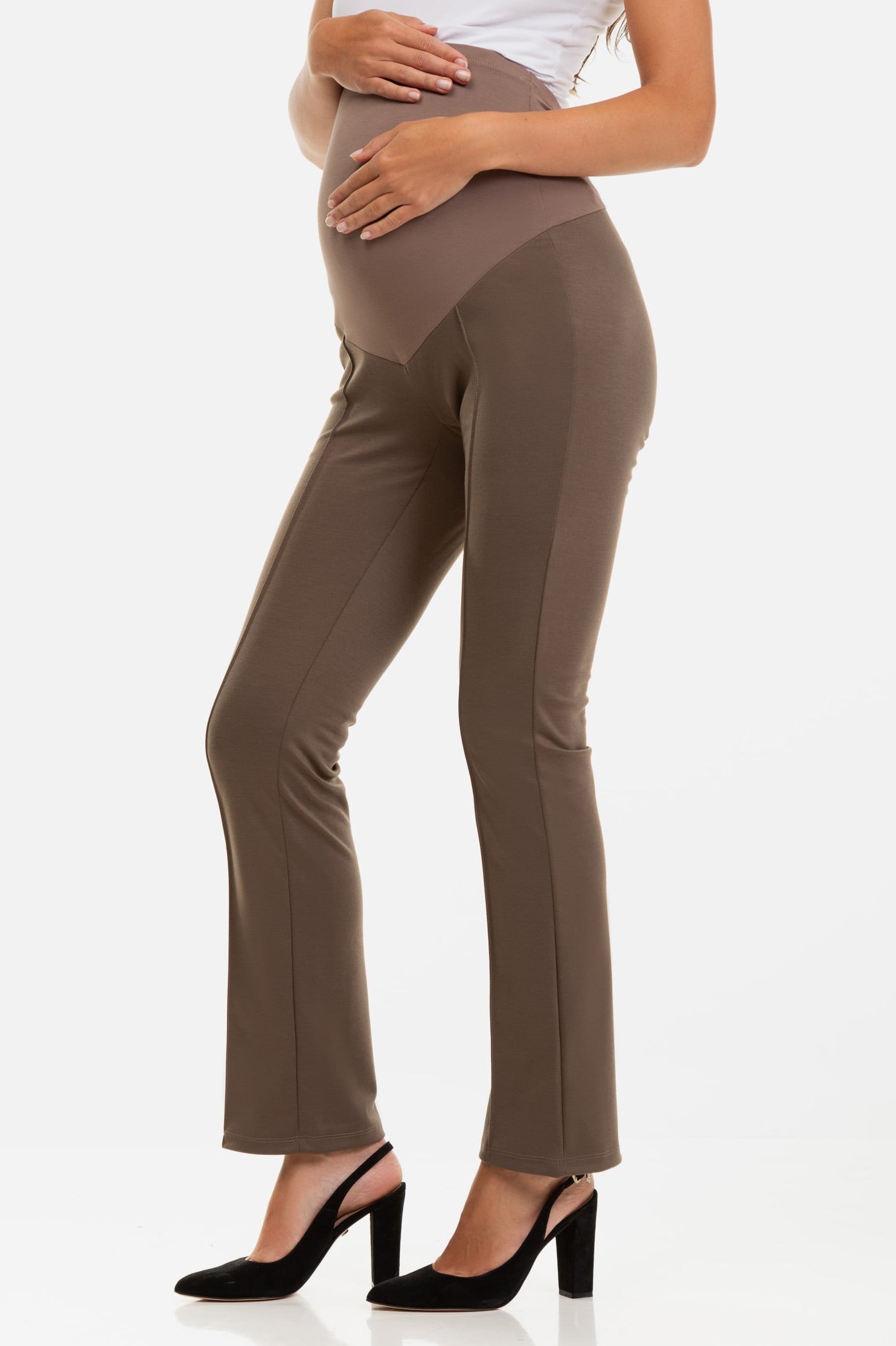 • Spodnie ciążowe wykonane z grubej dzianiny w kolorze brązowym