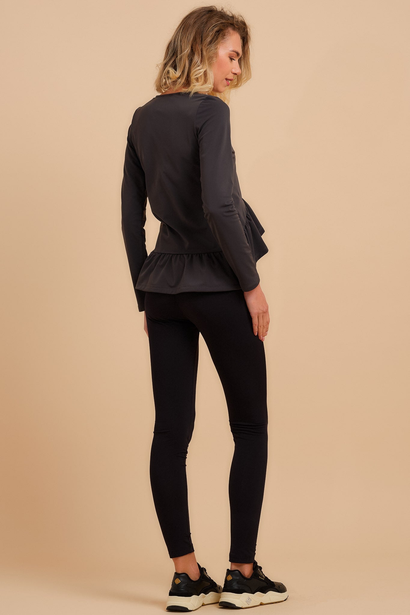 - Legginsy wykonane z elastycznej tkaniny w w kolorze czarnym