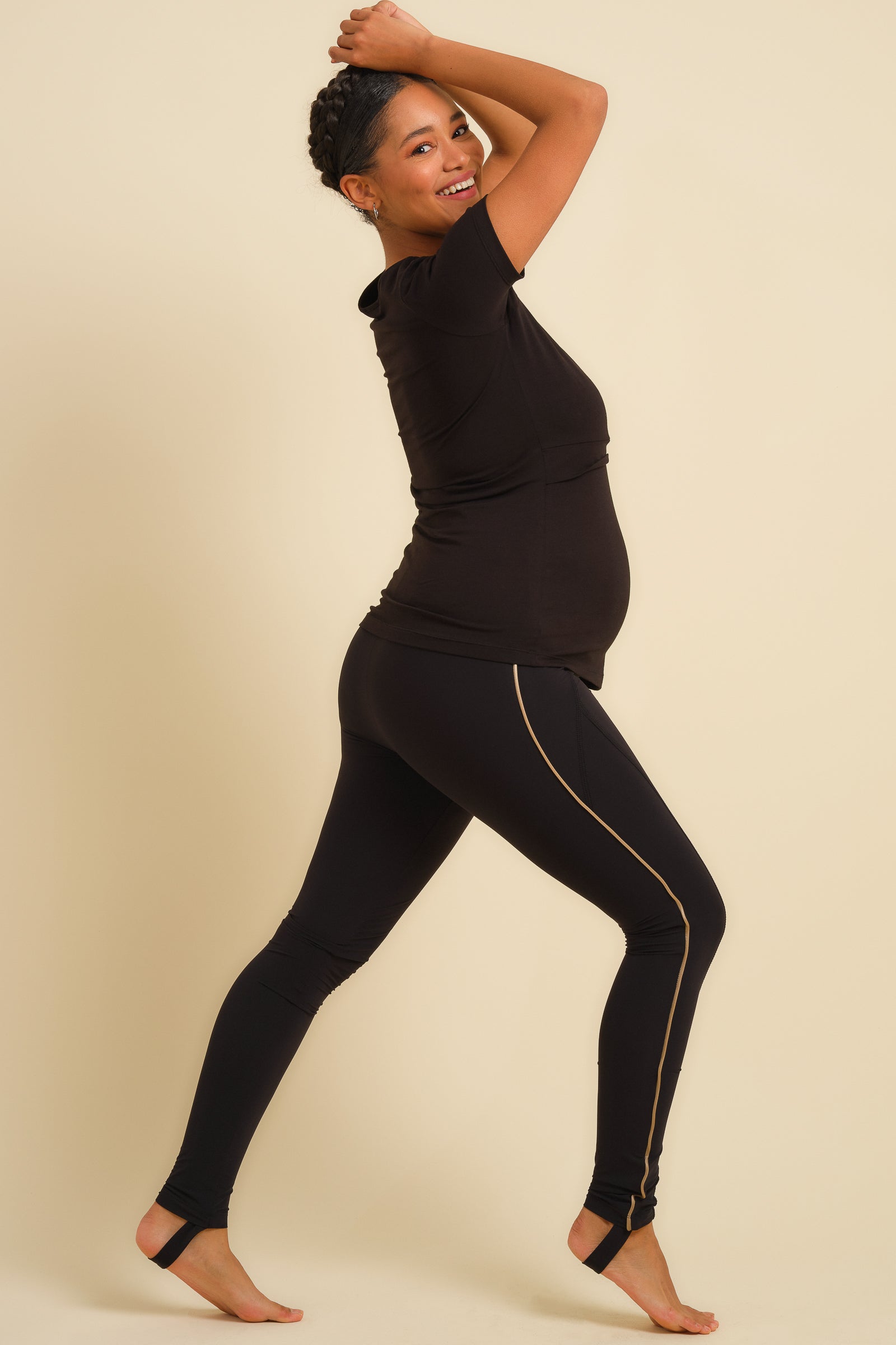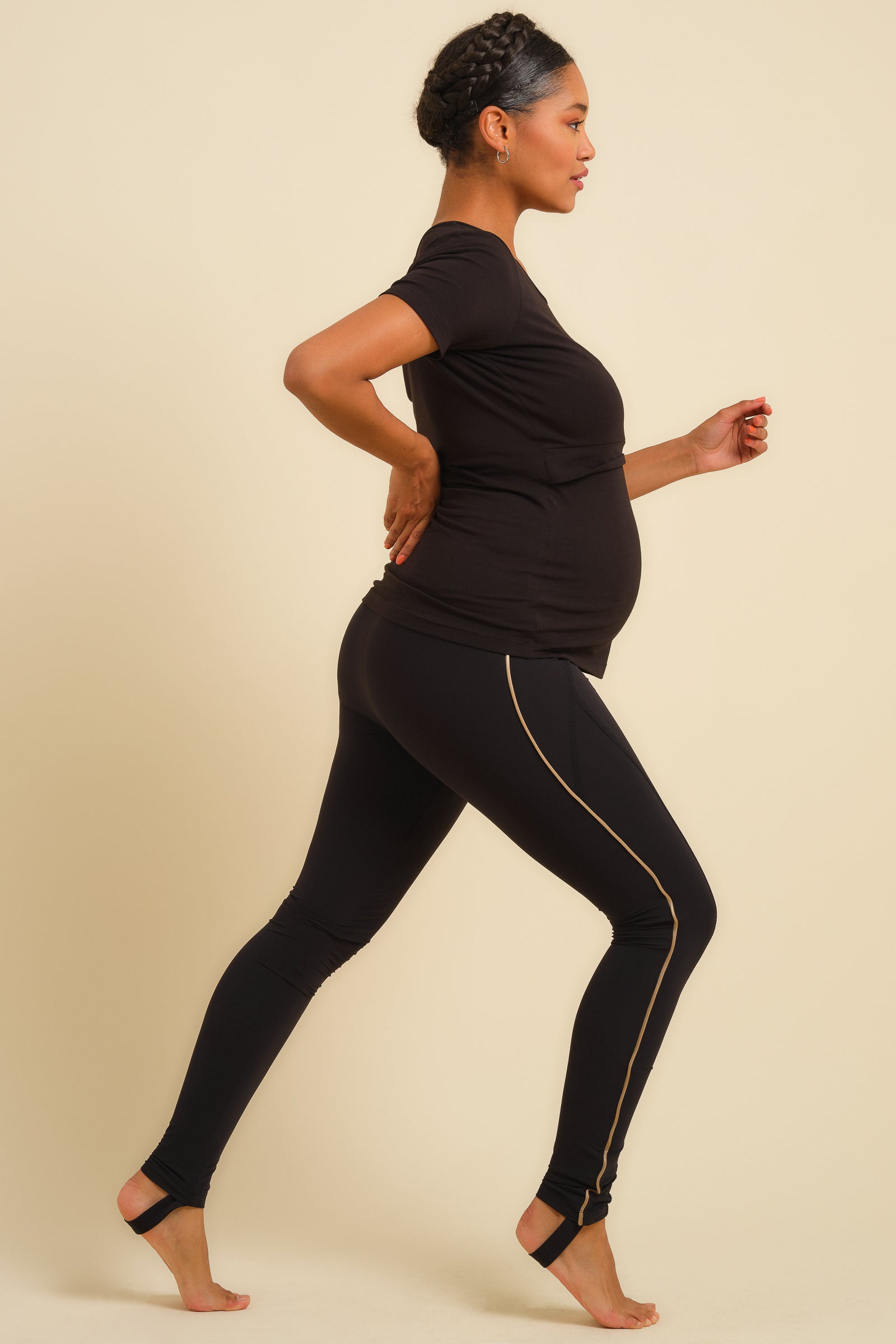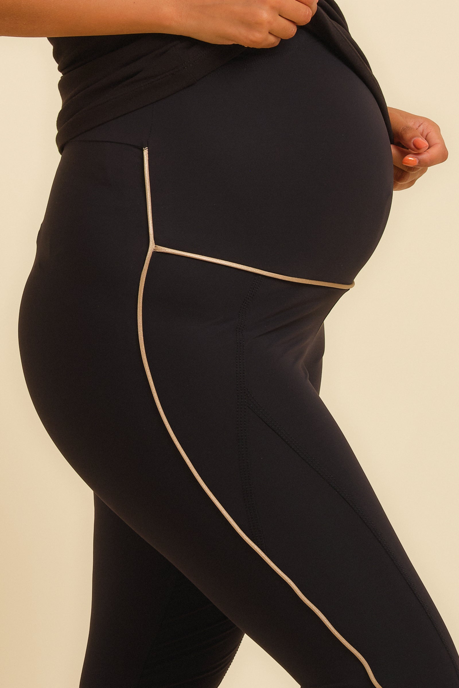- Krój legginsów został specjalnie zaprojektowany z myślą o maksymalnym komforcie przez całą ciążę