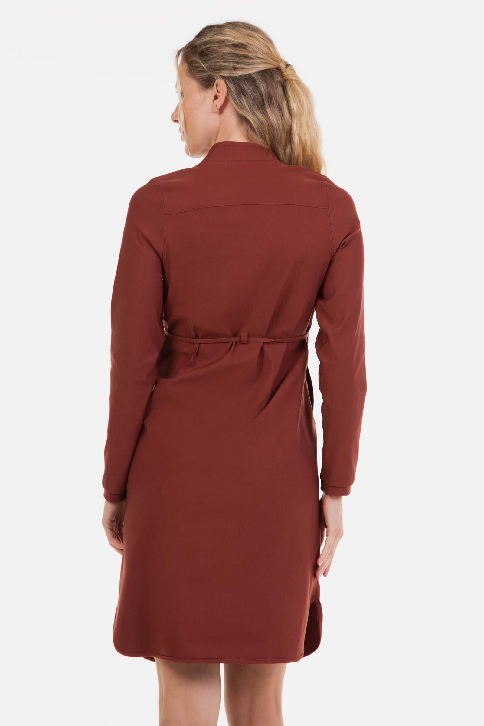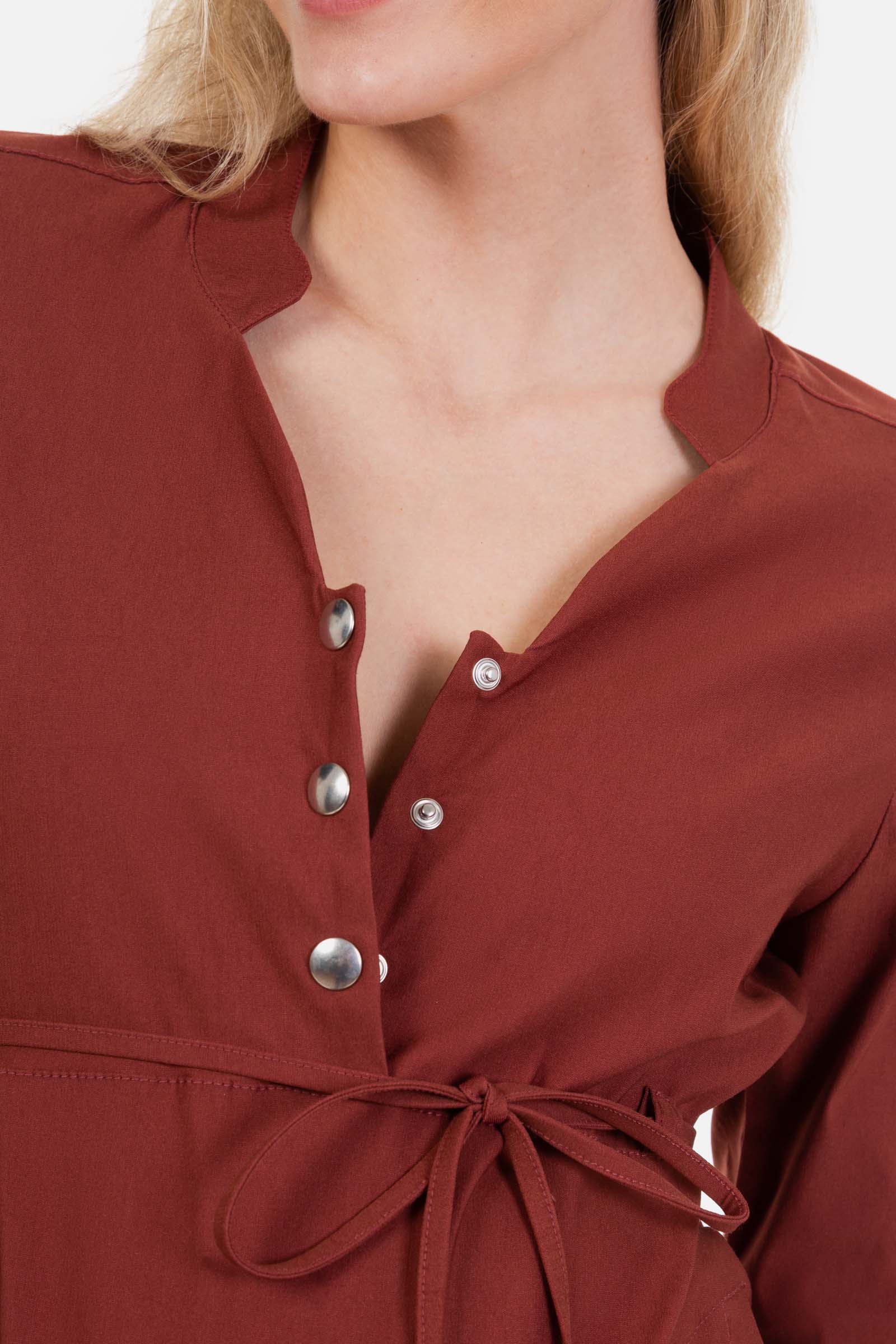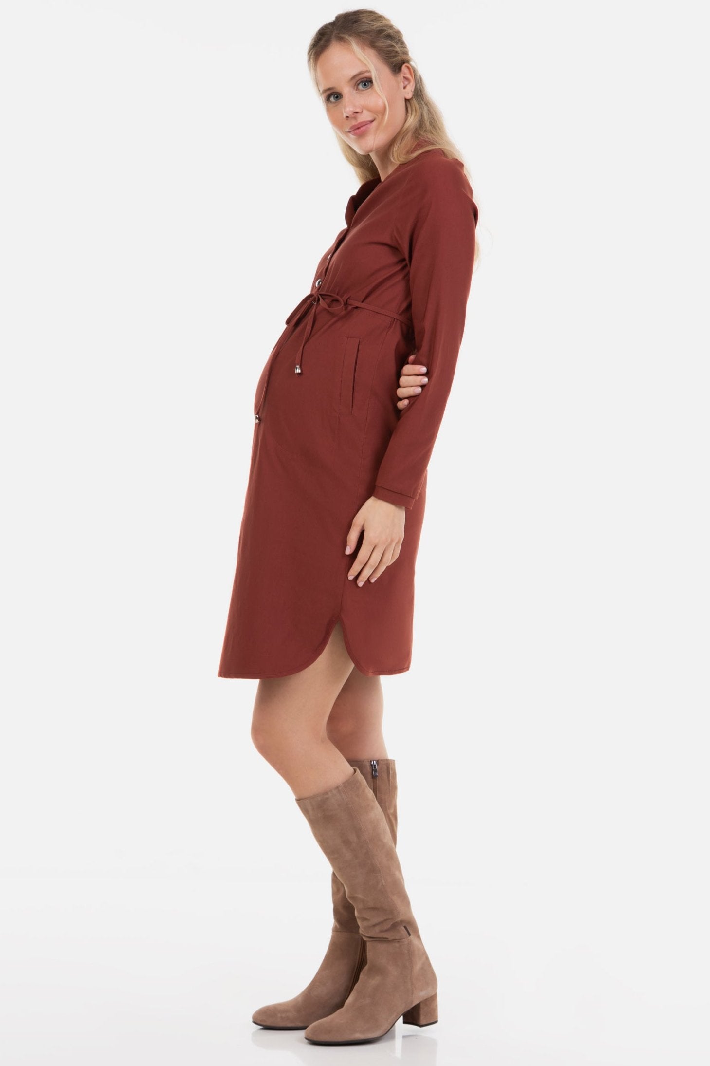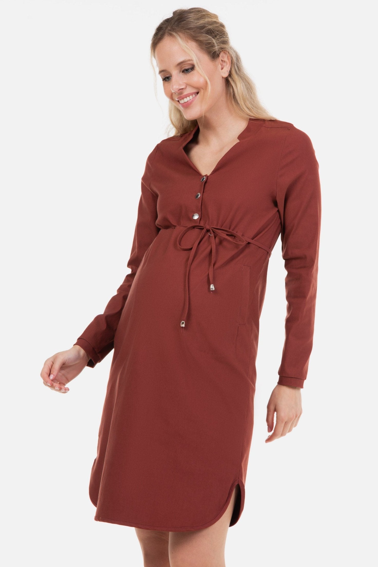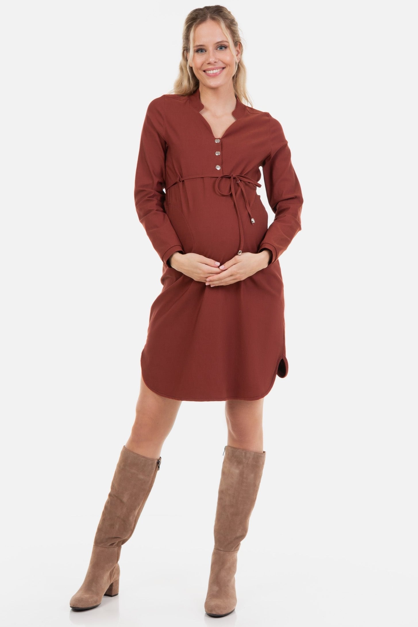- Sukienka ciążowa wykonana z mocno elastycznego materiału w kolorze brązowym