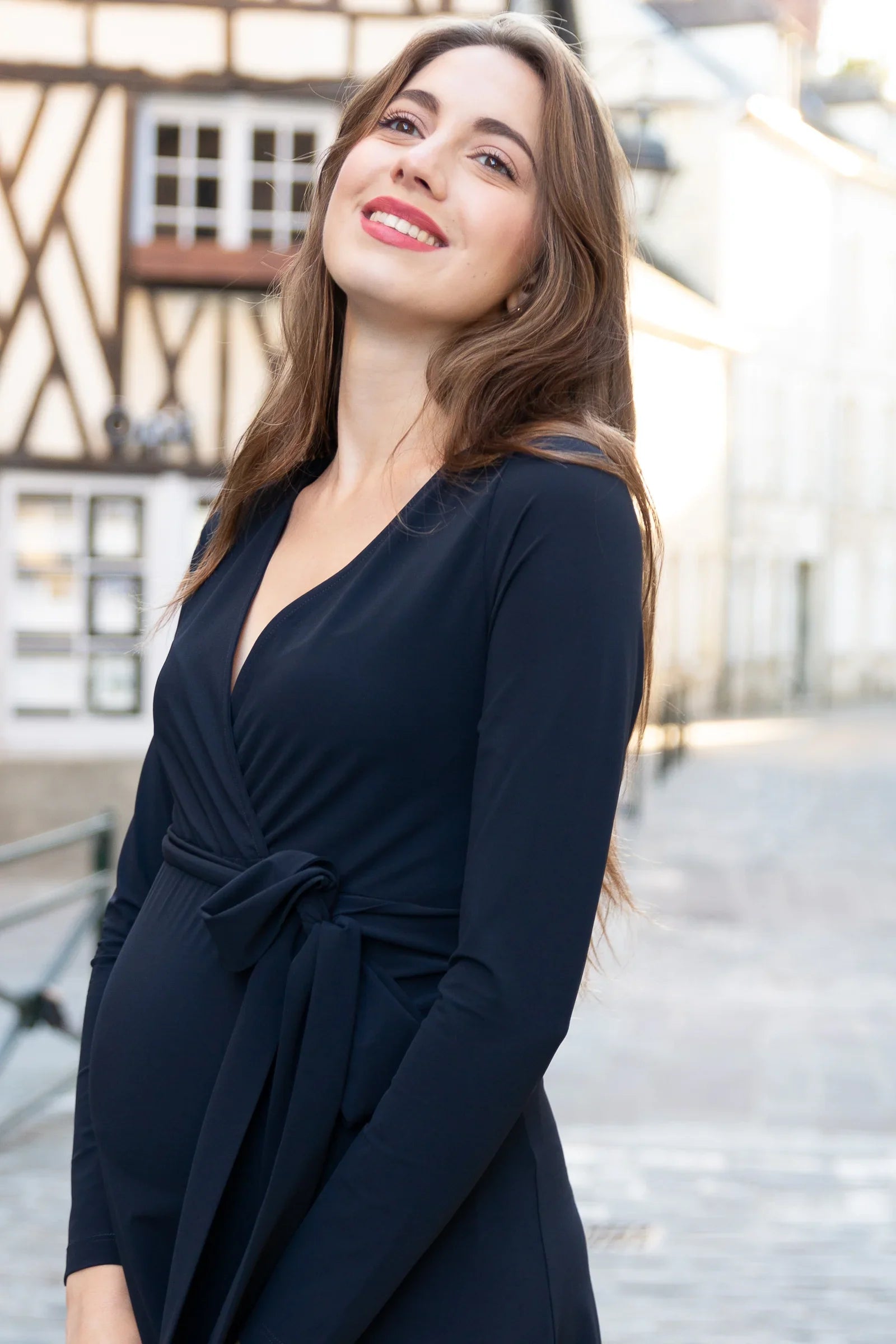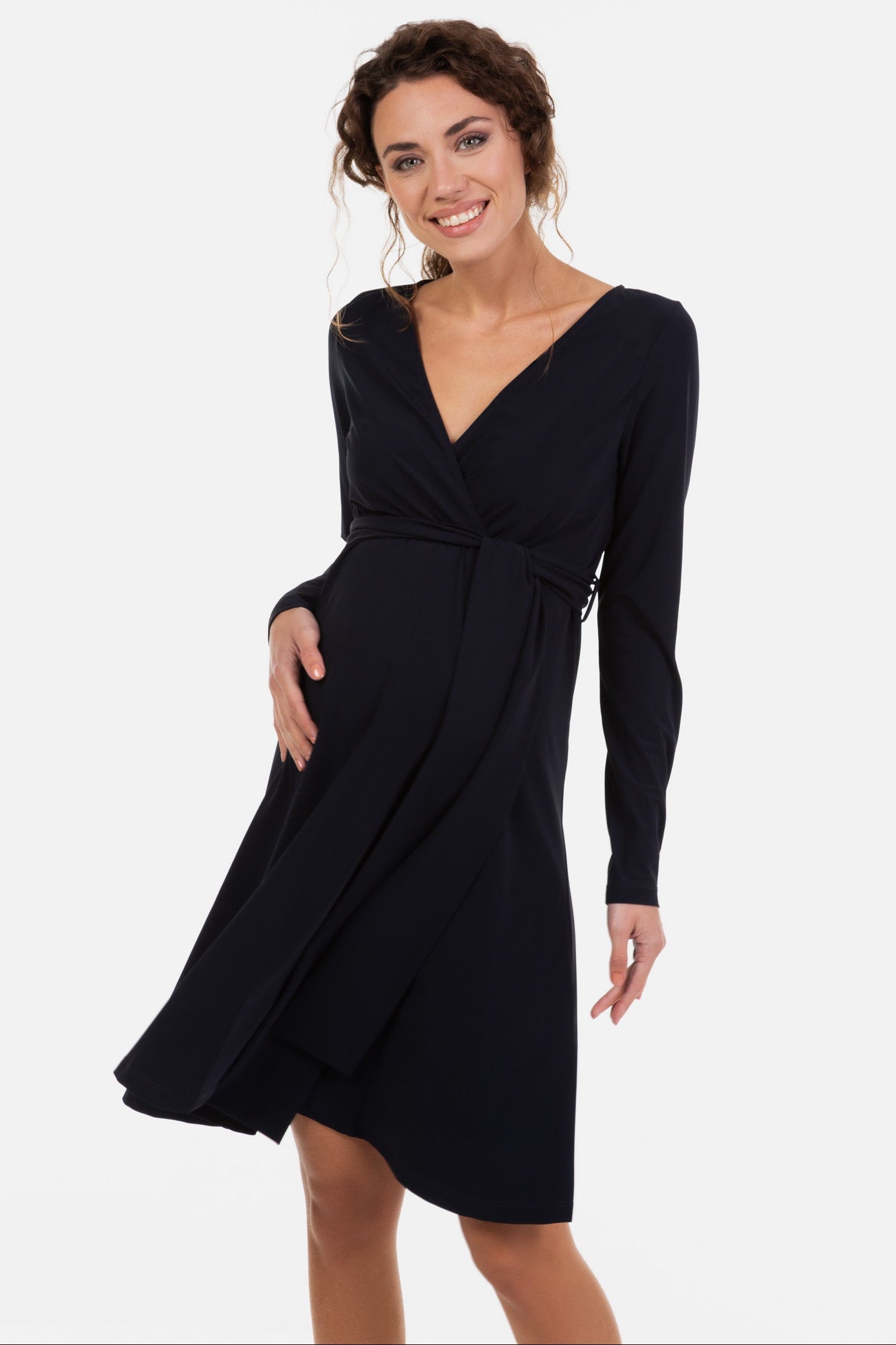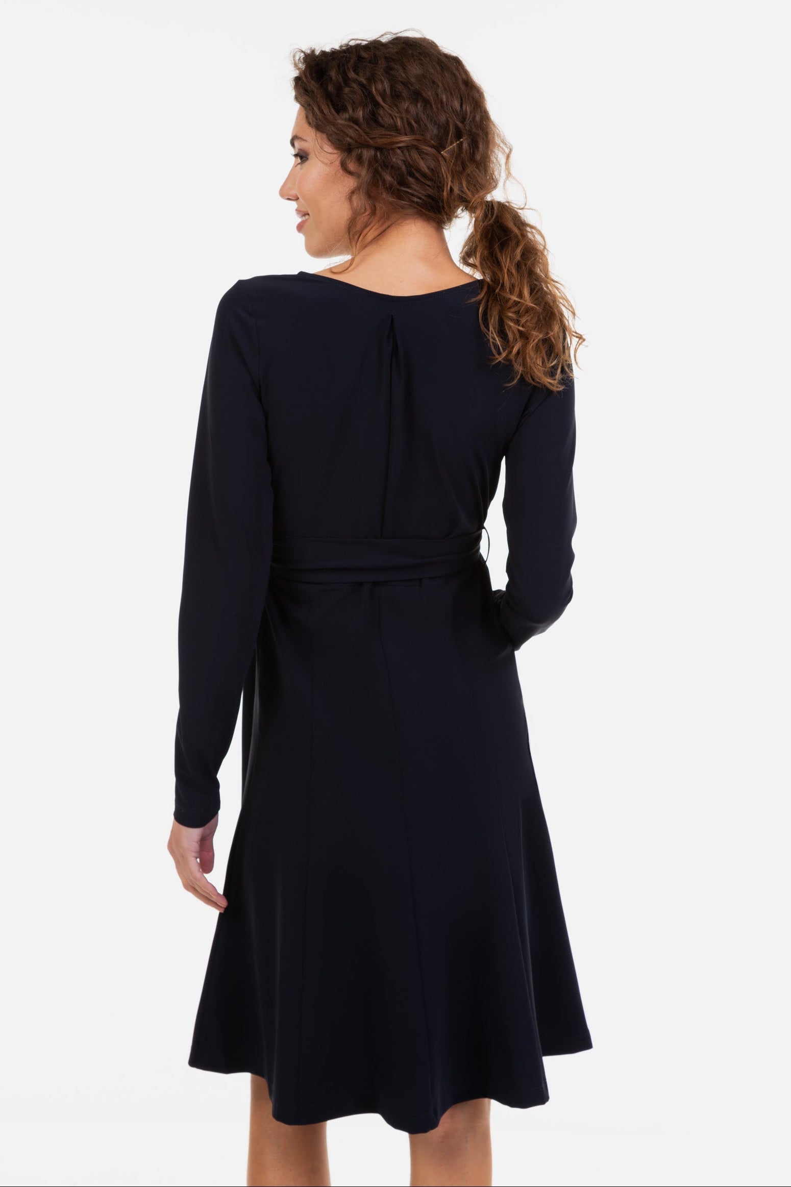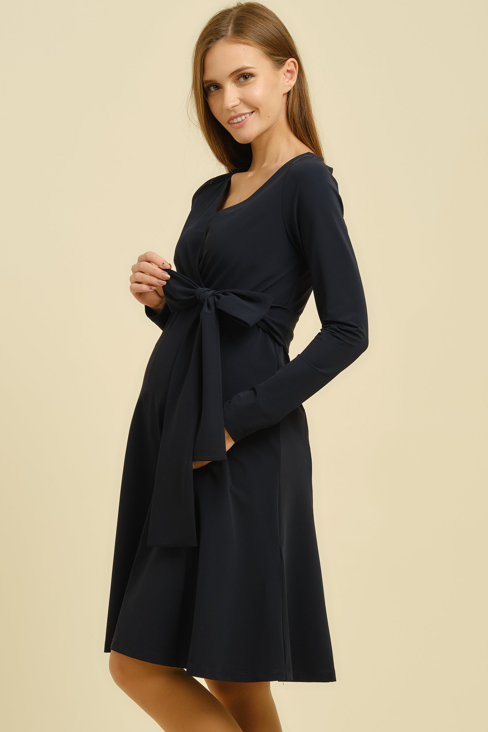 Rozkloszowana sukienka ciążowa i do karmienia - granatowa