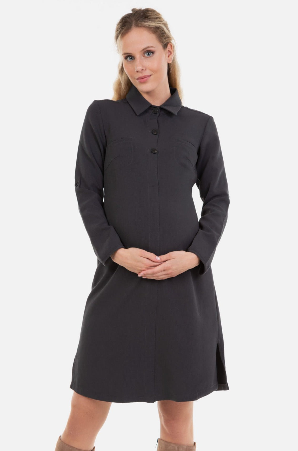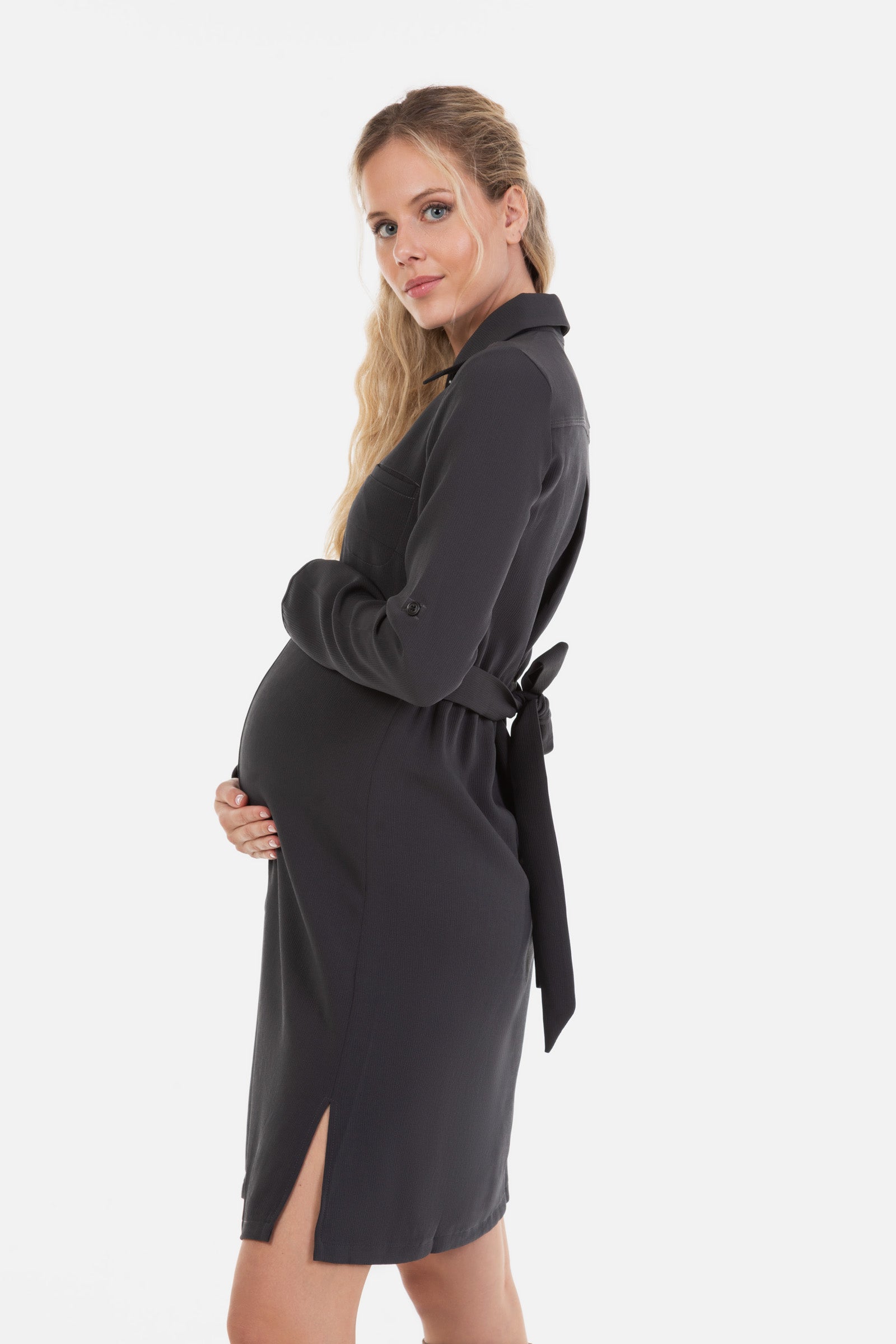 Sukienka koszulowa ciążowa i do karmienia z fakturowanego materiału – szara