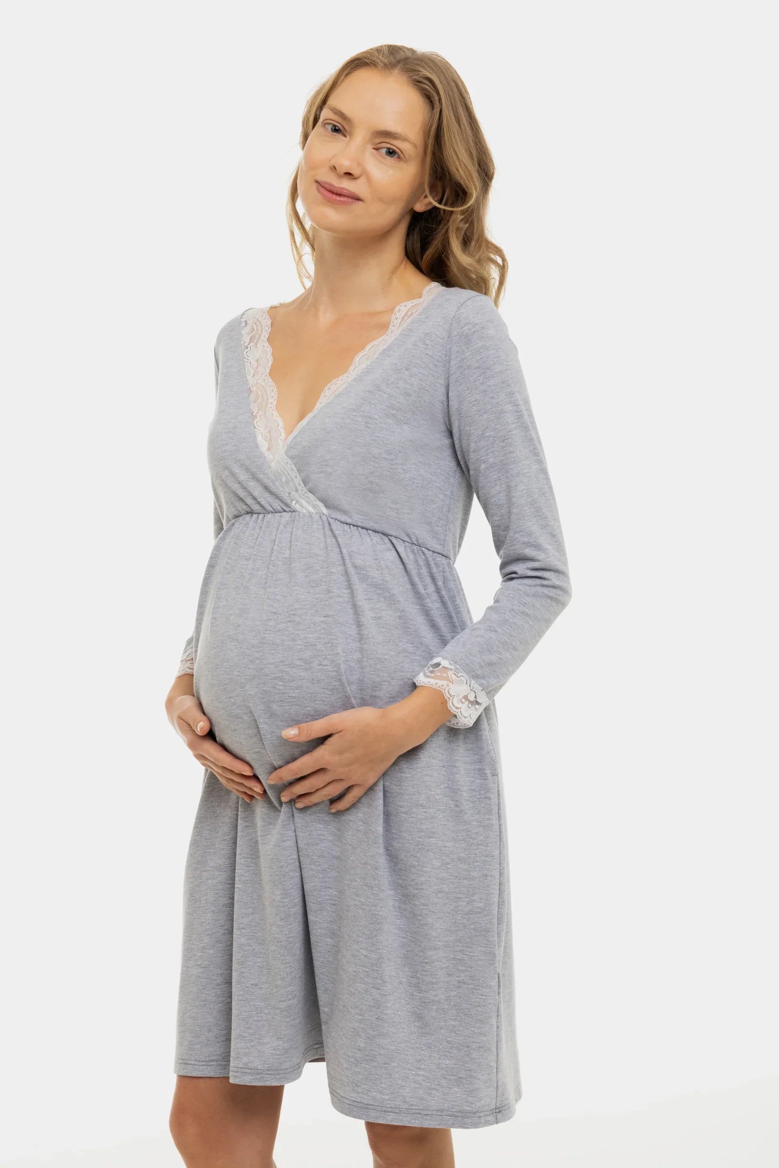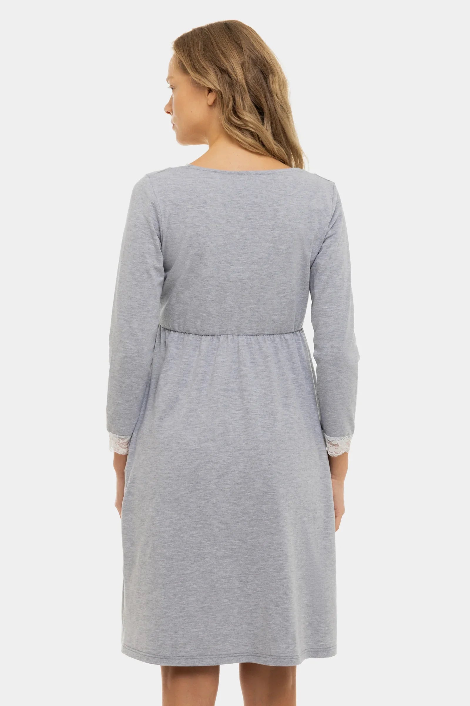 - Koszula nocna ciążowa i do karmienia z miękkiego bawełnianego dresu w kolorze szaro-melanżowym