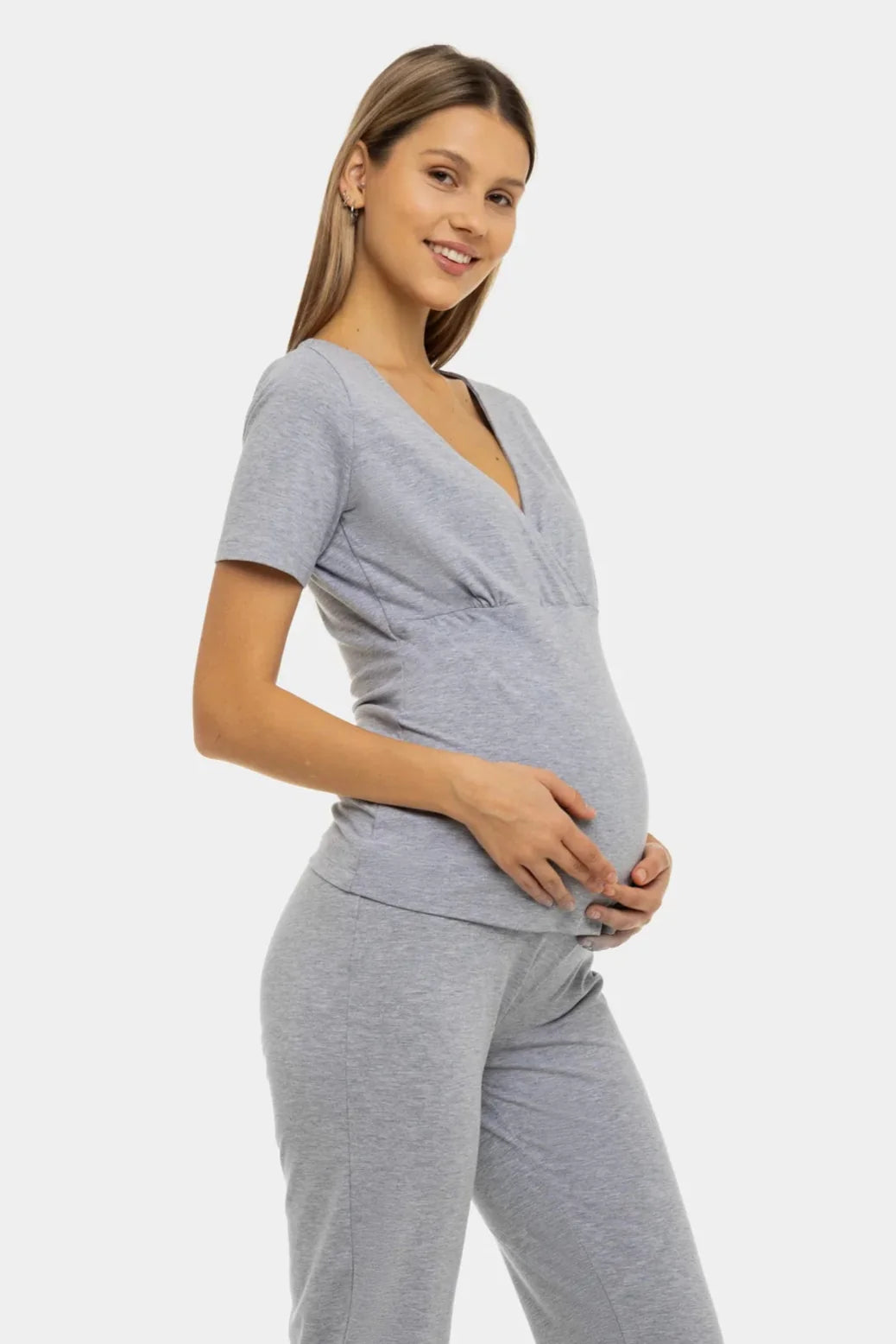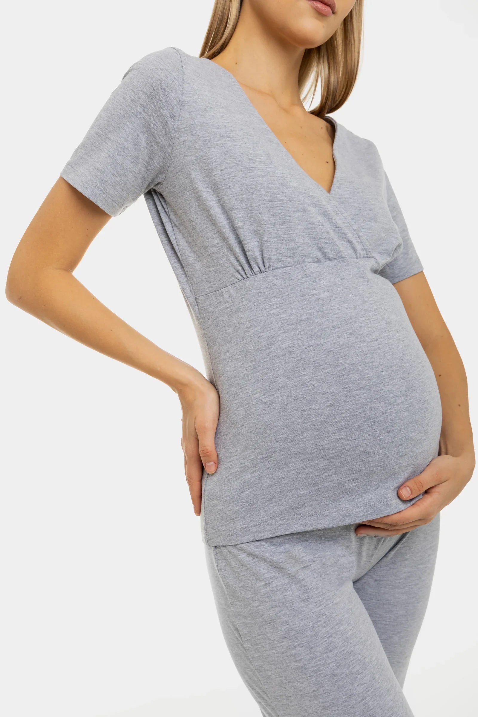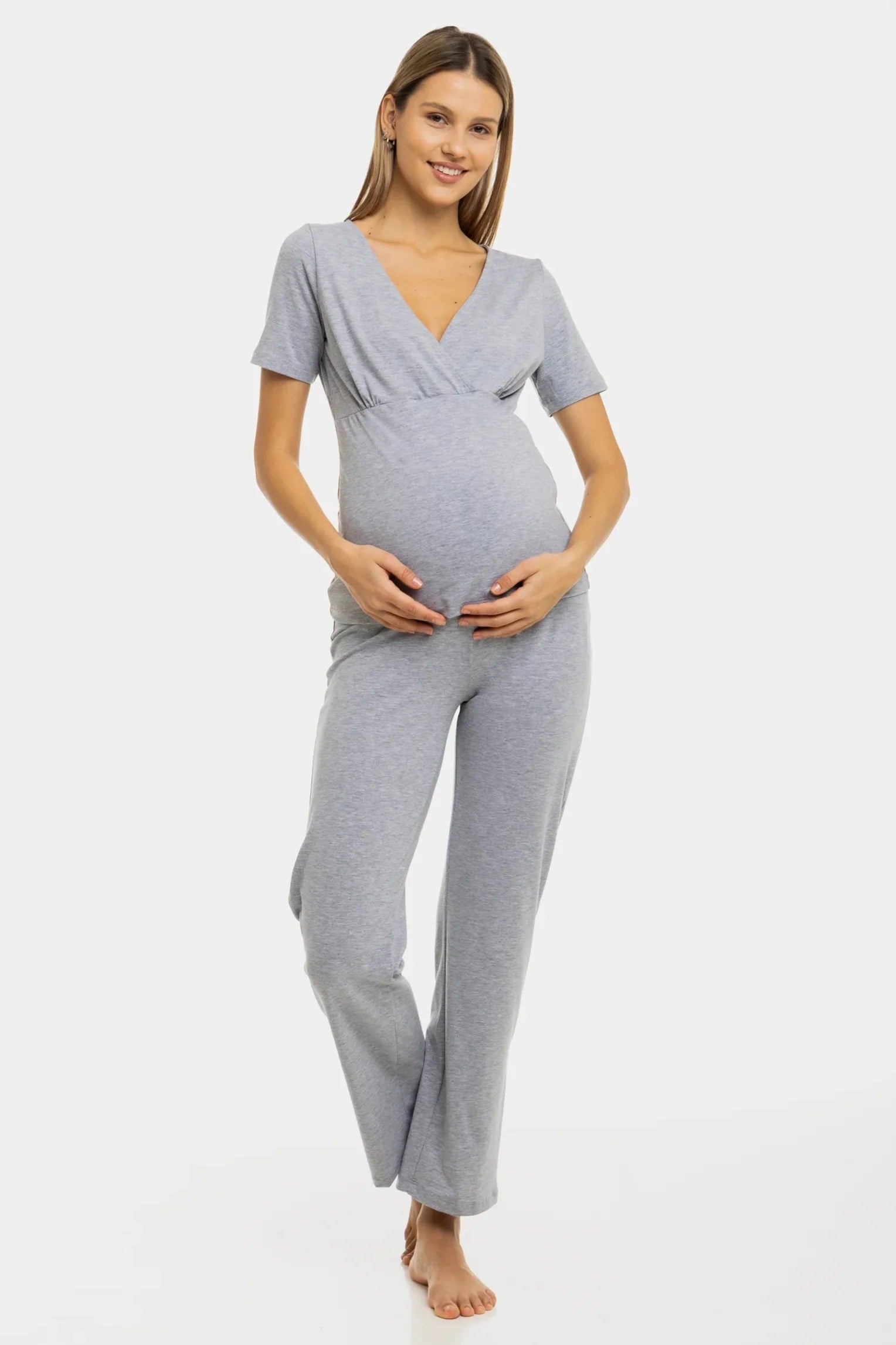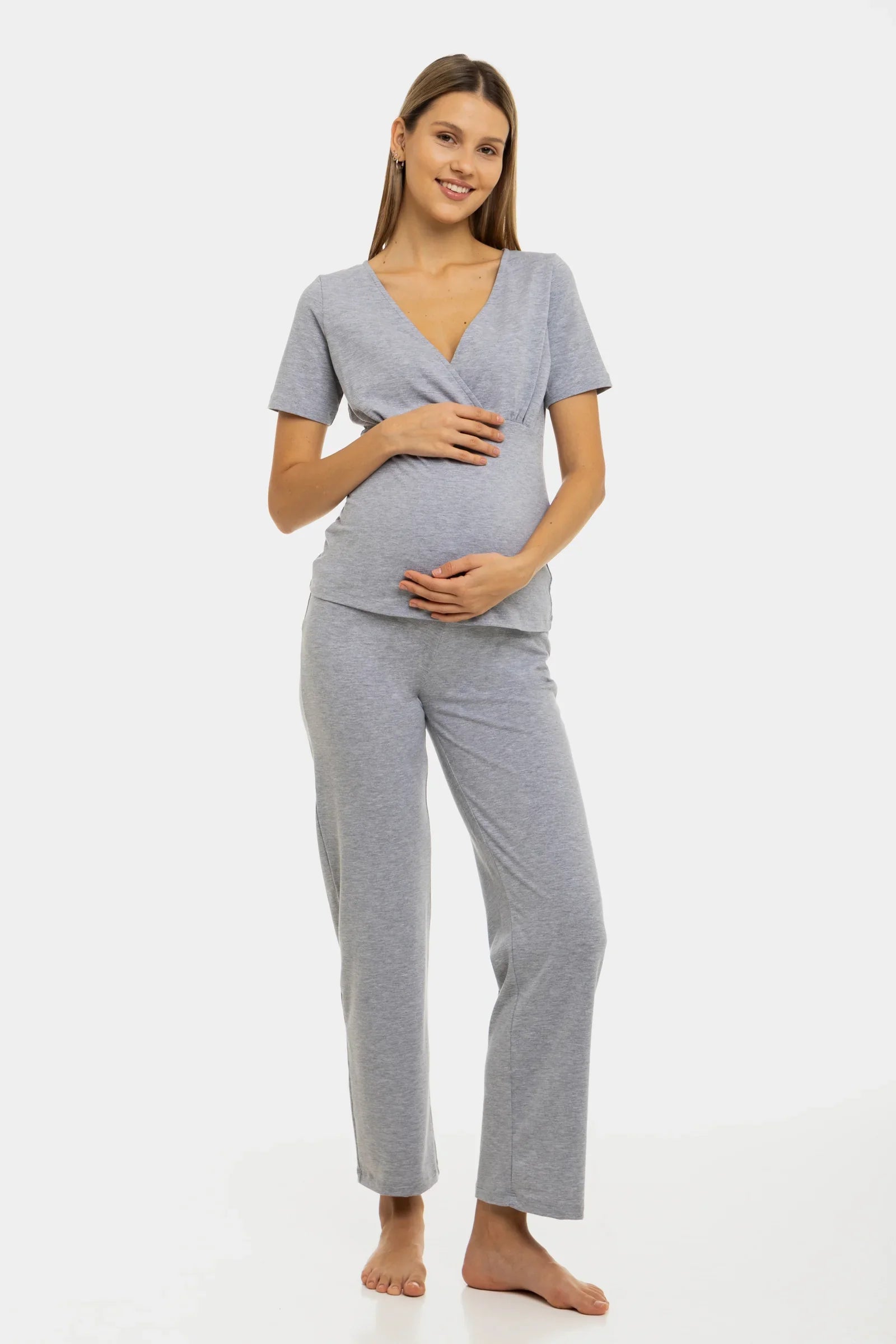 Bawełniana piżama ciążowa i do karmienia w jasnoszarym kolorze