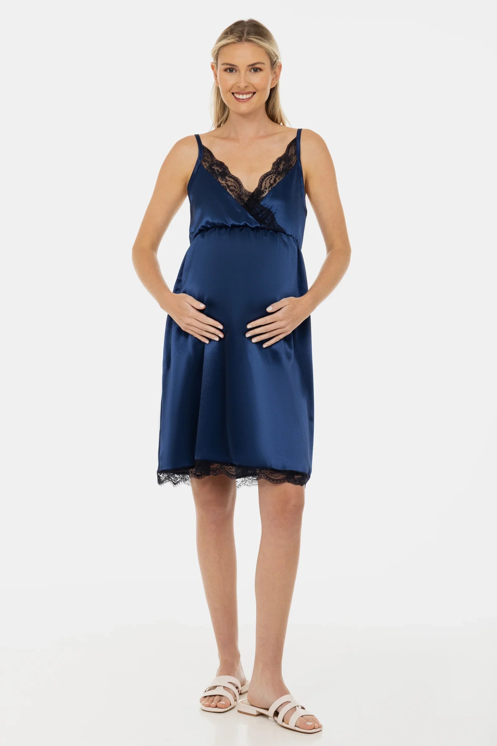 Satynowa koszula nocna ciążowa i do karmienia - granatowa
