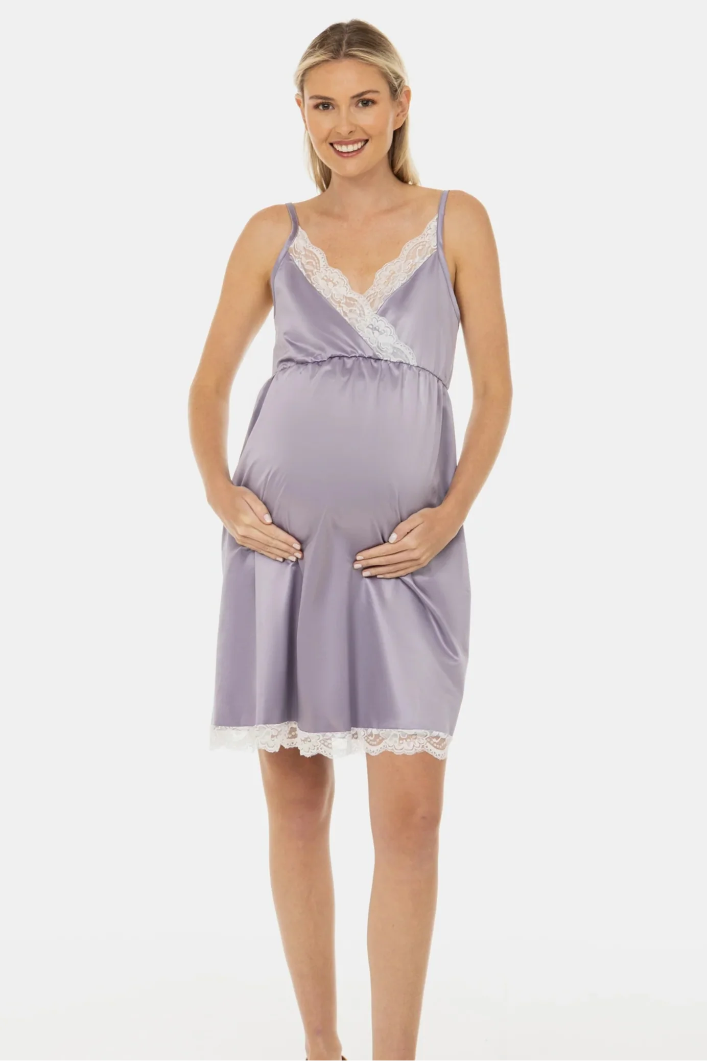 Satynowa koszula nocna ciążowa i do karmienia – liliowa
