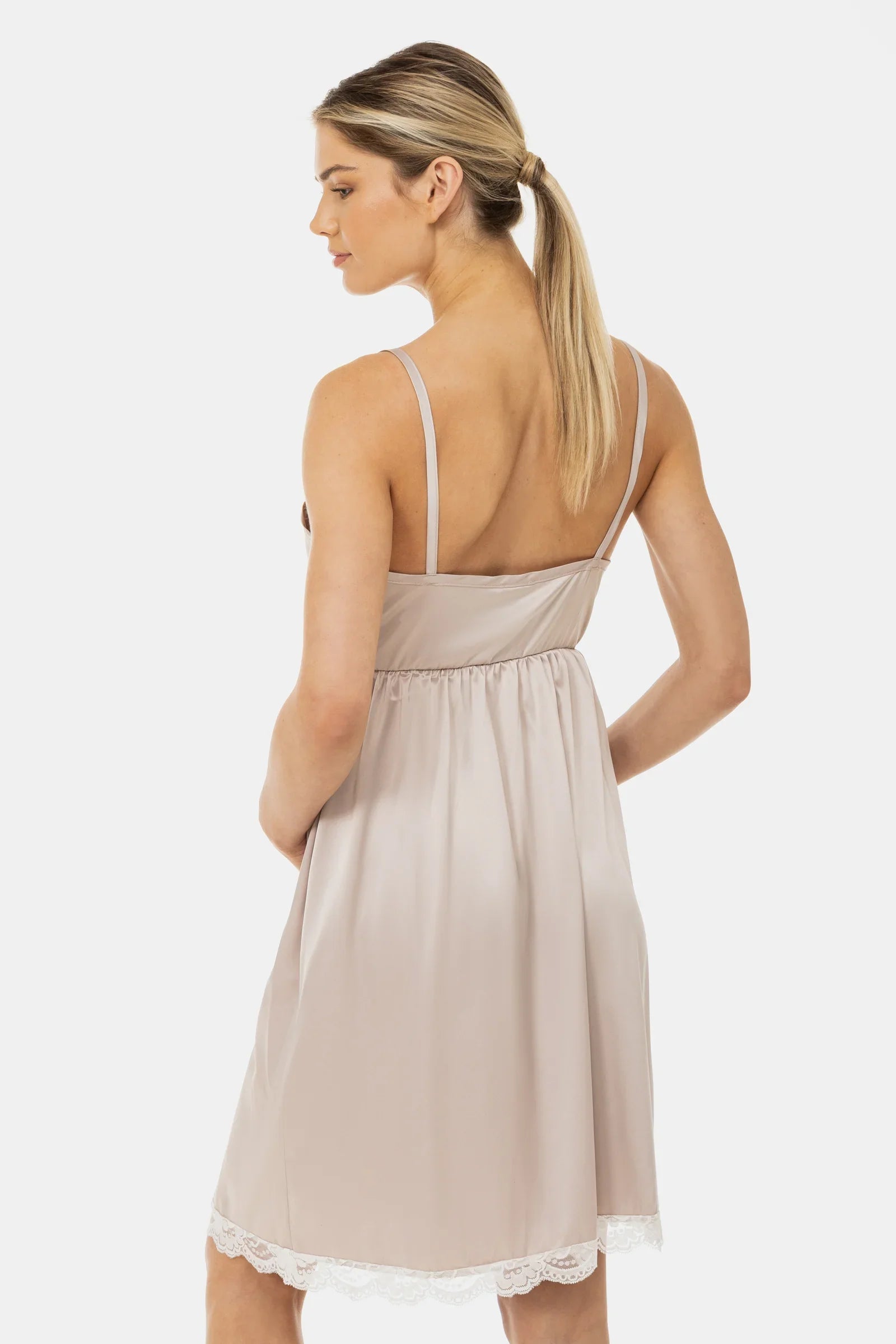 Satynowa koszula nocna ciążowa i do karmienia z koronką
