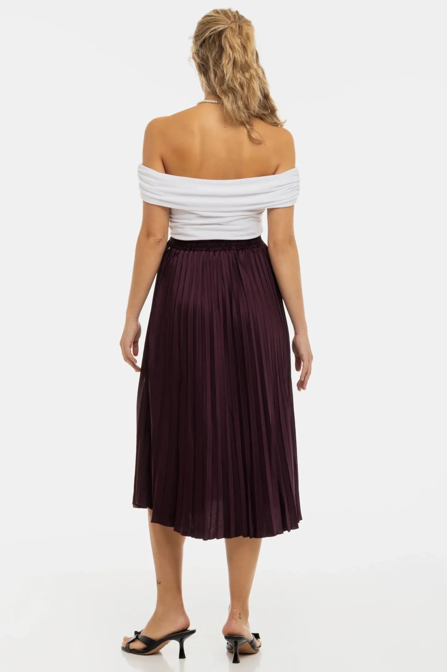 - Spódnica z połyskującej satyny w kolorze bordowym