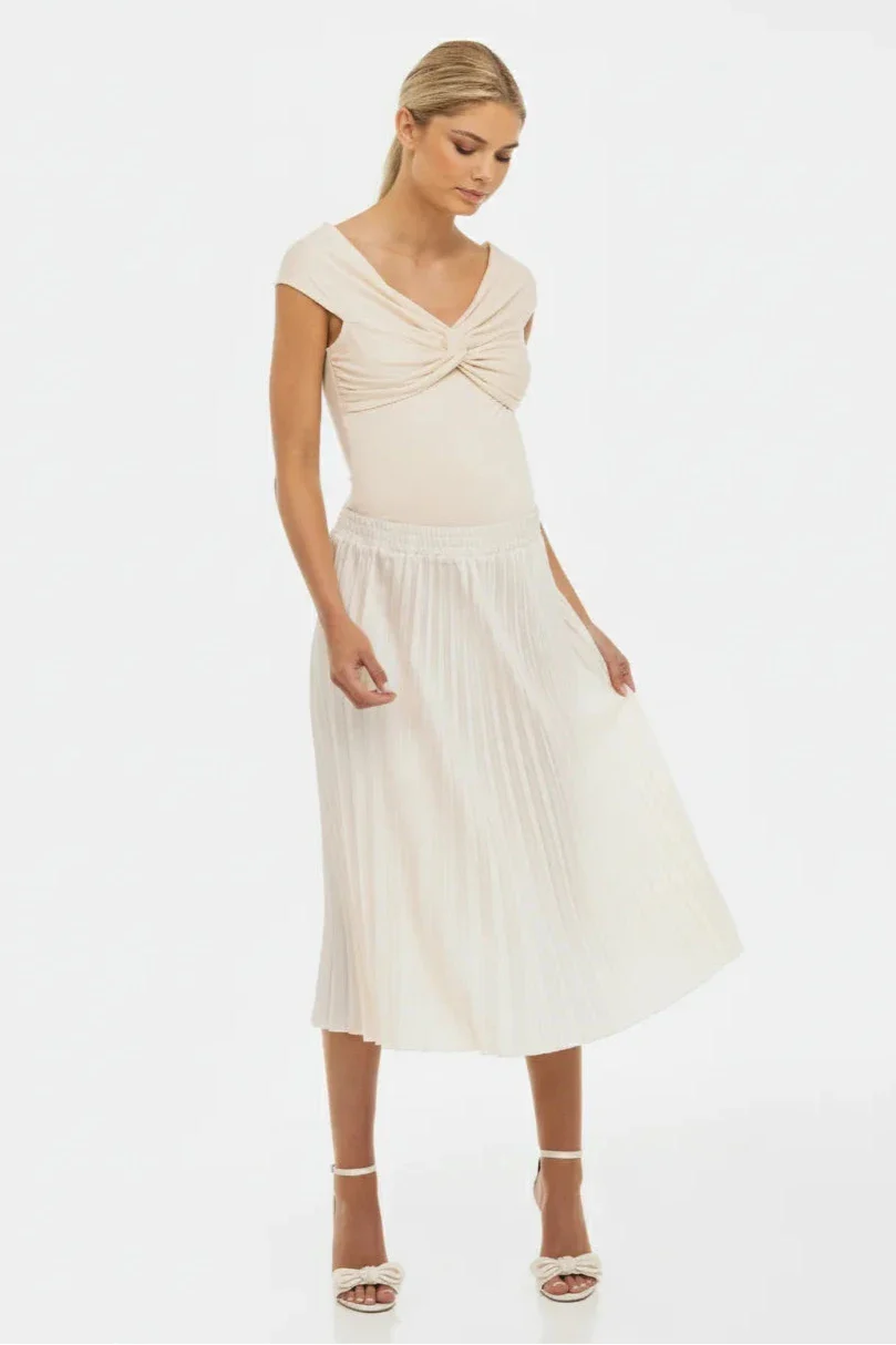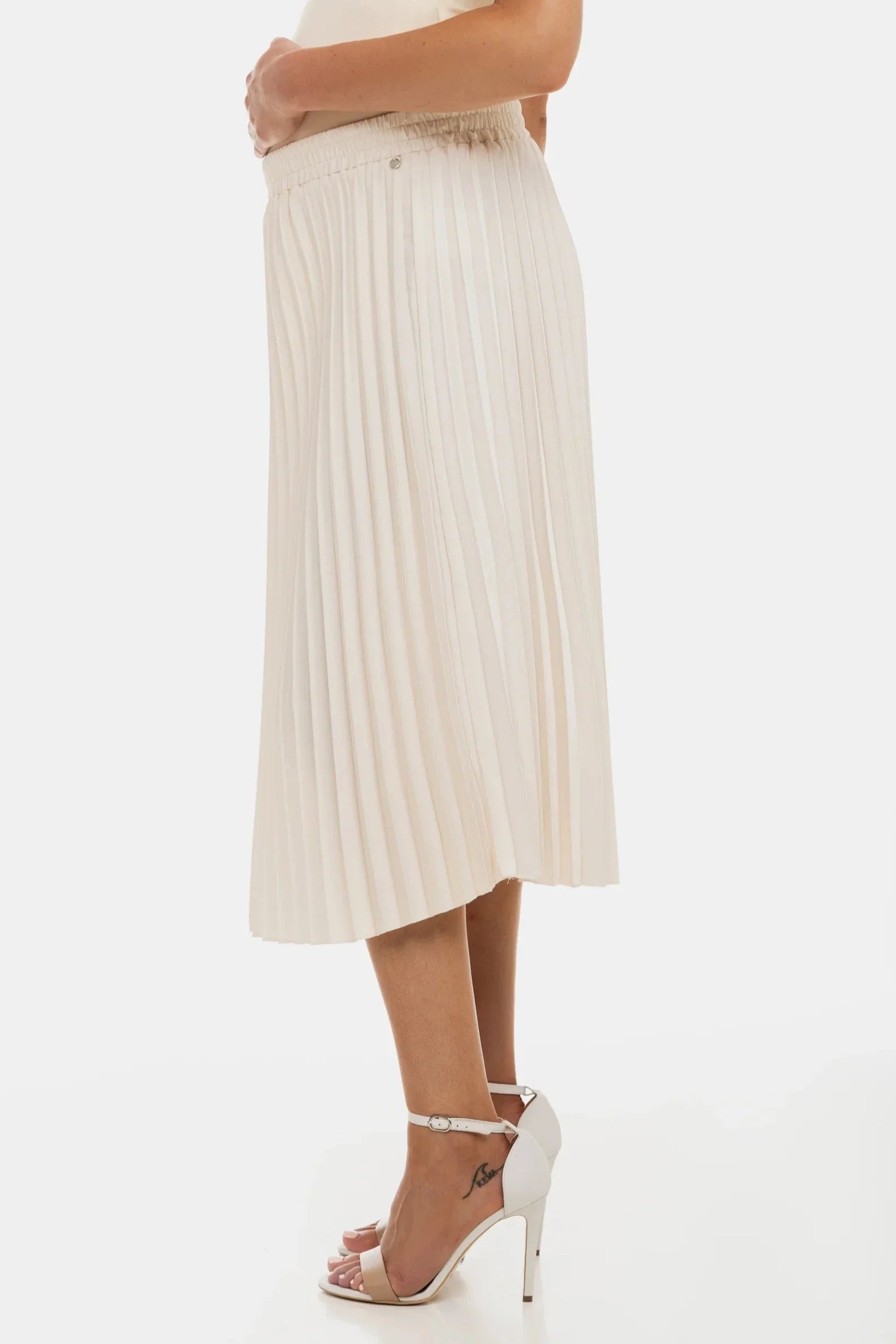 - Spódnica z połyskującej satyny w kolorze kremowym