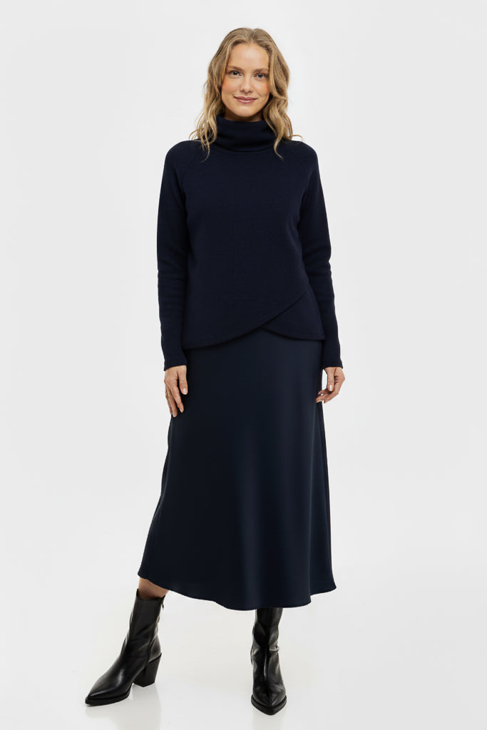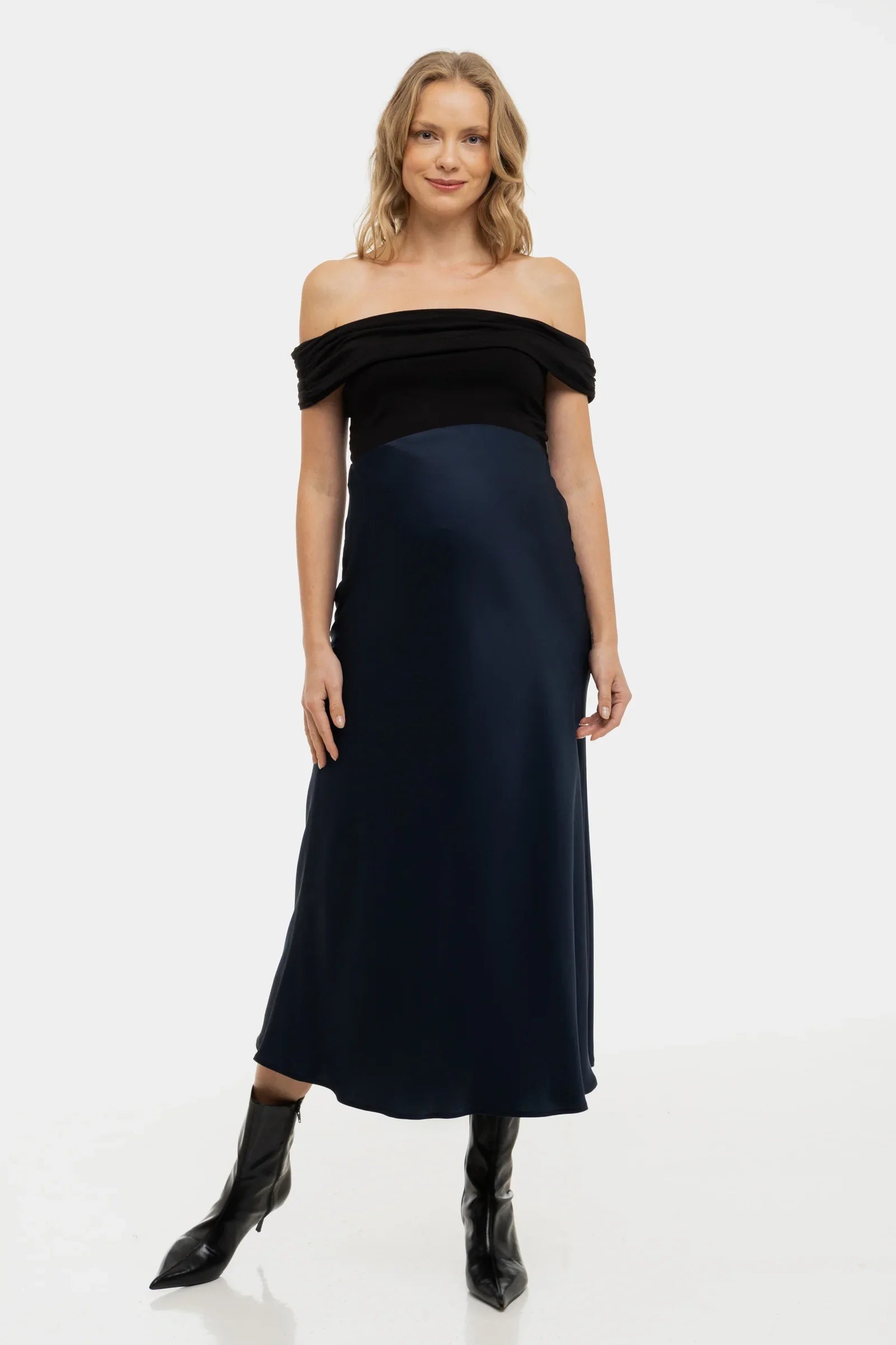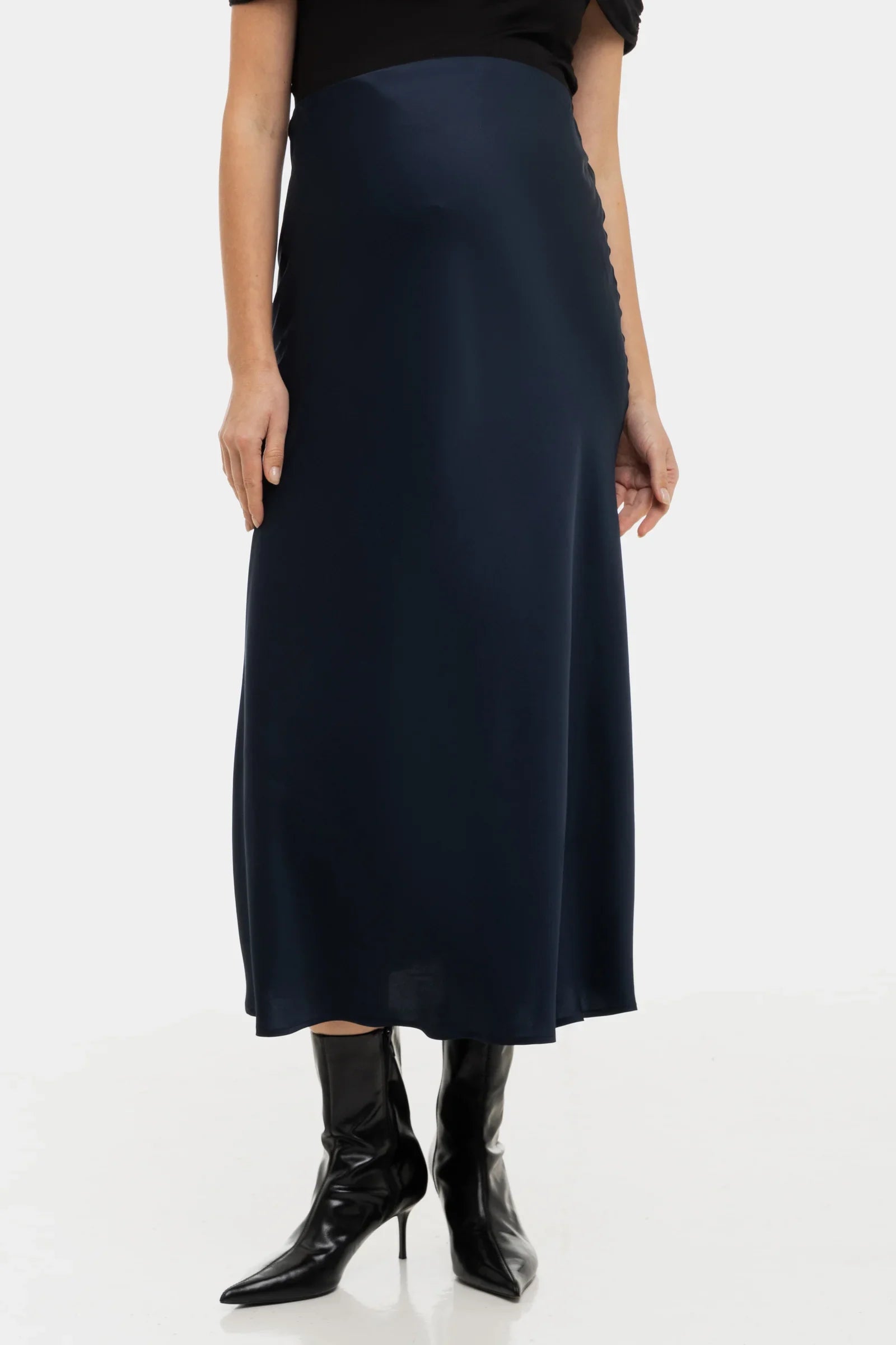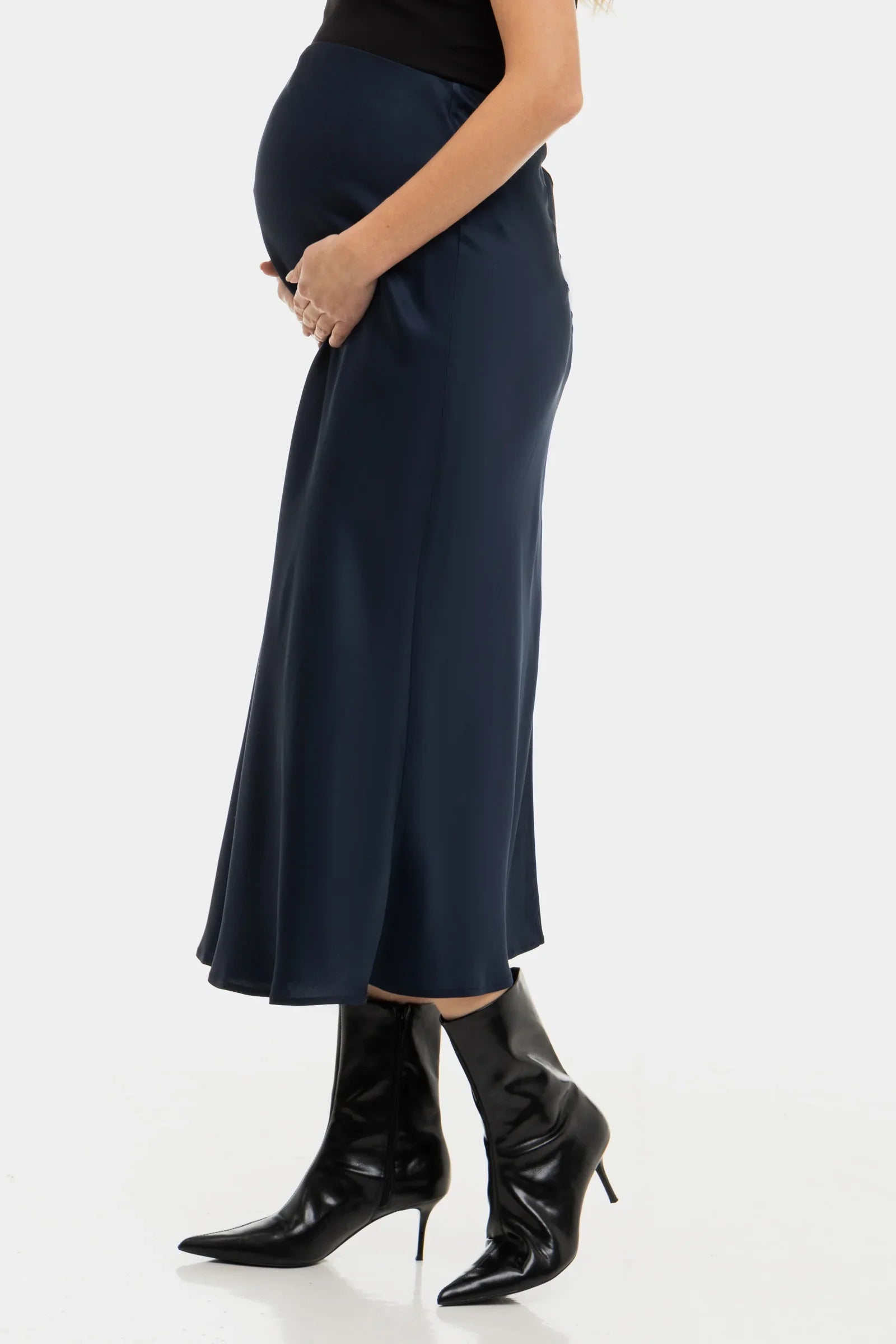 - Spódnica ciążowa z pięknie opadającego, błyszczącego satynu