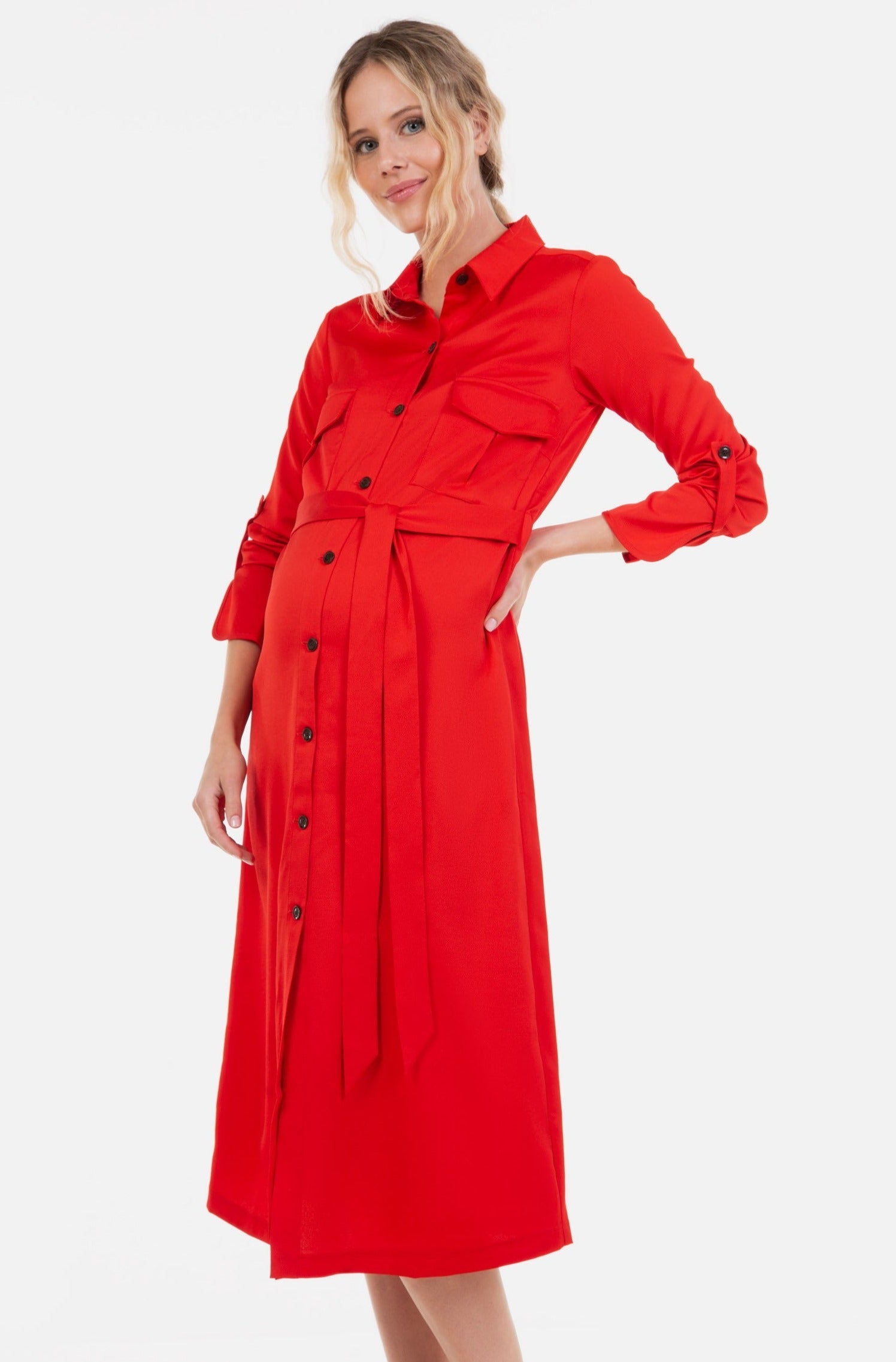 Długa satynowa sukienka ciążowa i do karmienia - cherwona