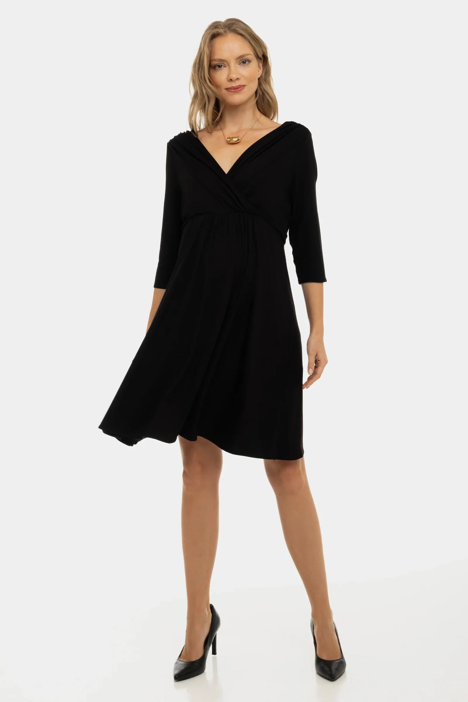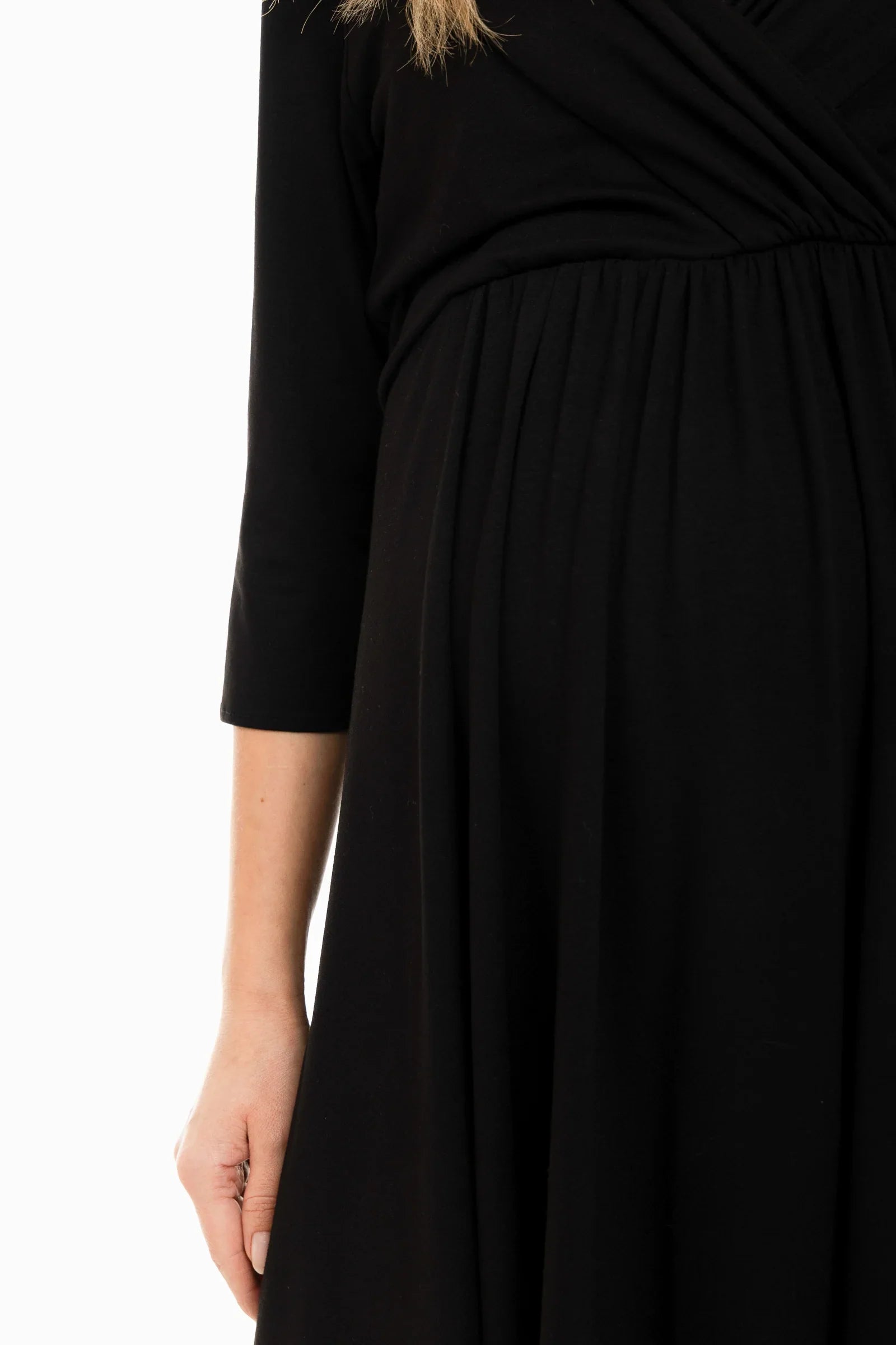- Sukienka ciążowa z eleganckiego, zwiewnego materiału w kolorze czarnym