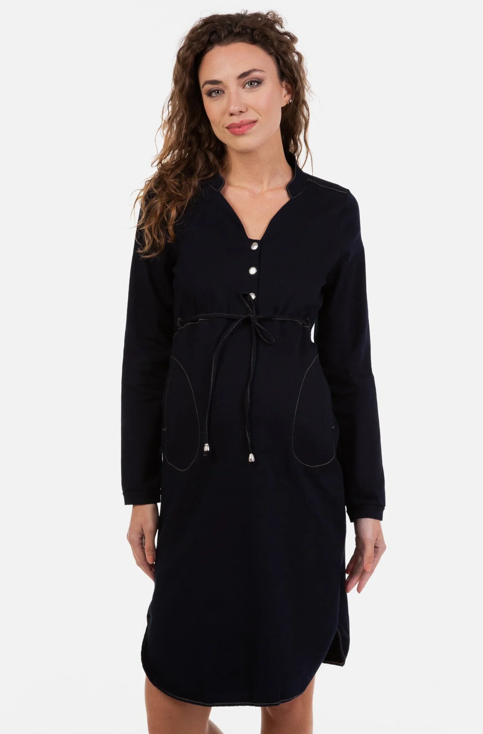 - Sukienka ciążowa wykonana z elastycznego jeansu