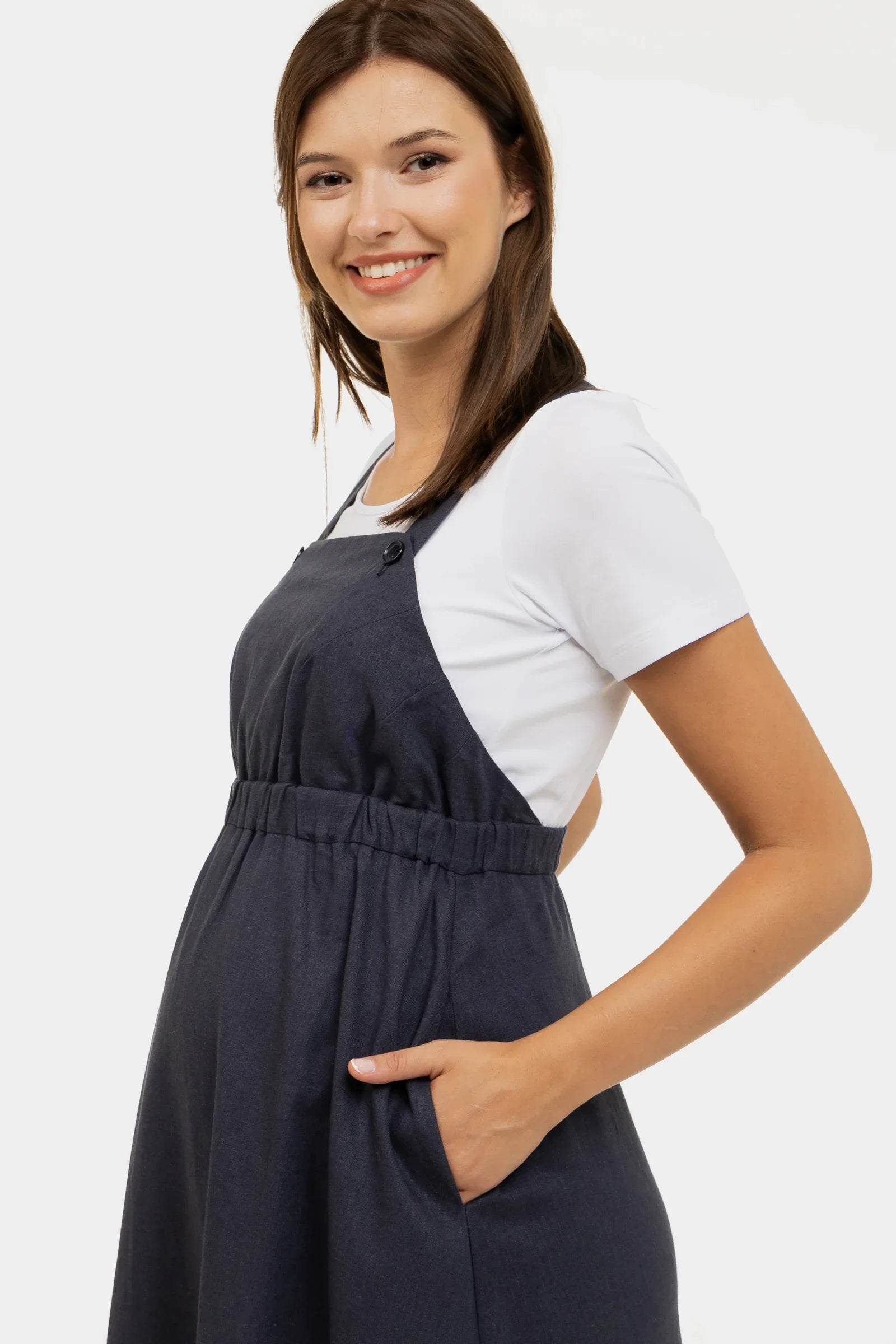 • Sukienka ciążowa na ramiączkach z przewiewnego lnu