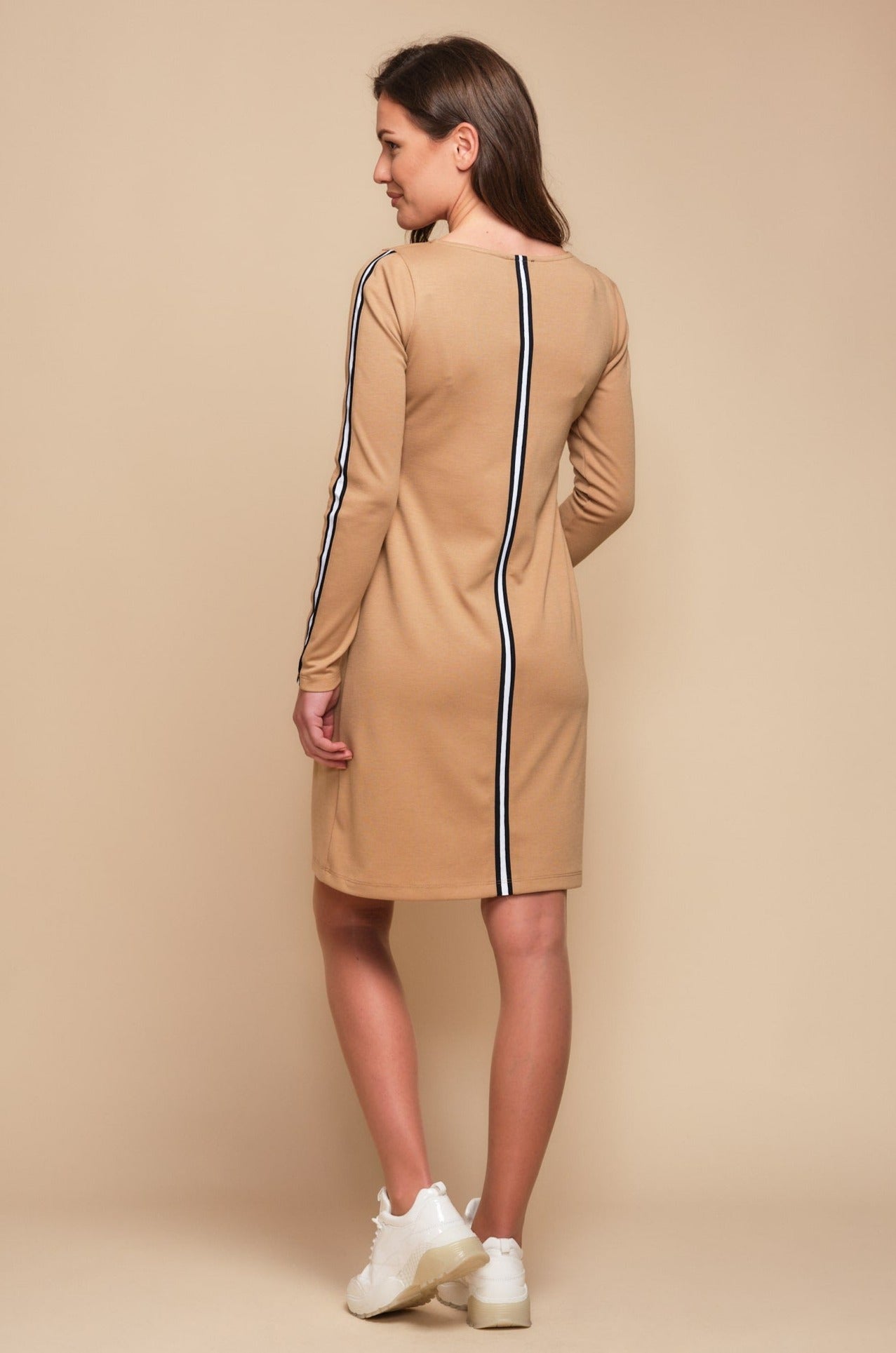 Sukienka ciążowa i do karmienia z bocznymi paskami – beżowa