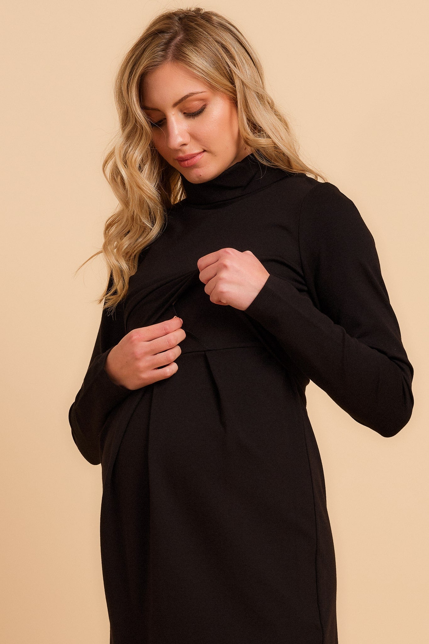 - Sukienka ciążowa wykonana z gęstej dzianiny