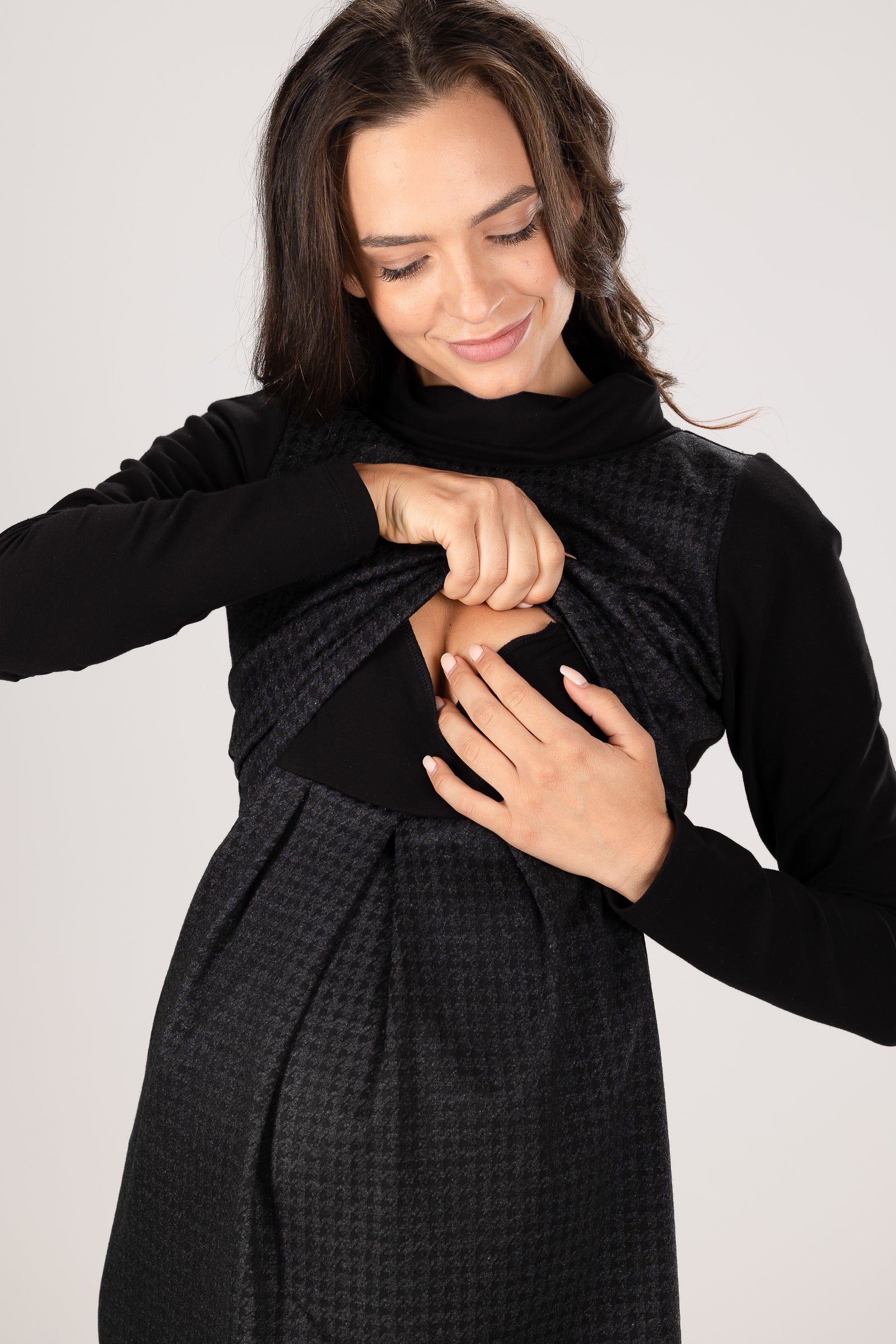 Sukienka ciążowa i do karmienia z golfem i wzorem