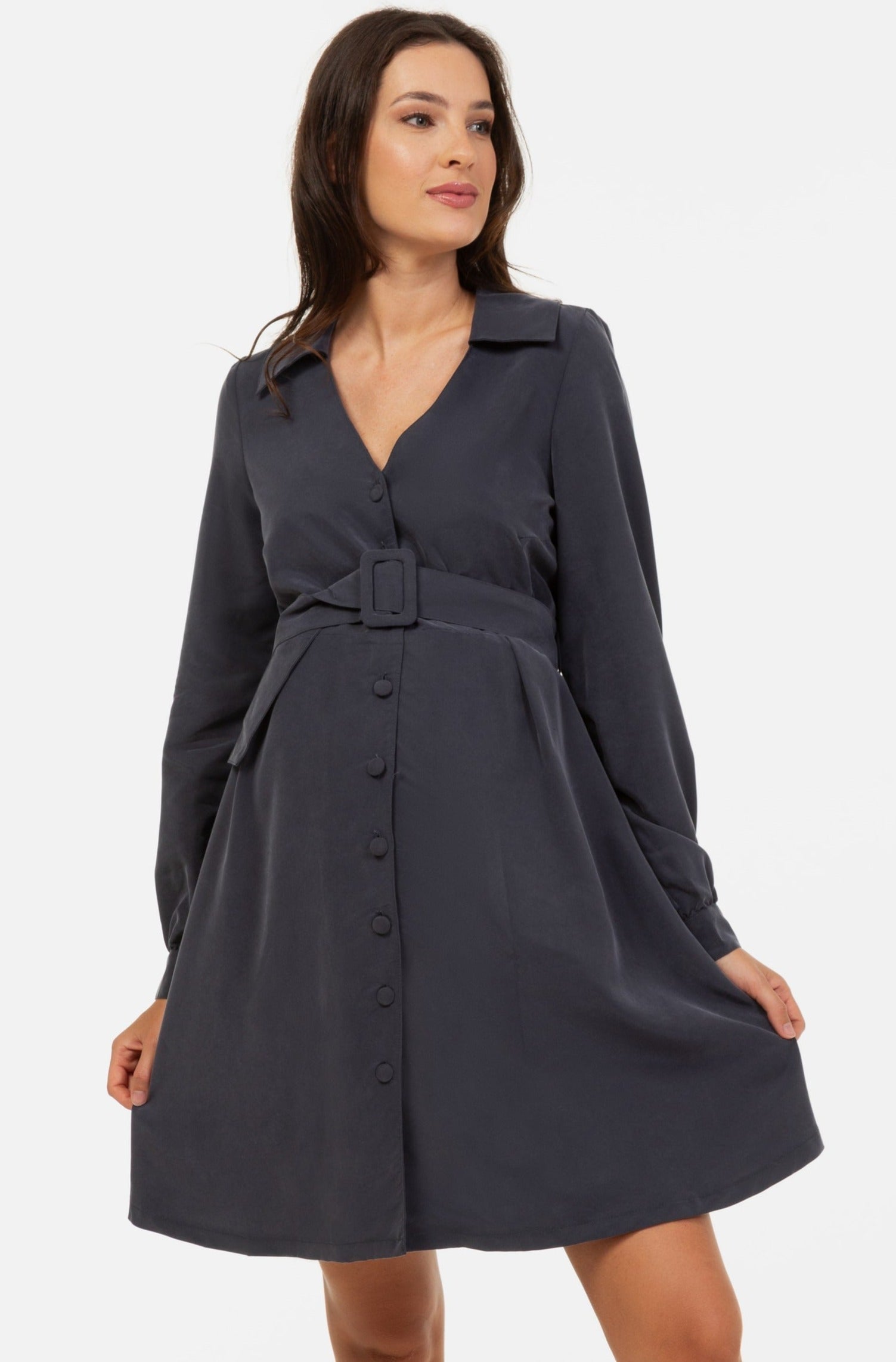 Sukienka ciążowa i do karmienia z kołnierzykiem – szara