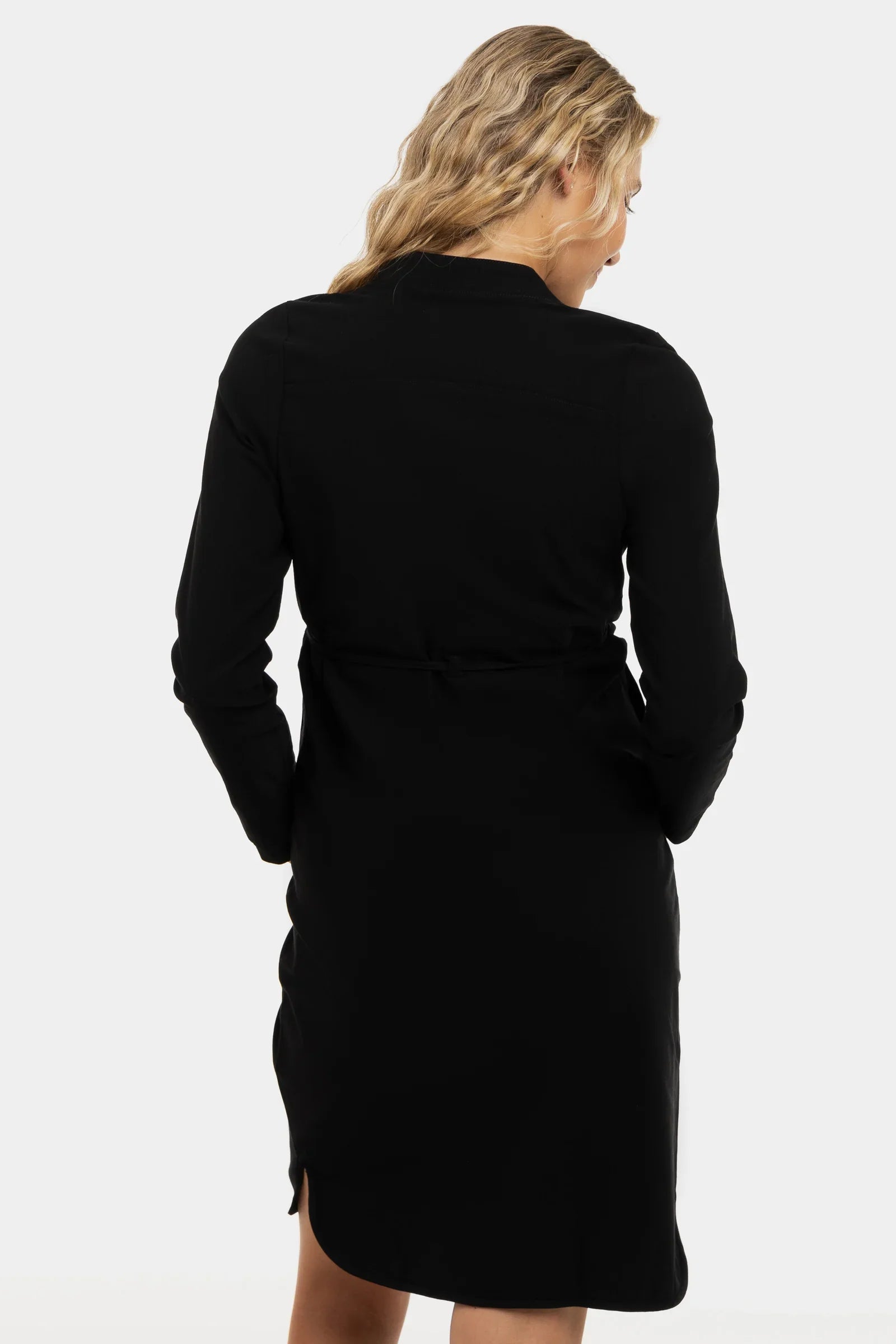 - Sukienka ciążowa wykonana z elastycznego materiału w czerni