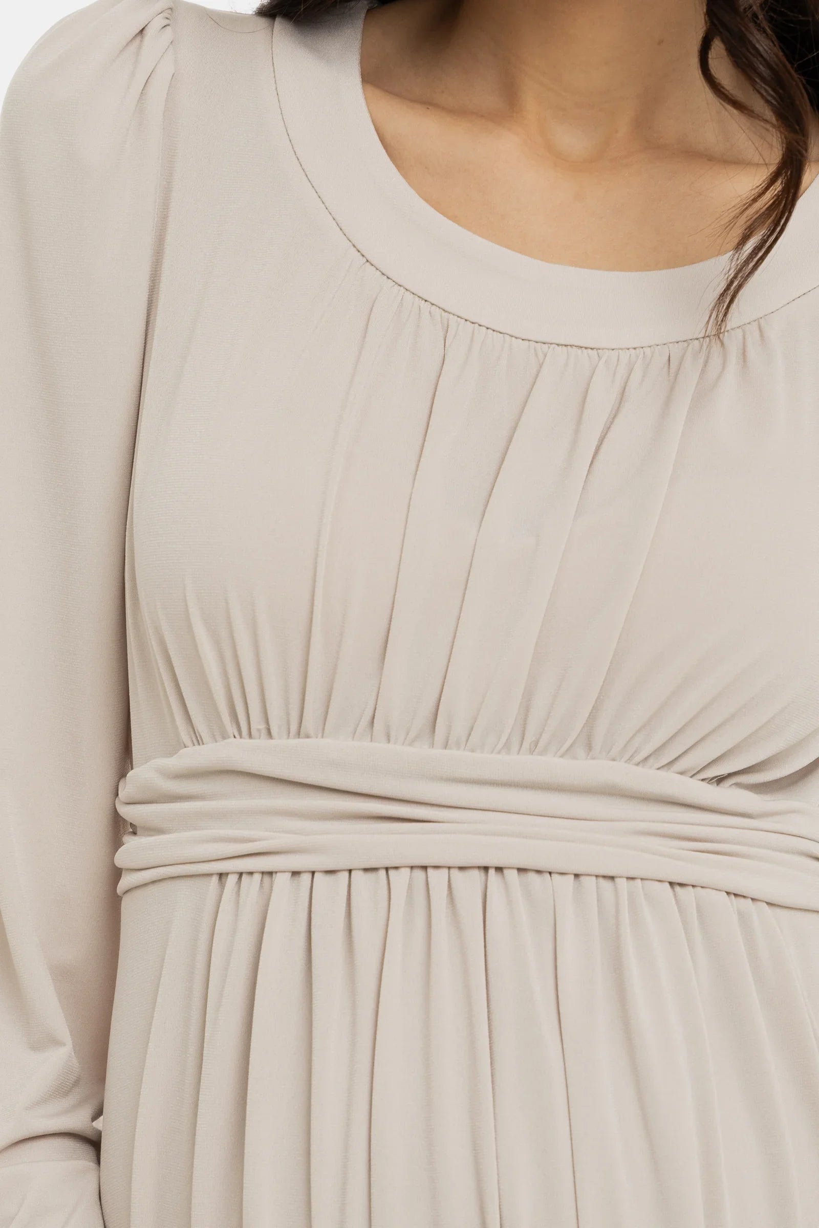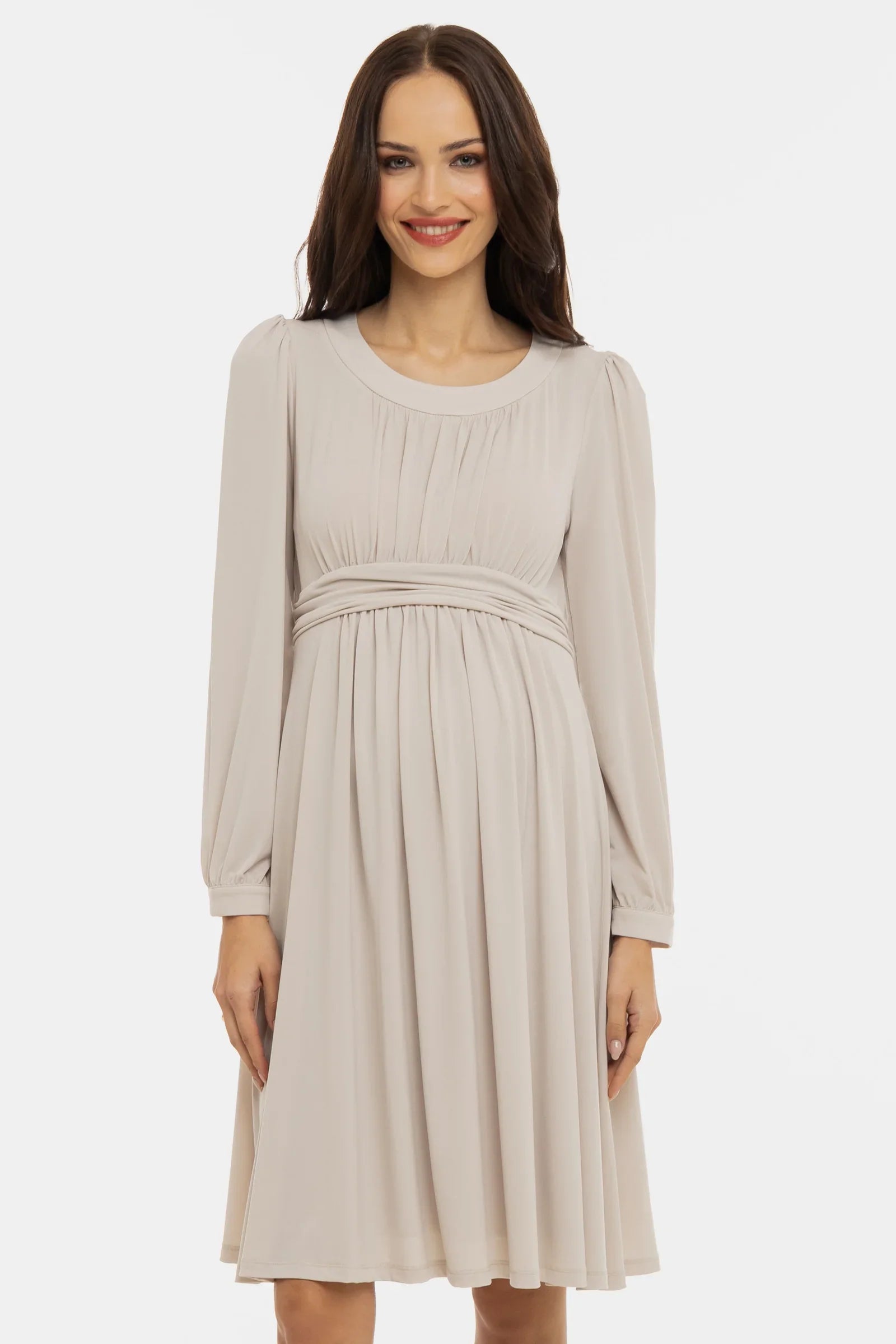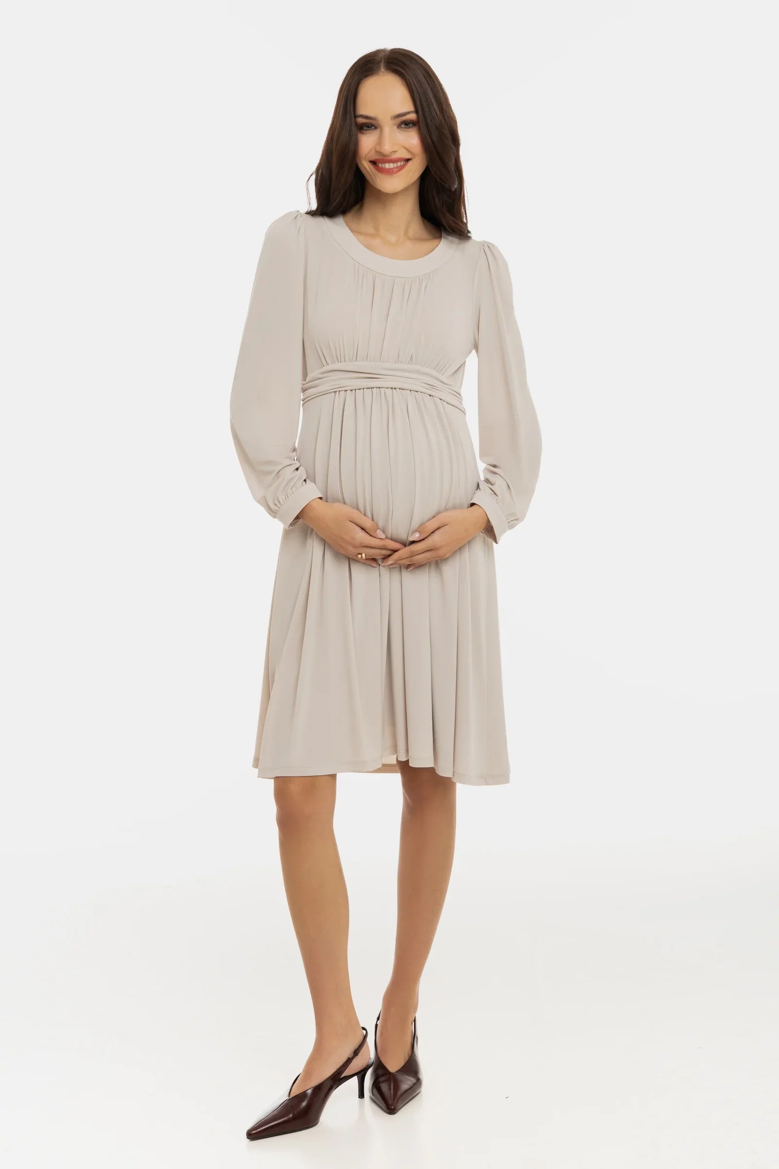 - Sukienka ciążowa z elastycznej tkaniny w kolorze beżowym