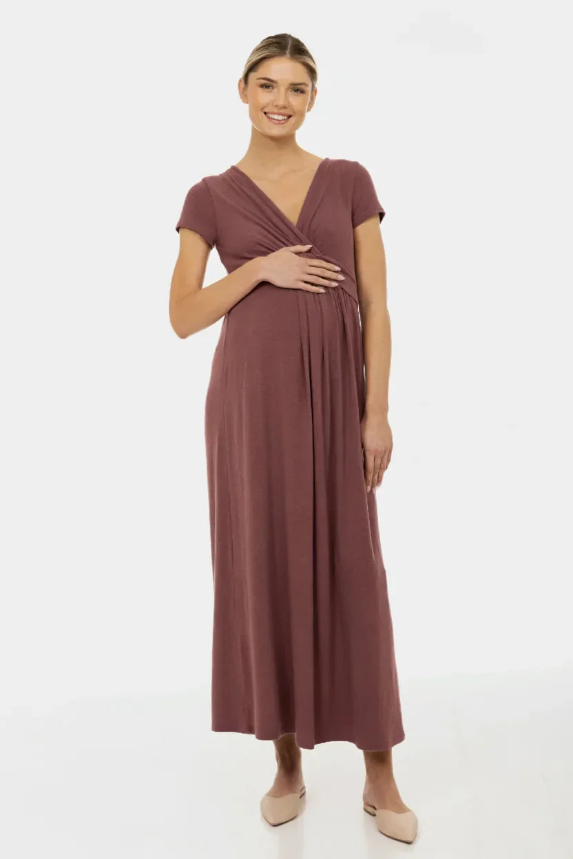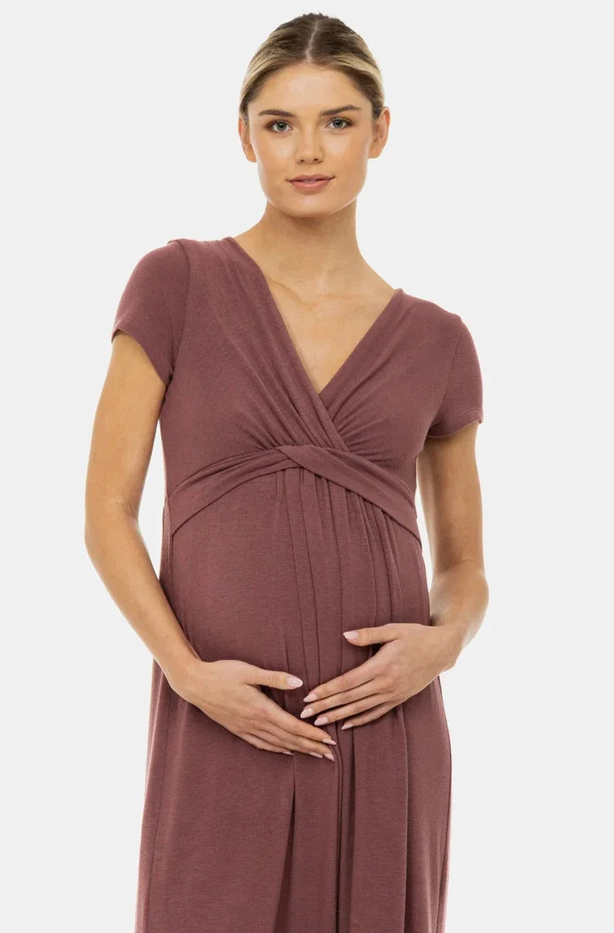 - Długa sukienka ciążowa i do karmienia z miękkiej dzianiny wiskozowej