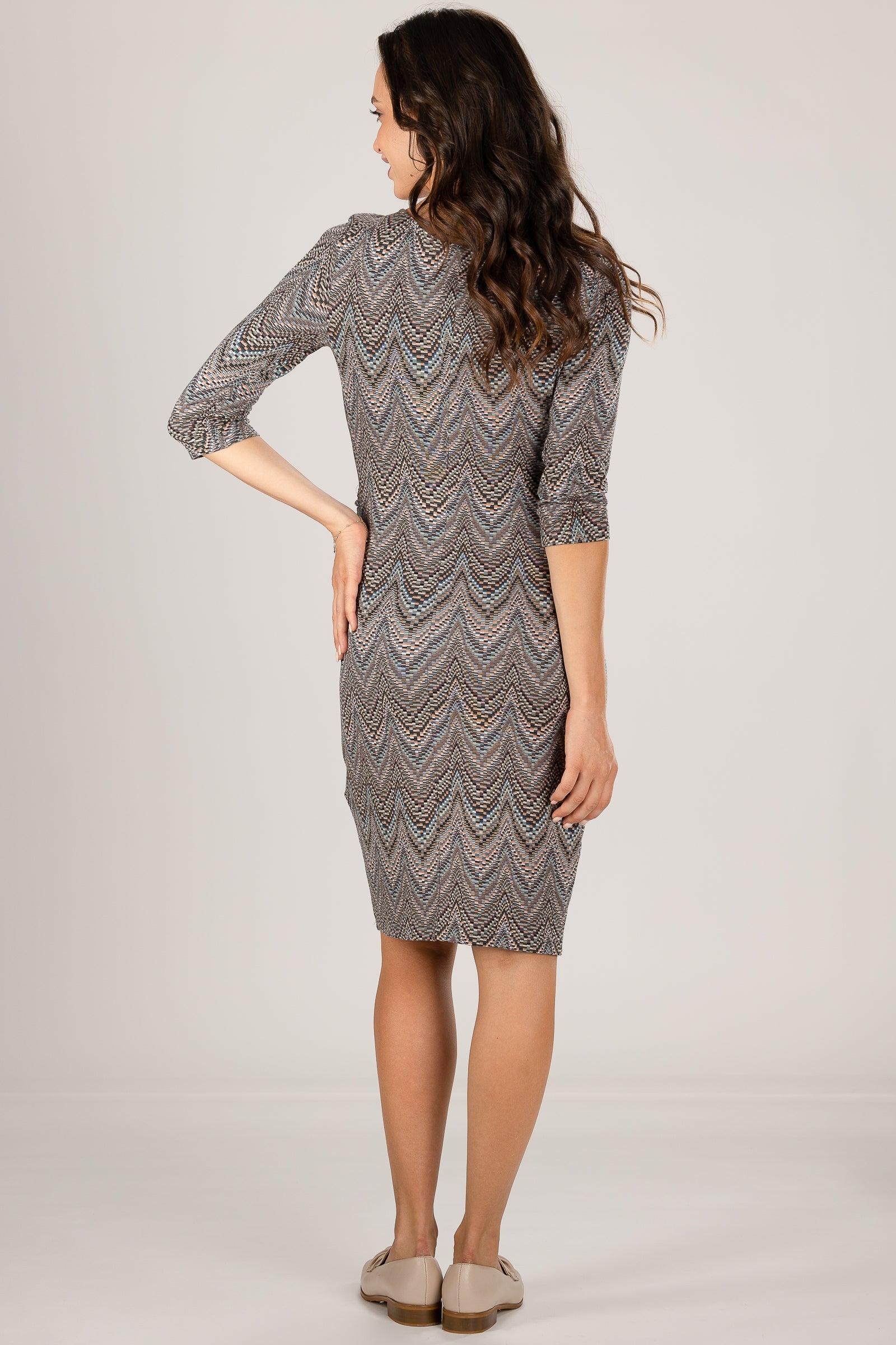 - Sukienka wykonana z elastycznej wiskozowej dzianiny we wzór