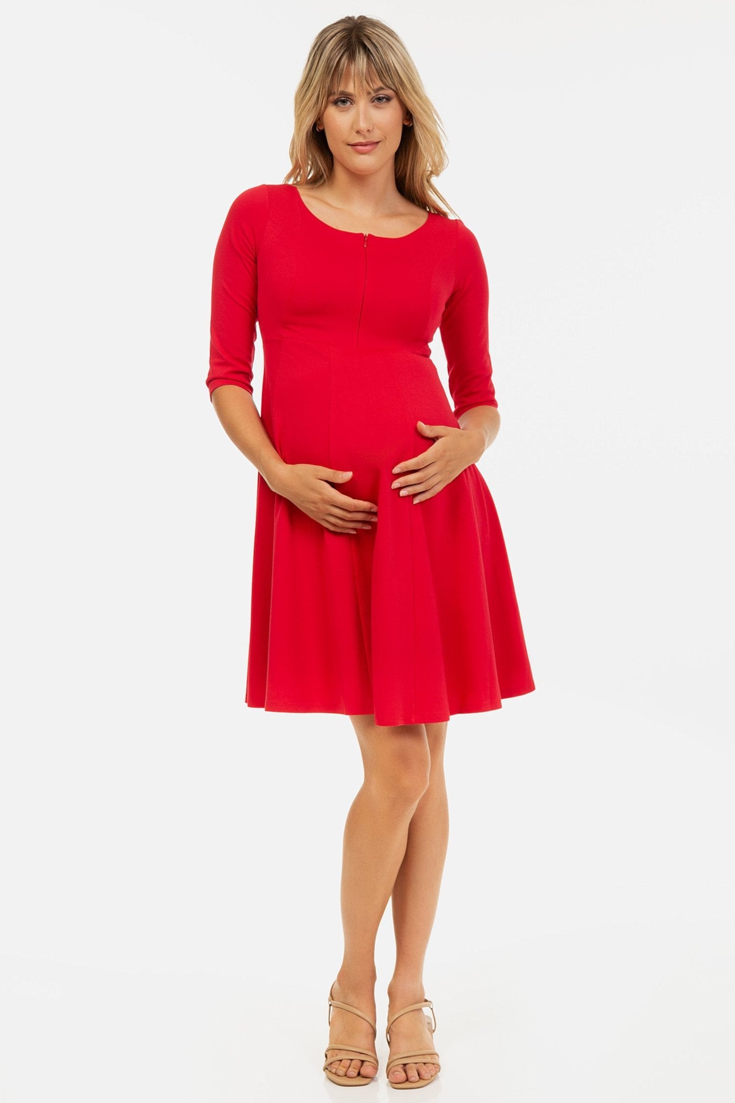 Wieczorowa sukienka ciążowa i do karmienia w czerwonym kolorze