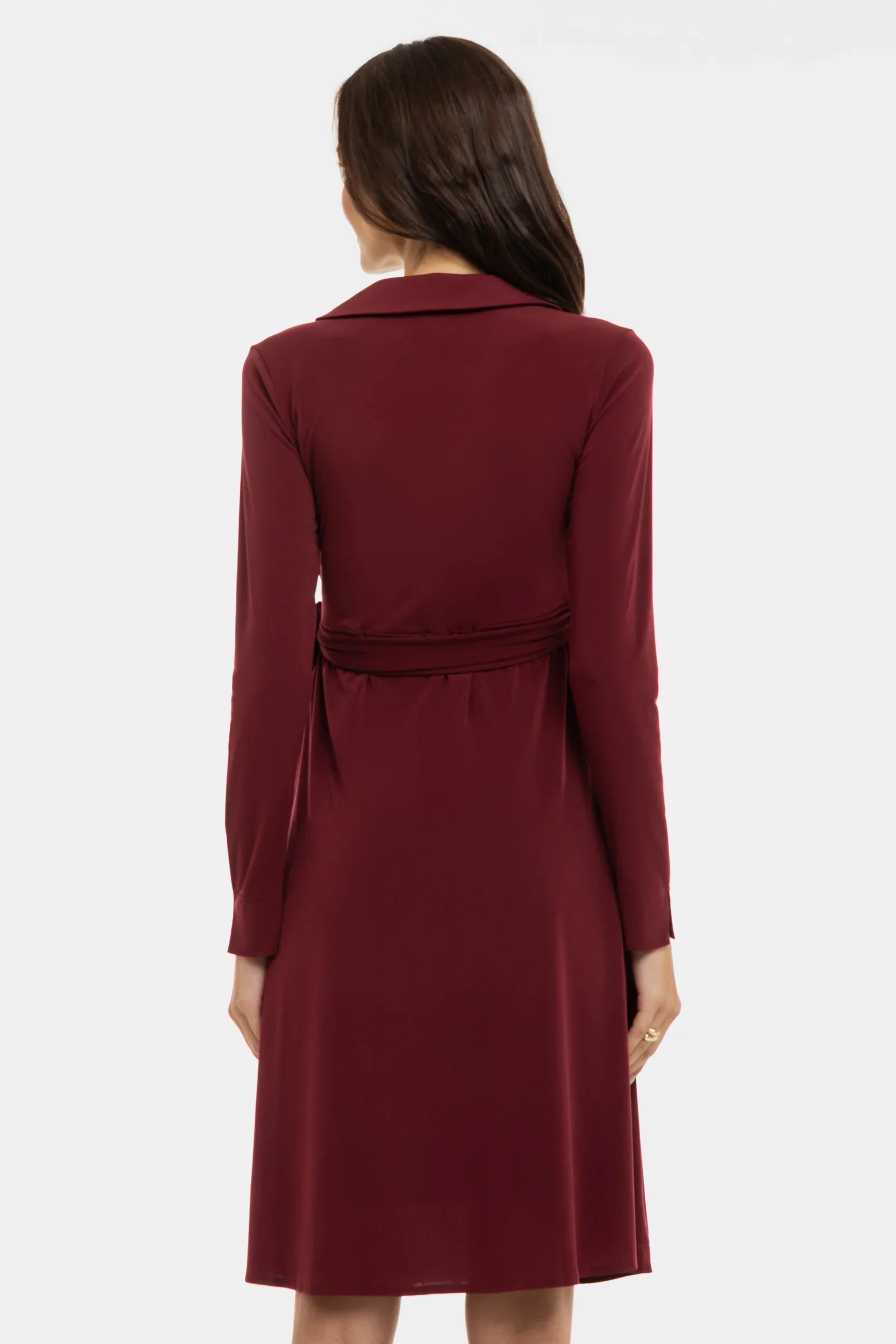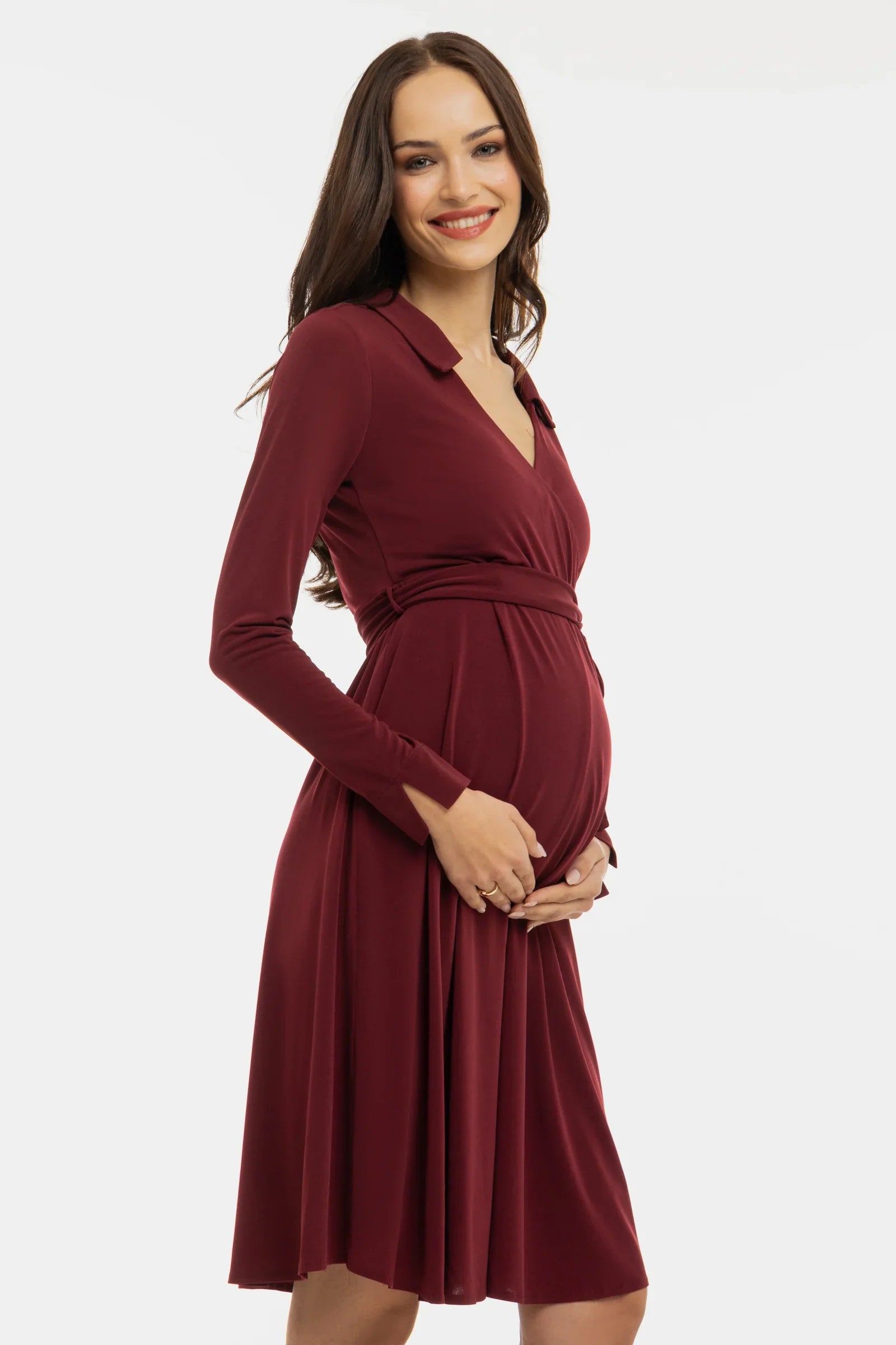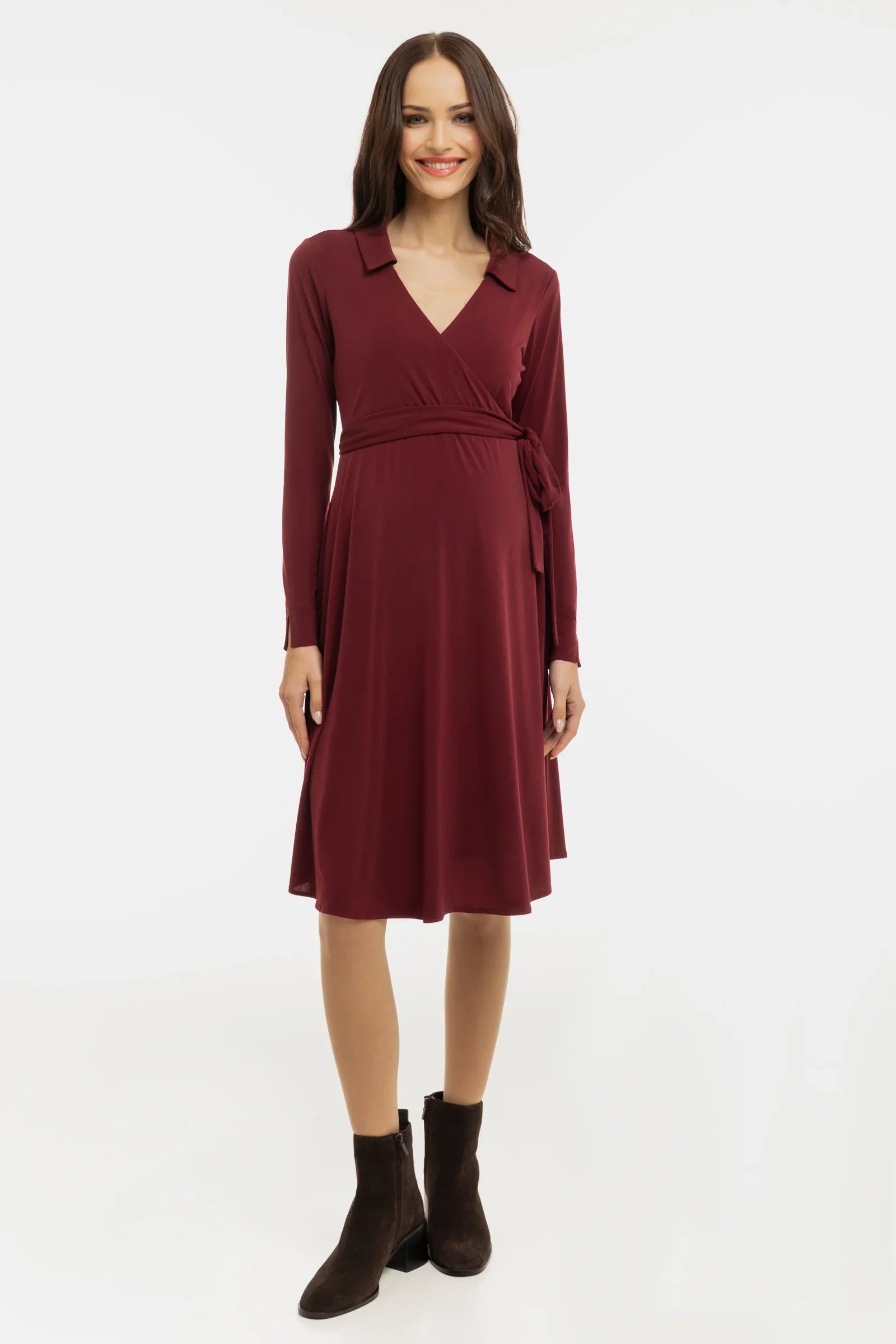 Zwiewna sukienka ciążowa i do karmienia z kopertowym przodem – bordowa