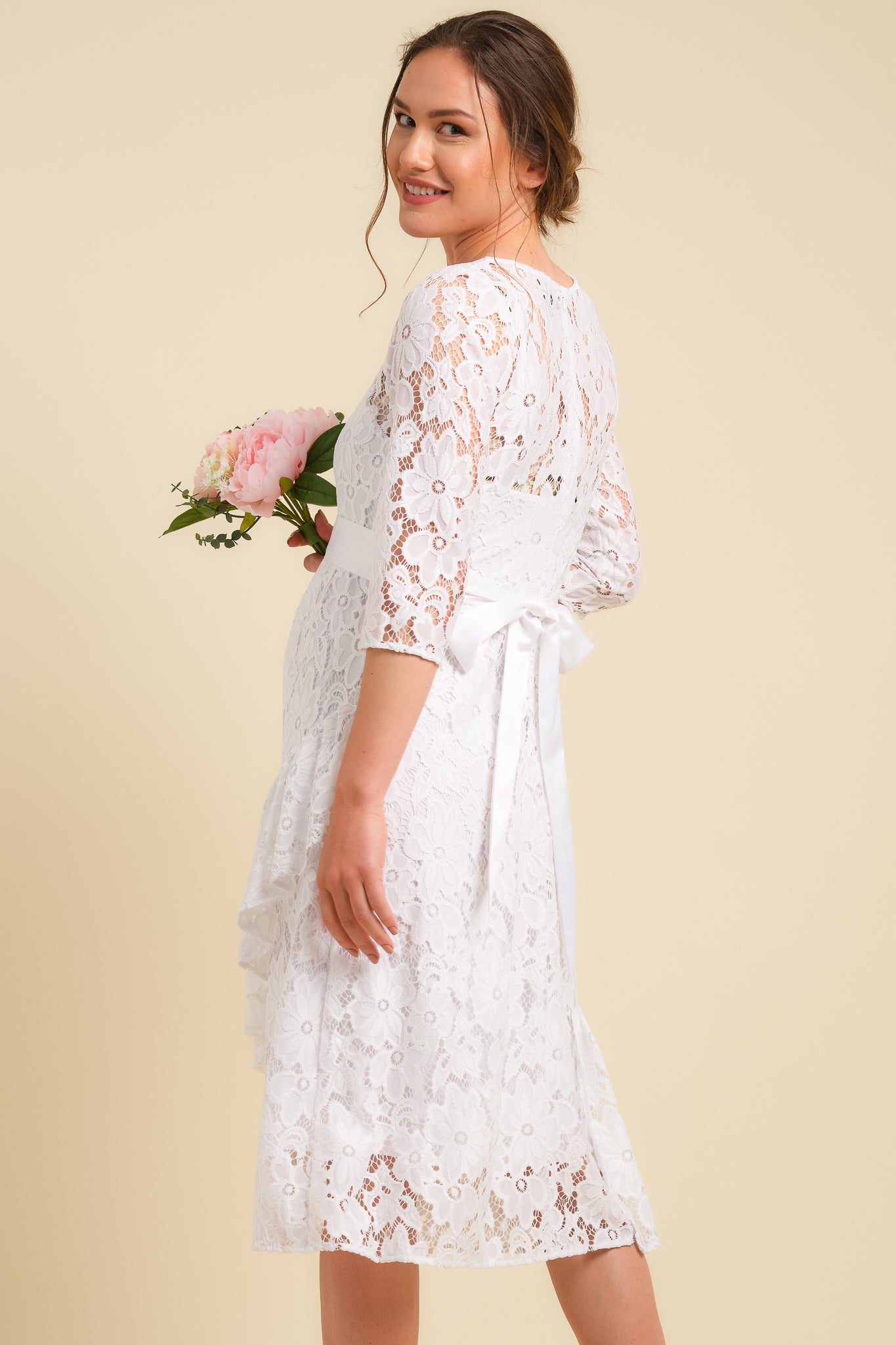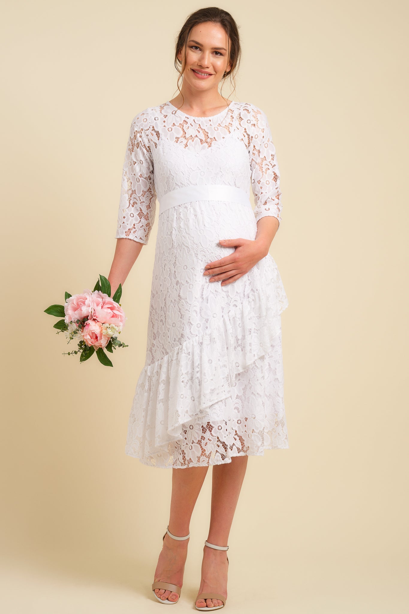 Koronkowa ślubna sukienka ciążowa