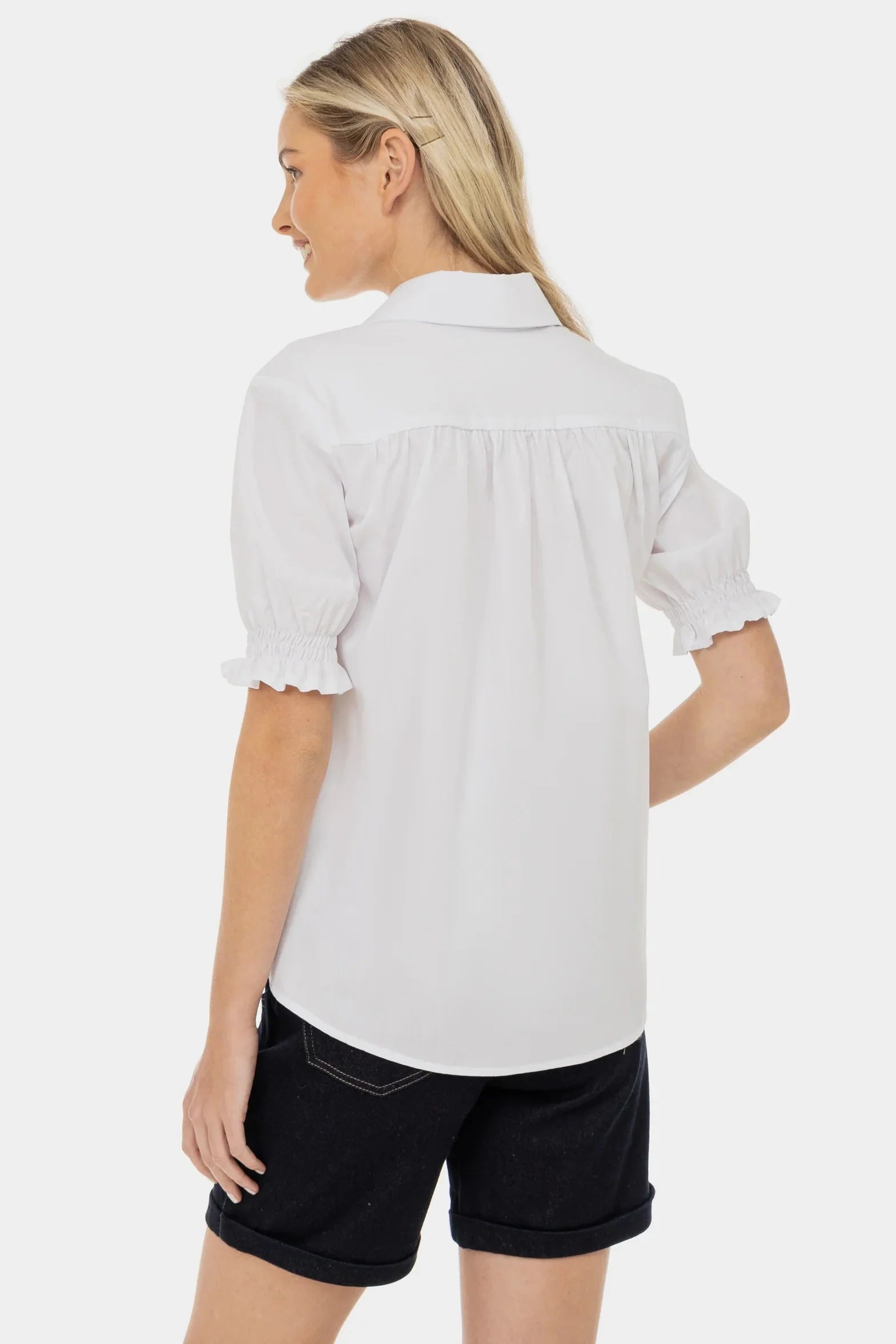 • Bufiaste rękawy z elastycznymi marszczeniami