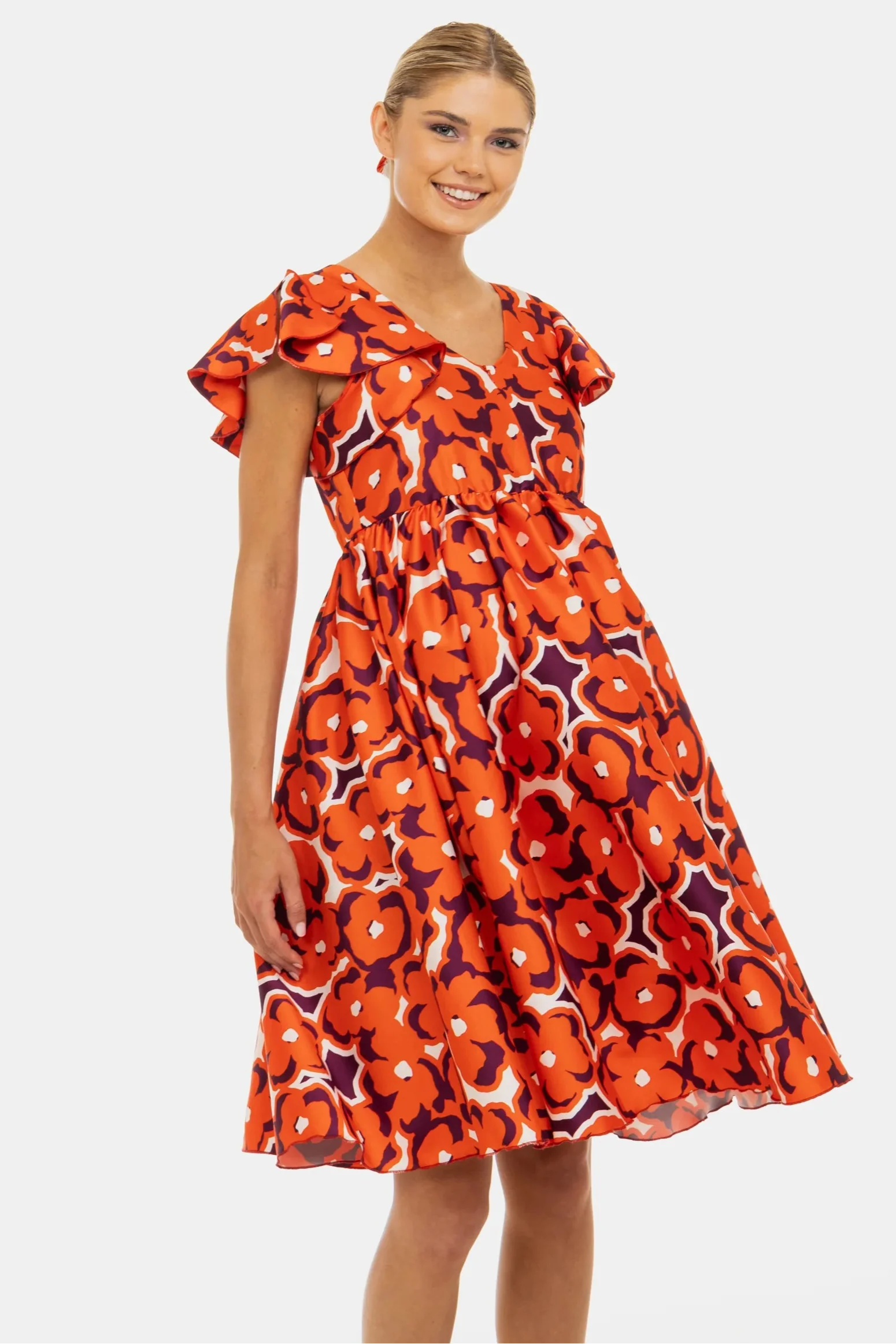 - Sukienka ciążowa i do karmienia z połyskującego satyny z wzorem