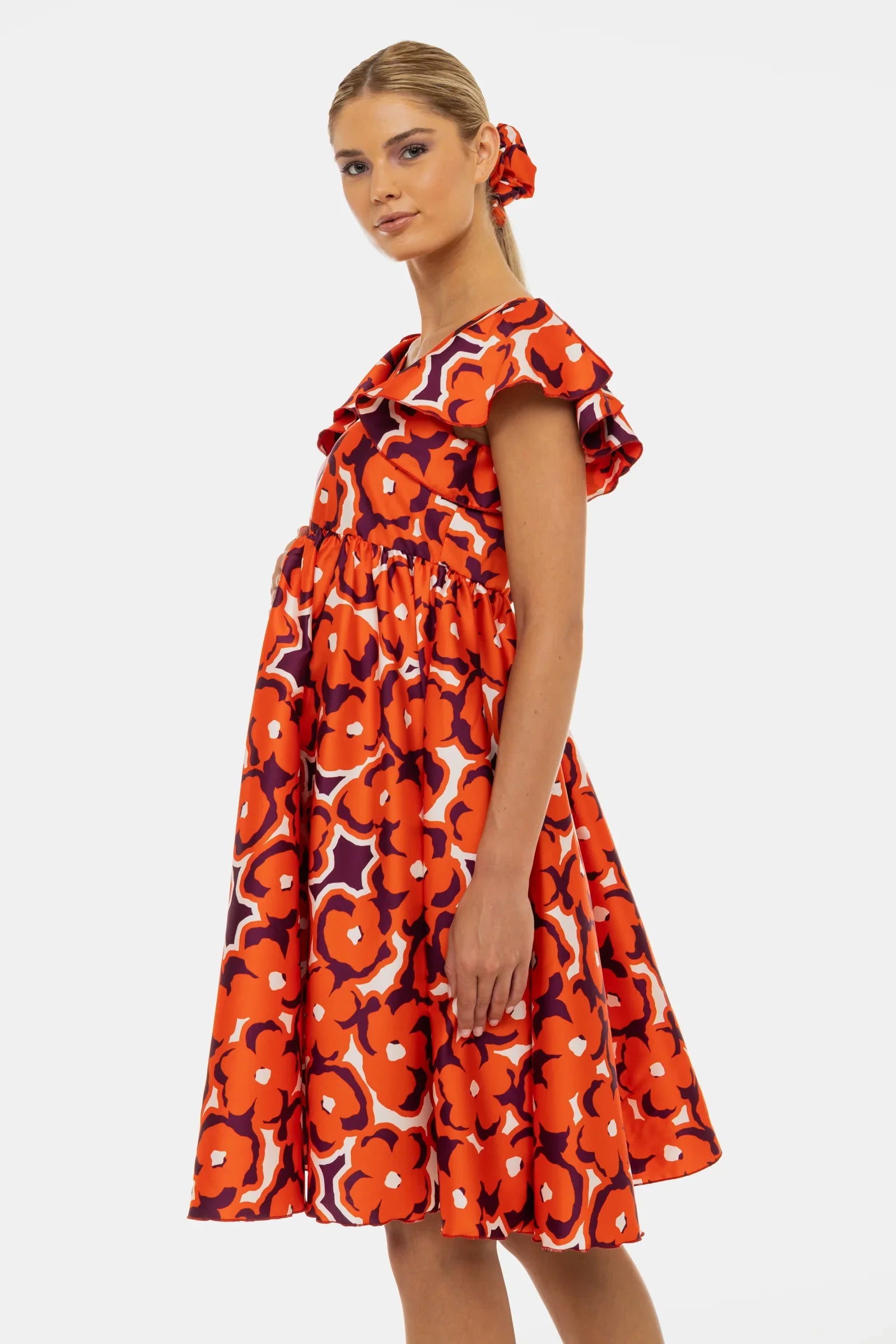 - Krótkie rękawy z falbankami